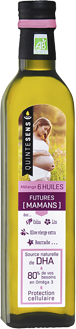 Fabriquées en France, ce sont des mélanges d’huiles biologiques, riche en oméga-3, Oméga-6, Oméga9 et en vitamine E et surtout en DHA donc ! Ce sont d’ailleurs aujourd’hui les seules huiles à nous garantir un apport en DHA.