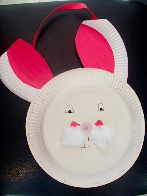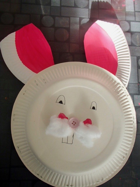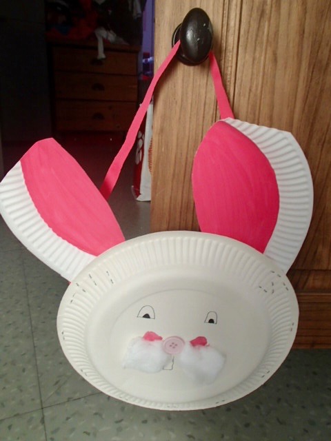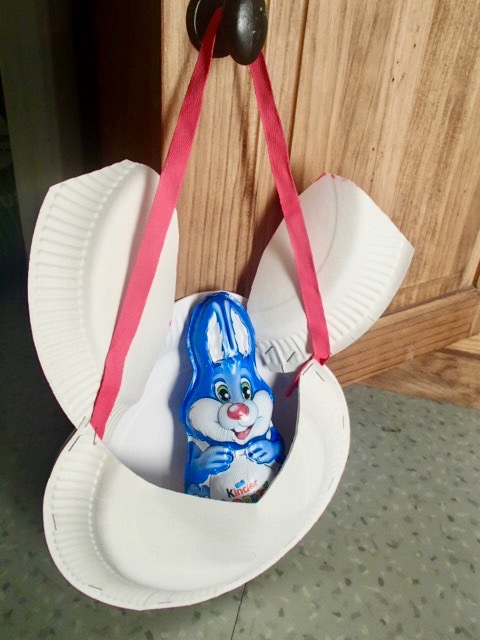 Malgré les oreilles de travers et pas identiques, un oeil plus petit que l’autre, bof bof, il est quand même mignon mon sac pour ramasser les oeufs de pâques en assiettes en carton! NON? bon ok il est pourri …