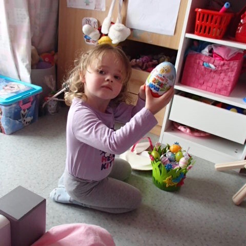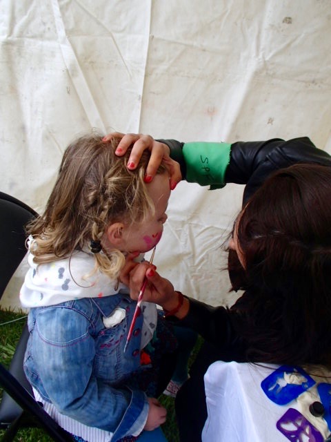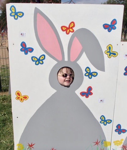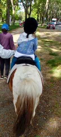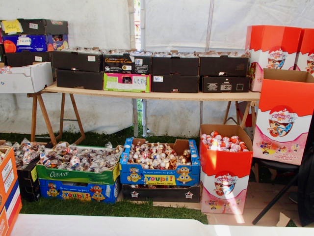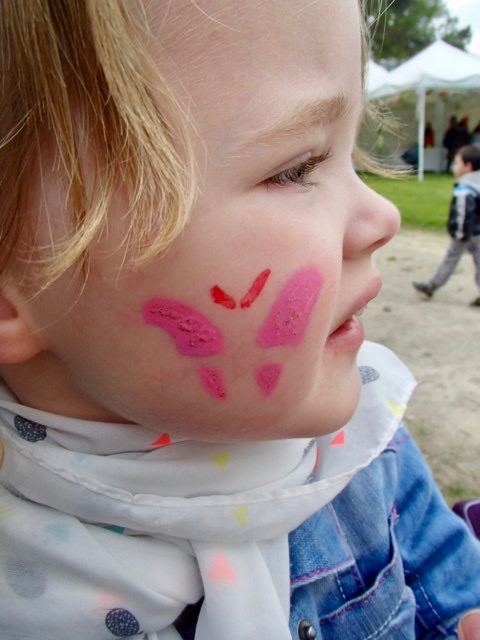Une chasse aux oeufs où il faut trouver 3 oeufs peints cachés dans le parc, puis aller retirer son lot de chocolat (partenariat Kinder), miam miam… puis maquillage (petit papillon sur la joue), pêche à la ligne, tombola, tour de poney et tout cela pour 5 euros 😉