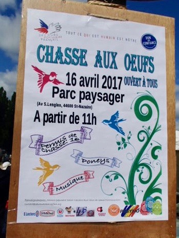 Dès 10 h nous étions au Parc paysager de Saint-Nazaire, pour la chasse aux oeufs annuelle organisée par le Secours Populaire. Un monde fou ! Je précise que ça ne débutait qu’à 11h00 mais on connaît l’astuce maintenant, il faut arriver de très bonne heure…