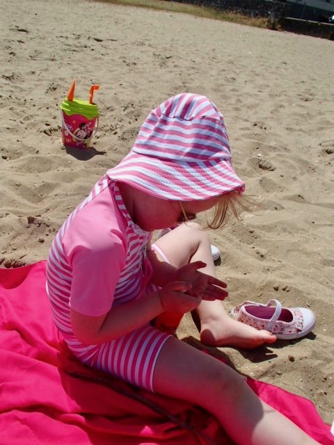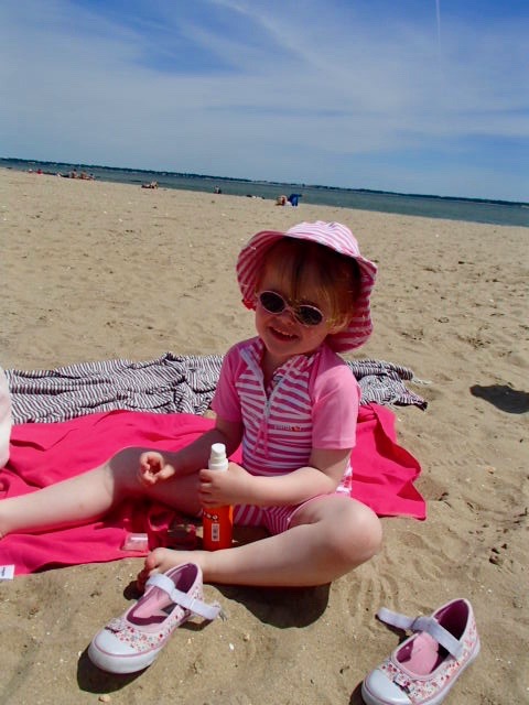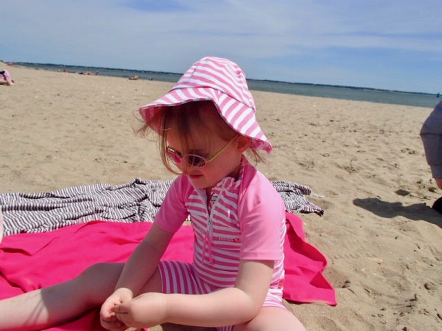 Surtout avec chipie qui a la peau très blanche et sensible comme maman, je ne rigole pas avec le soleil… Jouer en plein air OK mais protégées ! Pas question de voir un coup de soleil à l’horizon…
