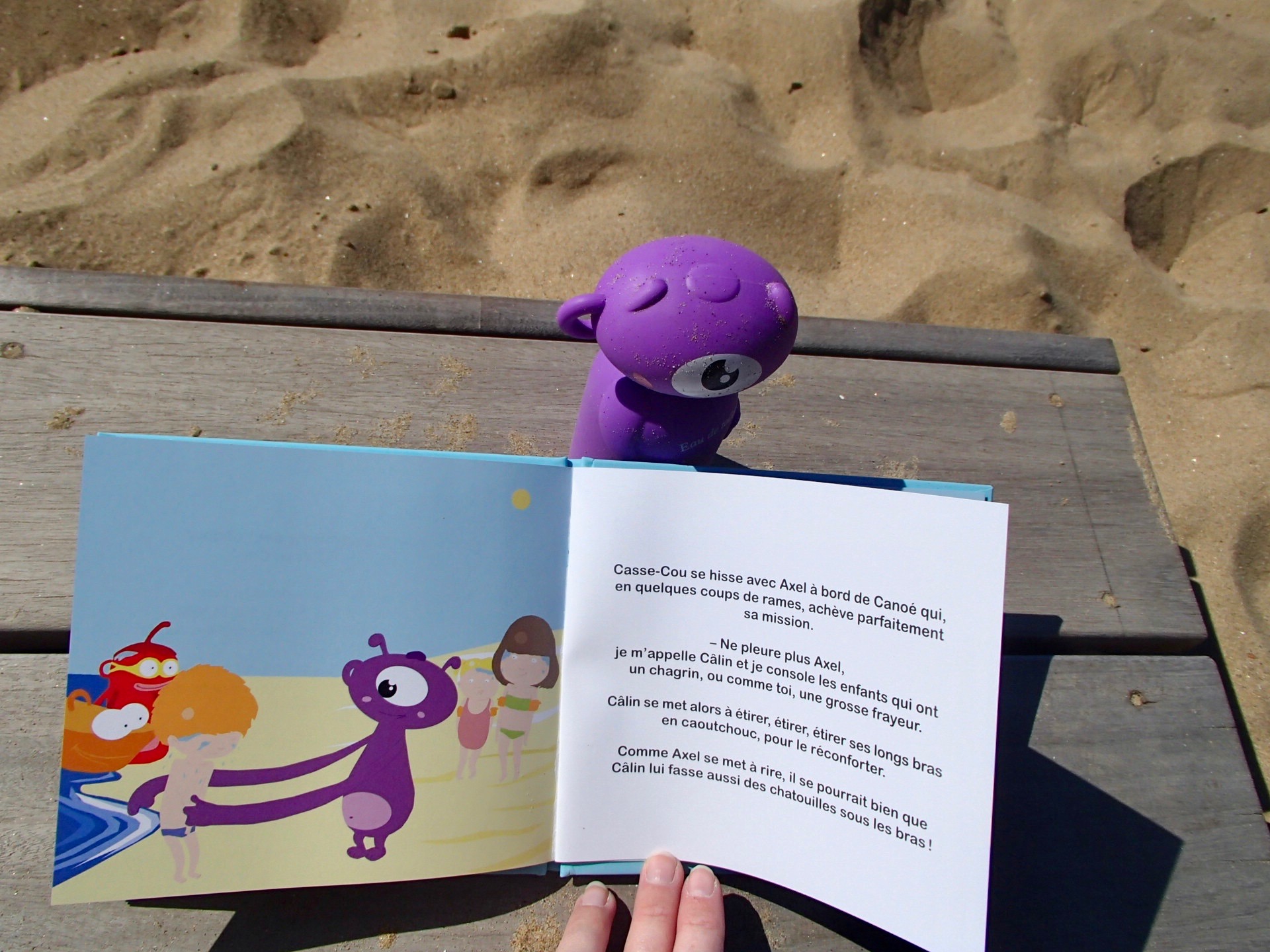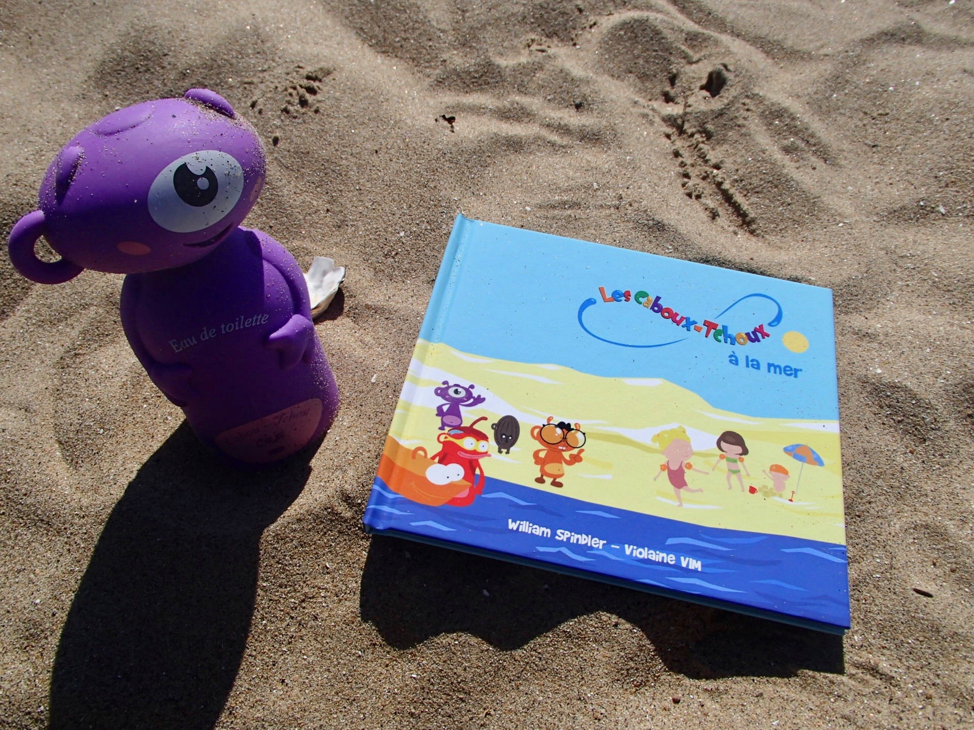 Bien évidemment, ce livre tout mignon qui s’emporte facilement partout, était accompagné de son adorable Caboux-Tchoux, notre parfum rigolo, qui a prit un peu de sable (avant de prendre sa douche comme chipie) !
