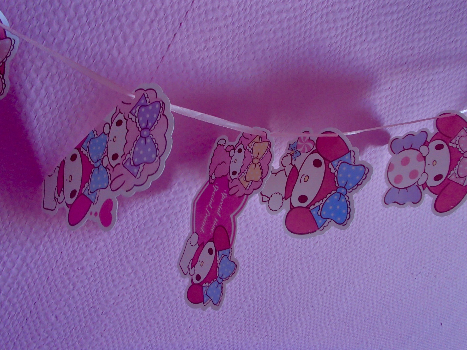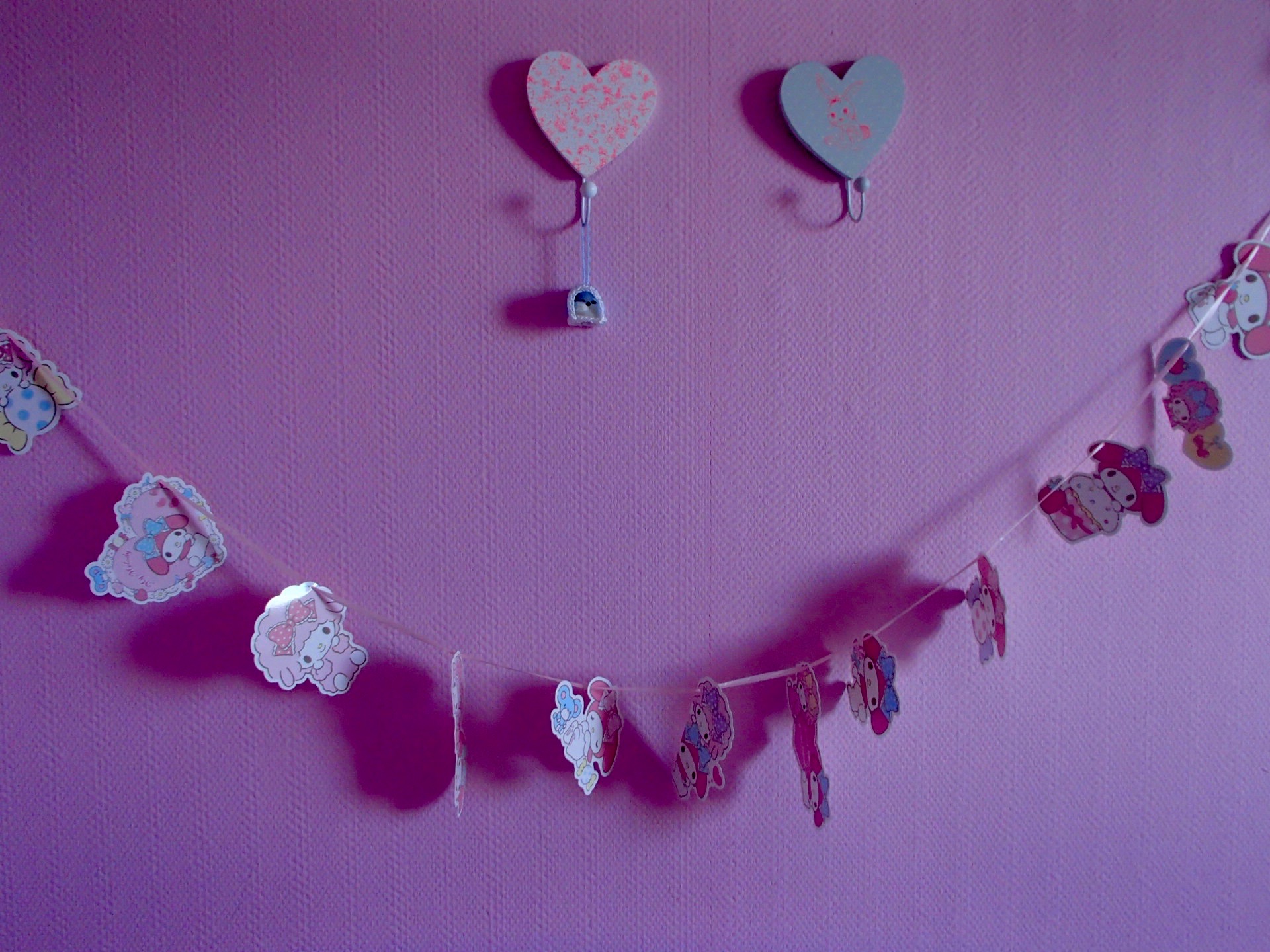 Du coup, ni une ni deux, hop la guirlande été prête et il a fallu lui suspendre au-dessus de son lit :