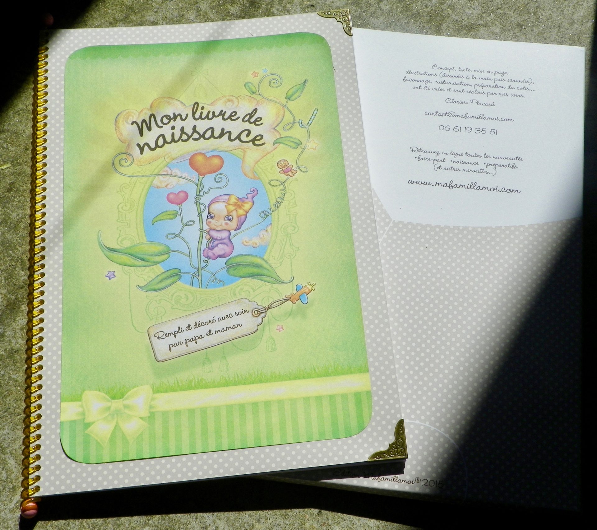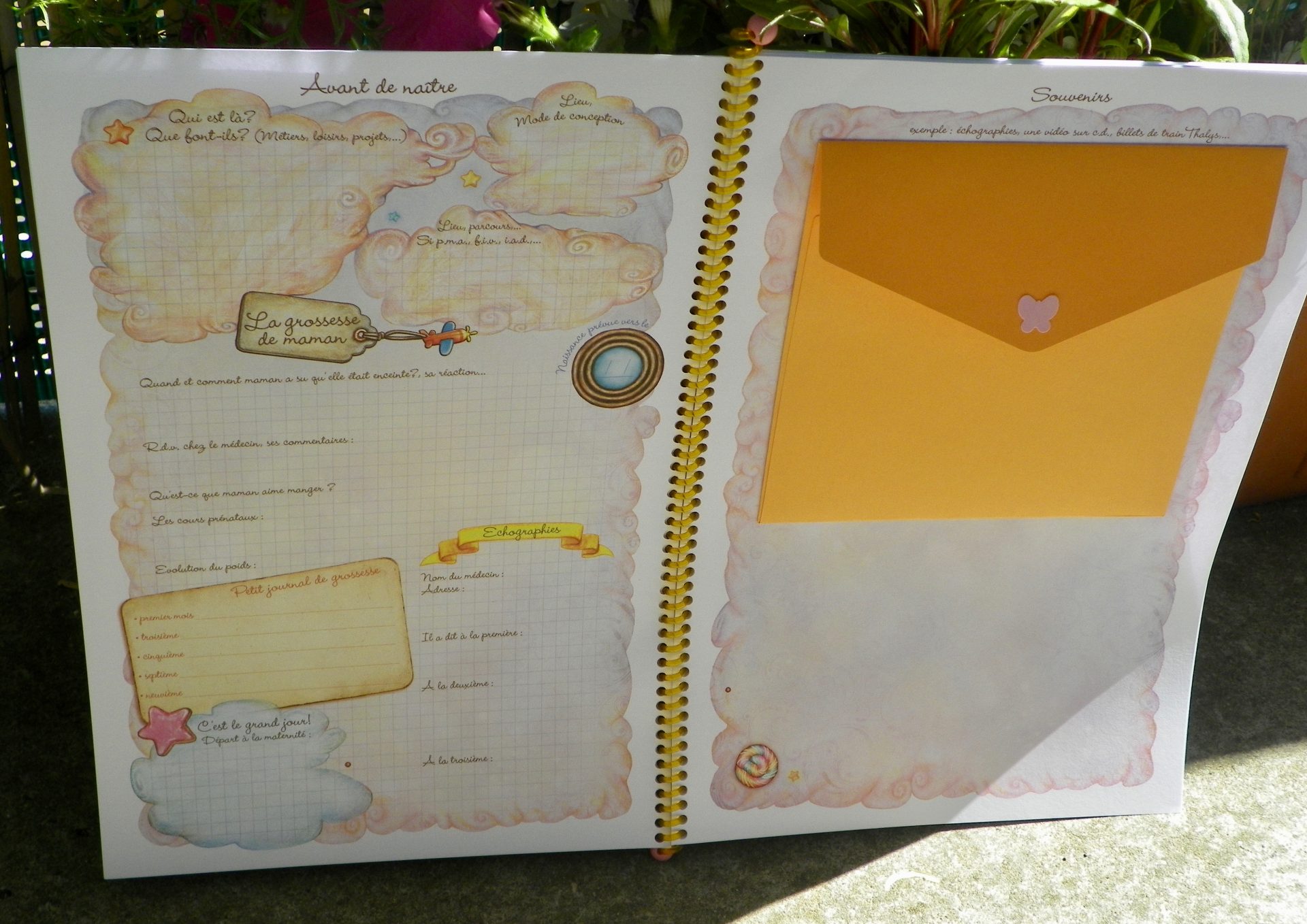 Dans sa pochette avec son prénom pour le protéger, vous trouverez le livre à spirale avec ces moments :