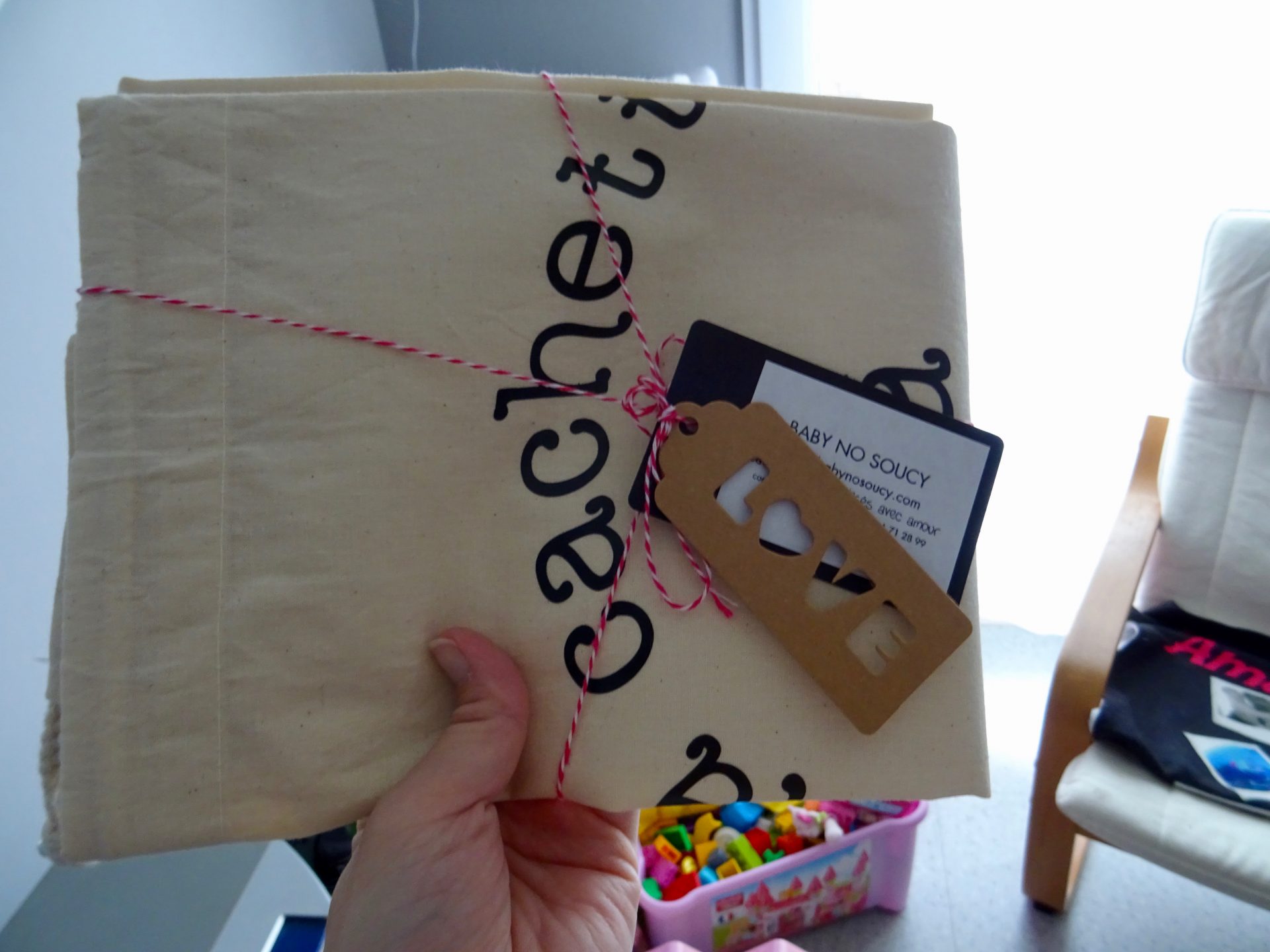 Pour ma part j’ai testée un article personnalisé que toutes les mamans rêvent d’avoir, le sac de rangement :