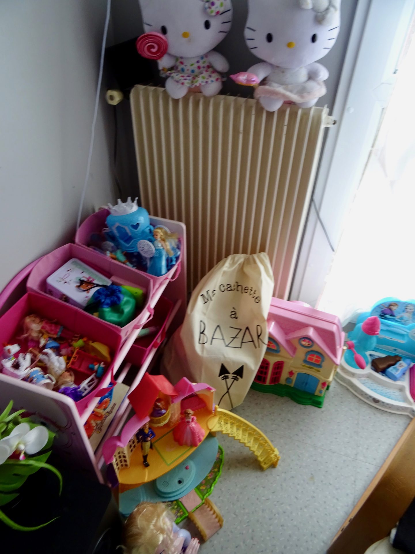 Chipie à une petite chambre, alors elle à un petit espace dans le salon qui lui est dédié aussi, enfin surtout pour les jouets et maison de poupées.