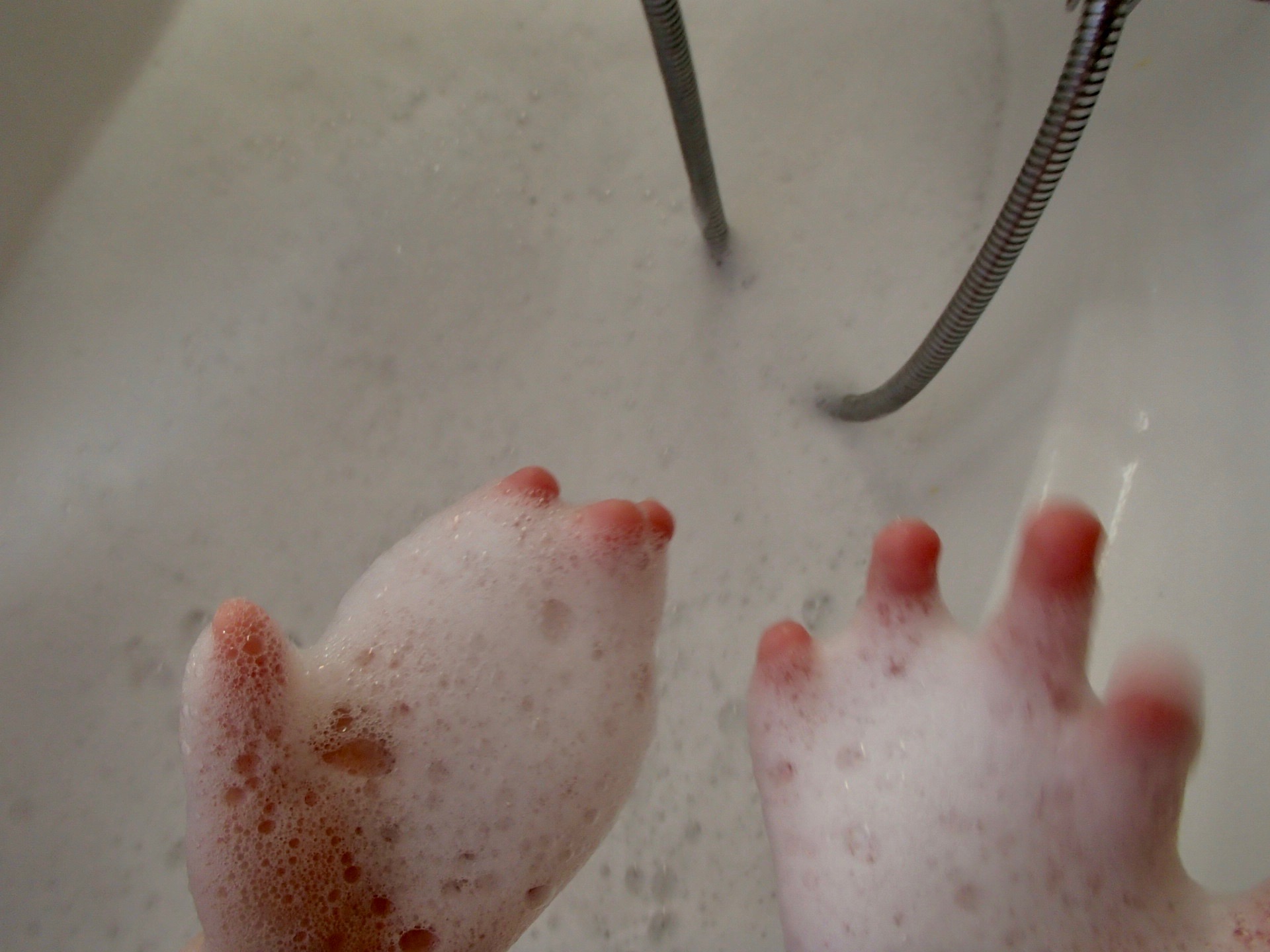 Nous n’avons qu’une douche, mais grâce à mamie et sa superbe baignoire, nous avons pu tester ce super bain moussant.