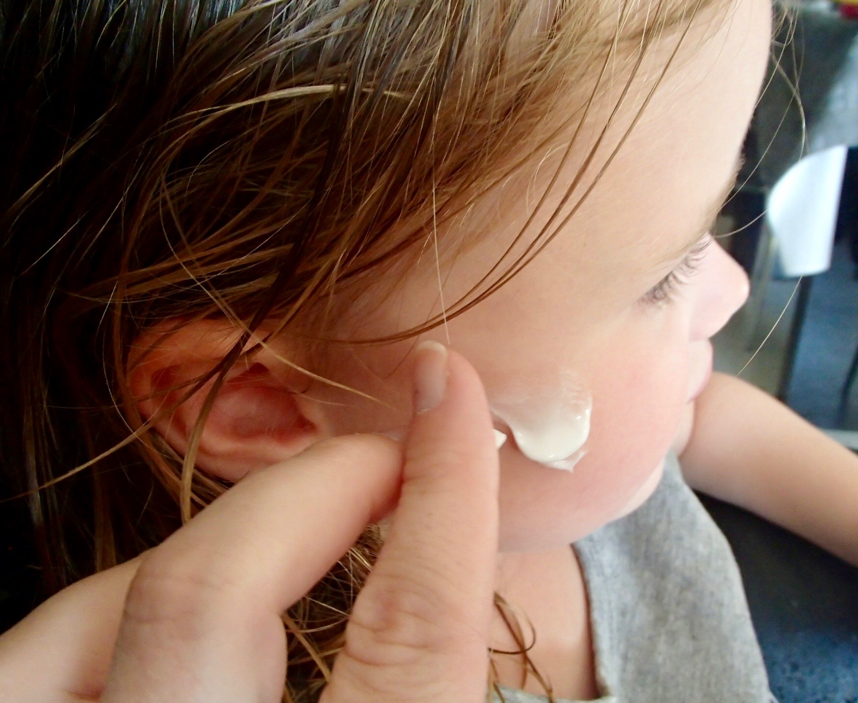 Et surtout après la douche bien mettre la crème après solaire, qui laisse un doux parfum sur la peau de vos bambins.