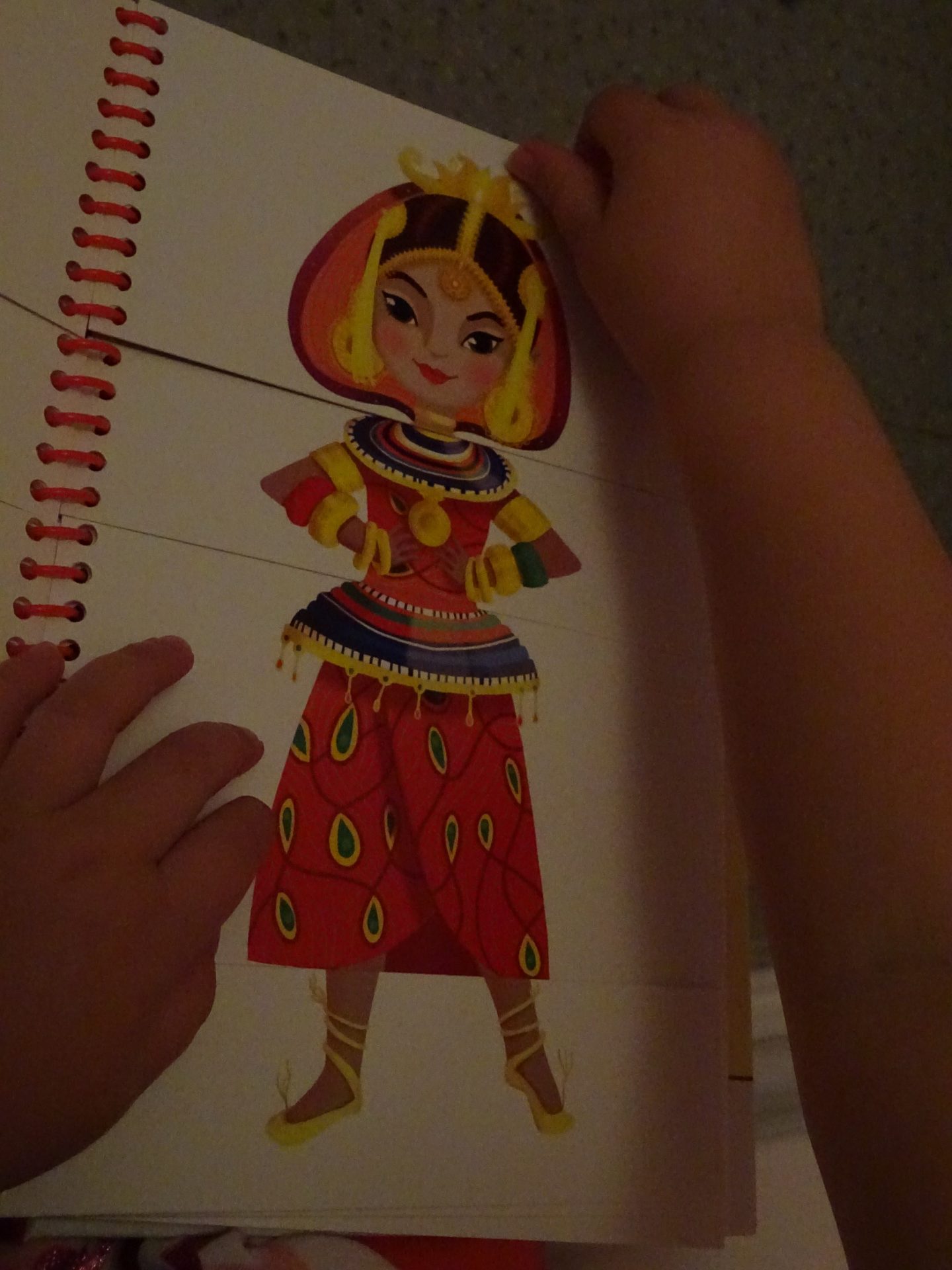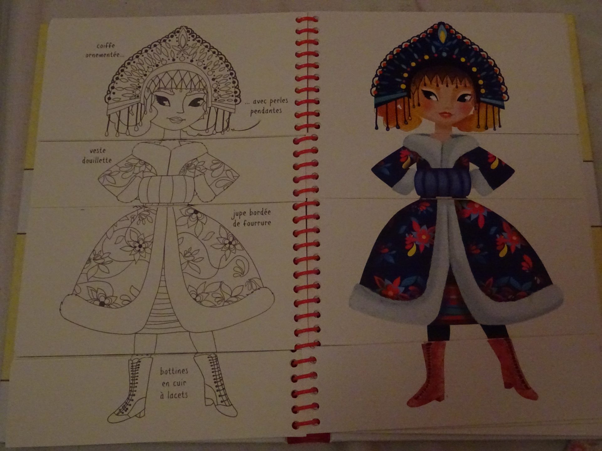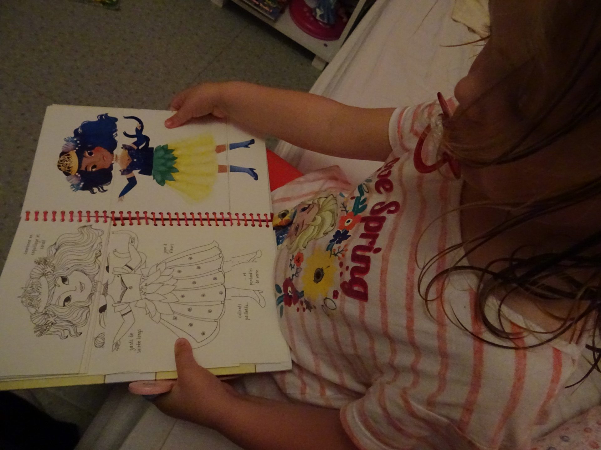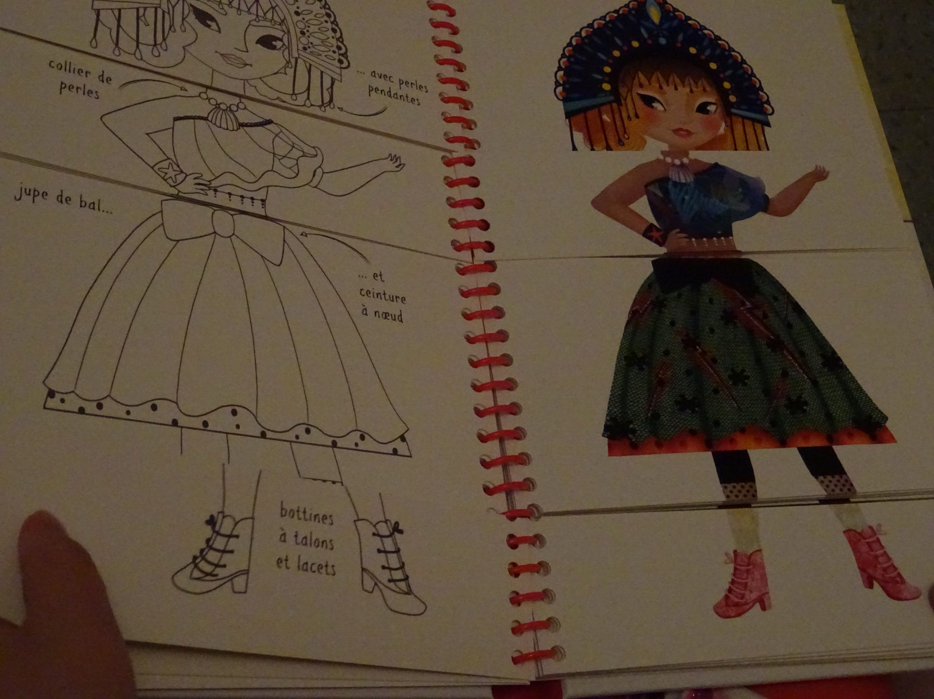 Tout au début du livre il y a des exemples de tenues, et une explication pour utiliser le livre (même si je vous rassure son utilisation à été adoptée très naturellement), et nous nous sommes amusées à retenir une princesses originales et à la reproduire de mémoire.. Activité ludique et très intéressante.