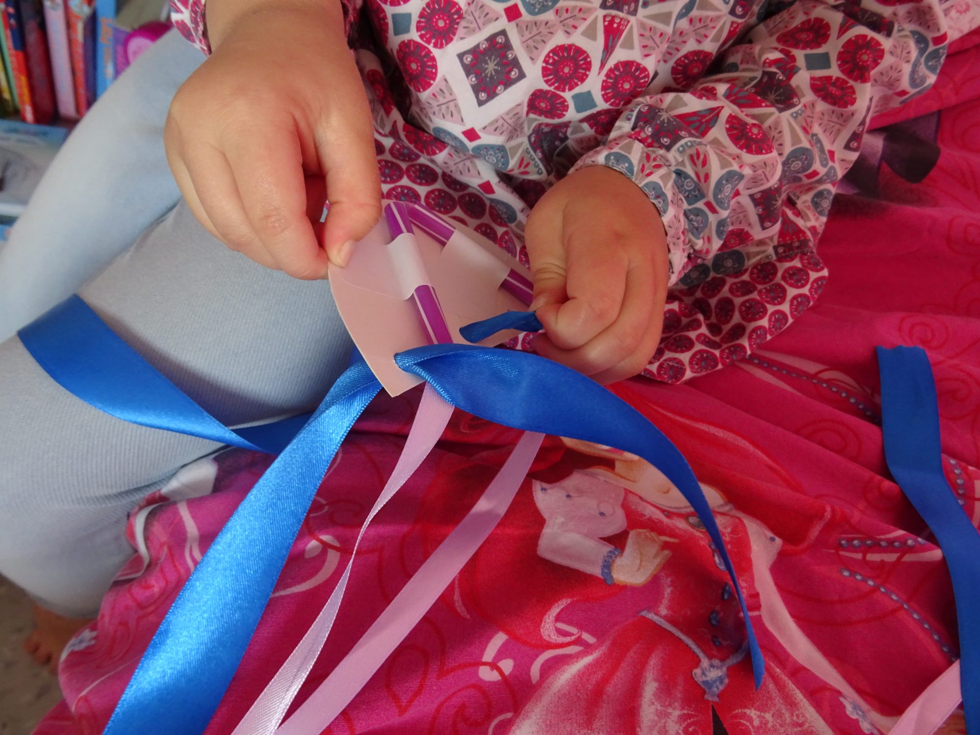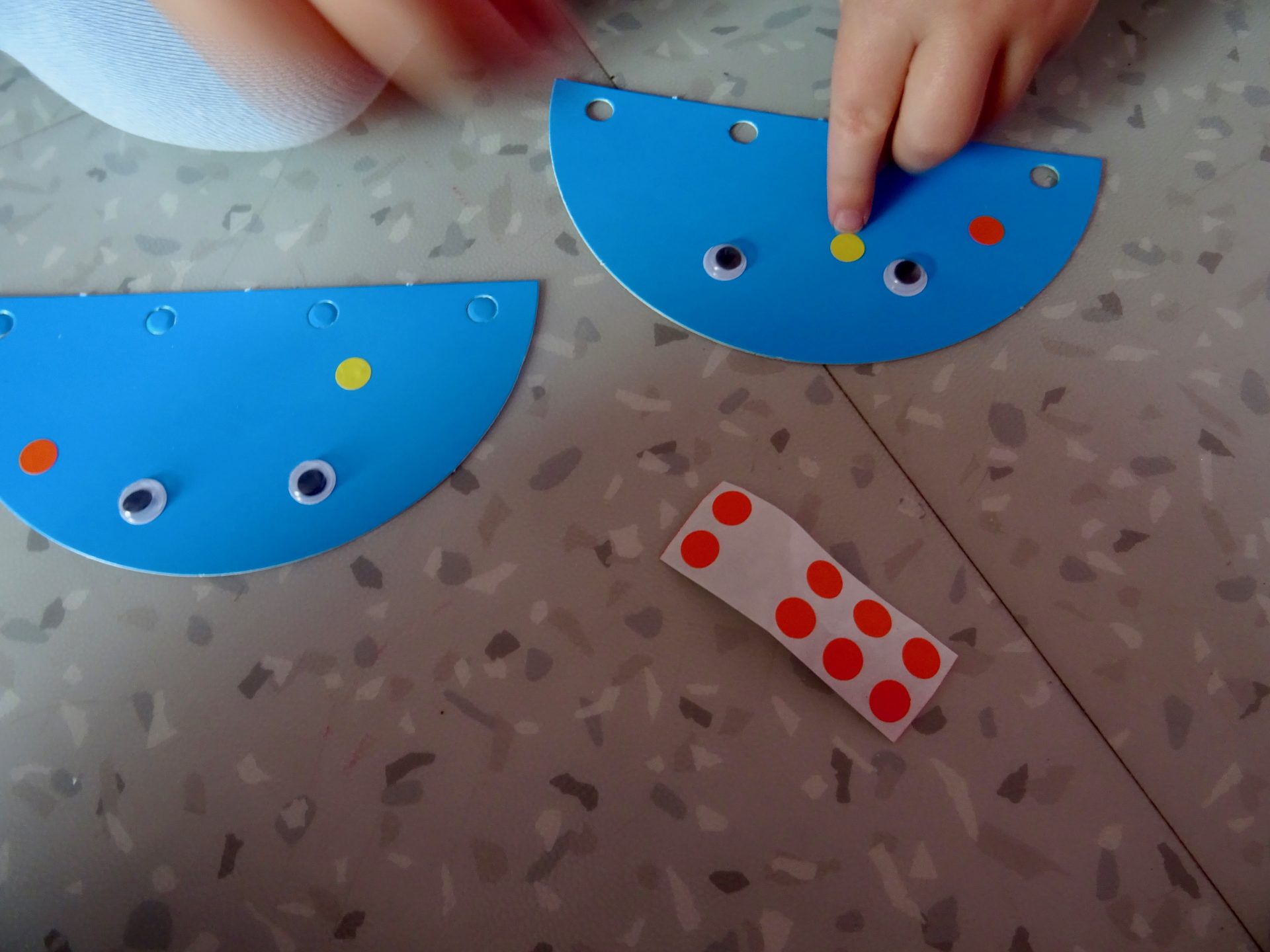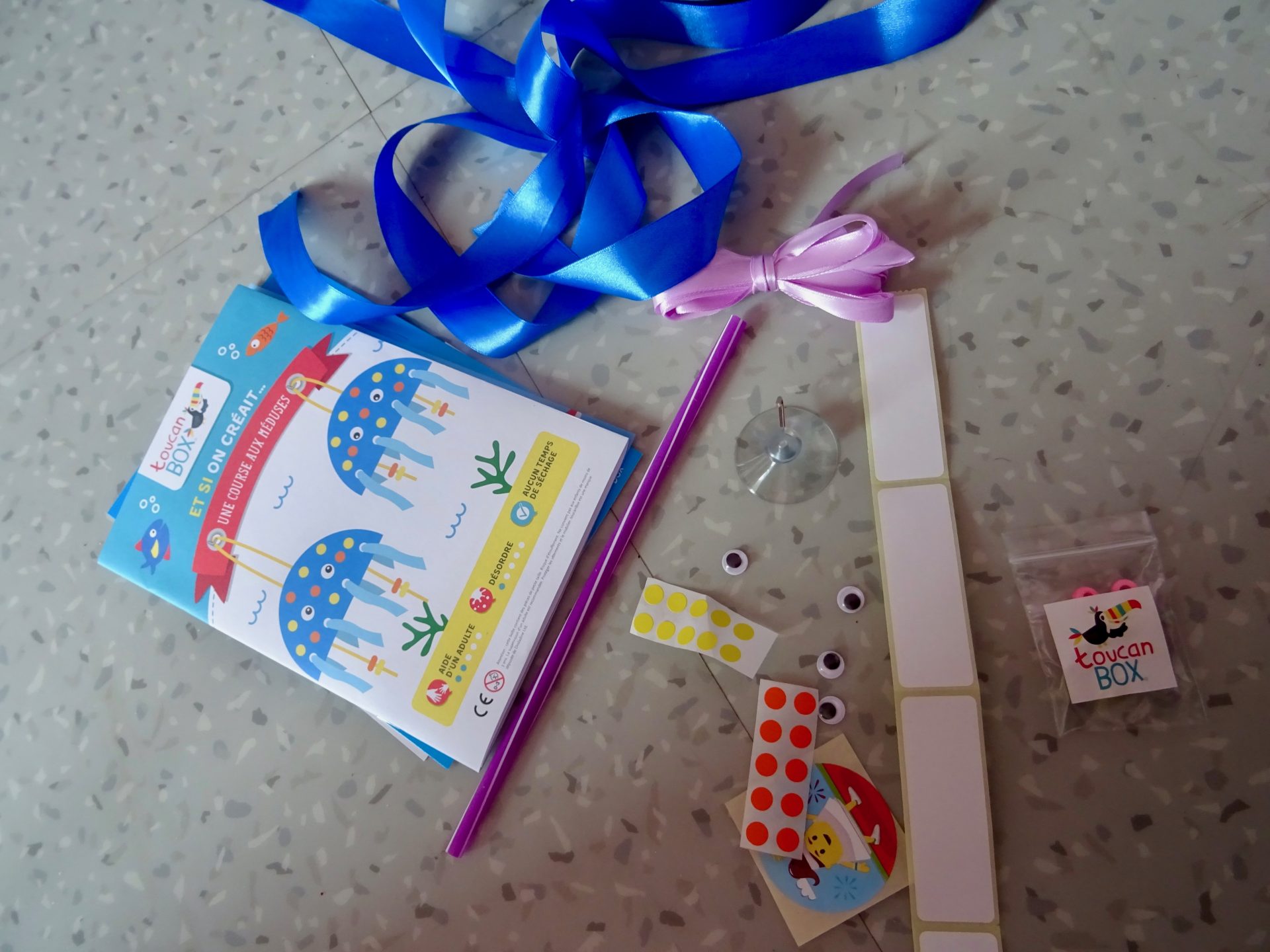 C’est parti pour la création de ces deux méduses qui ont l’ait trop mignonne, une petite aide de maman pour couper les rubans et chipie à réaliser ses deux méduses