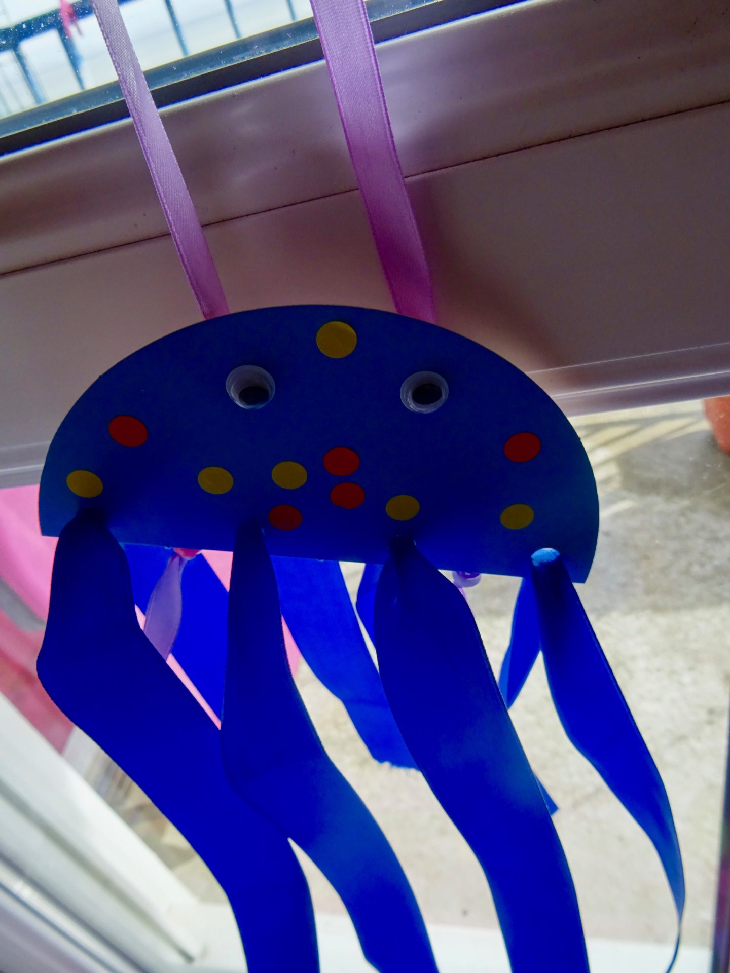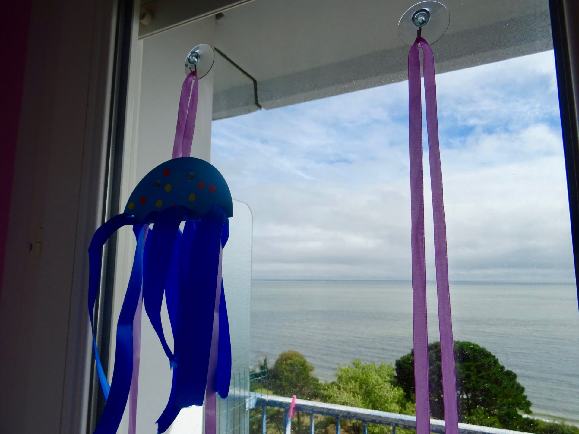 Place la ventouse bien haut sur une fenêtre et accroche une méduse sur chaque crochet.