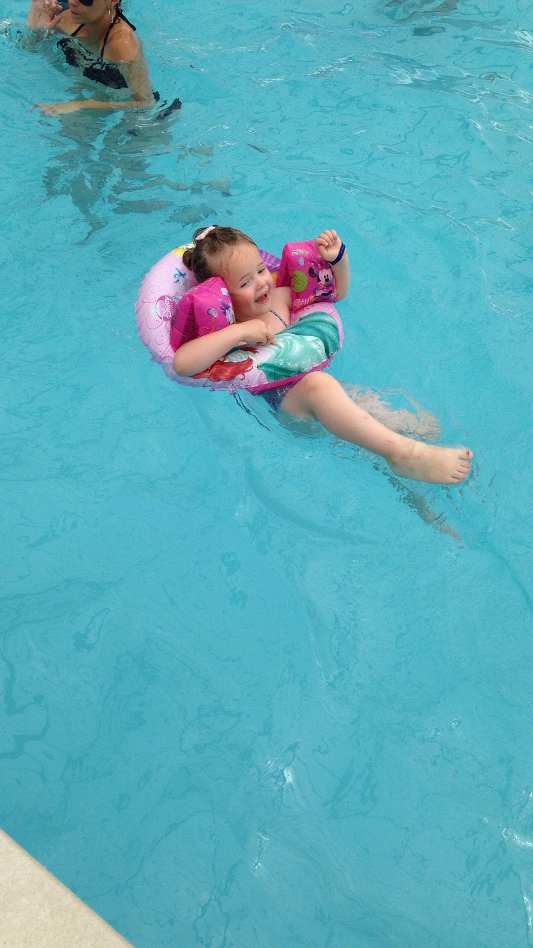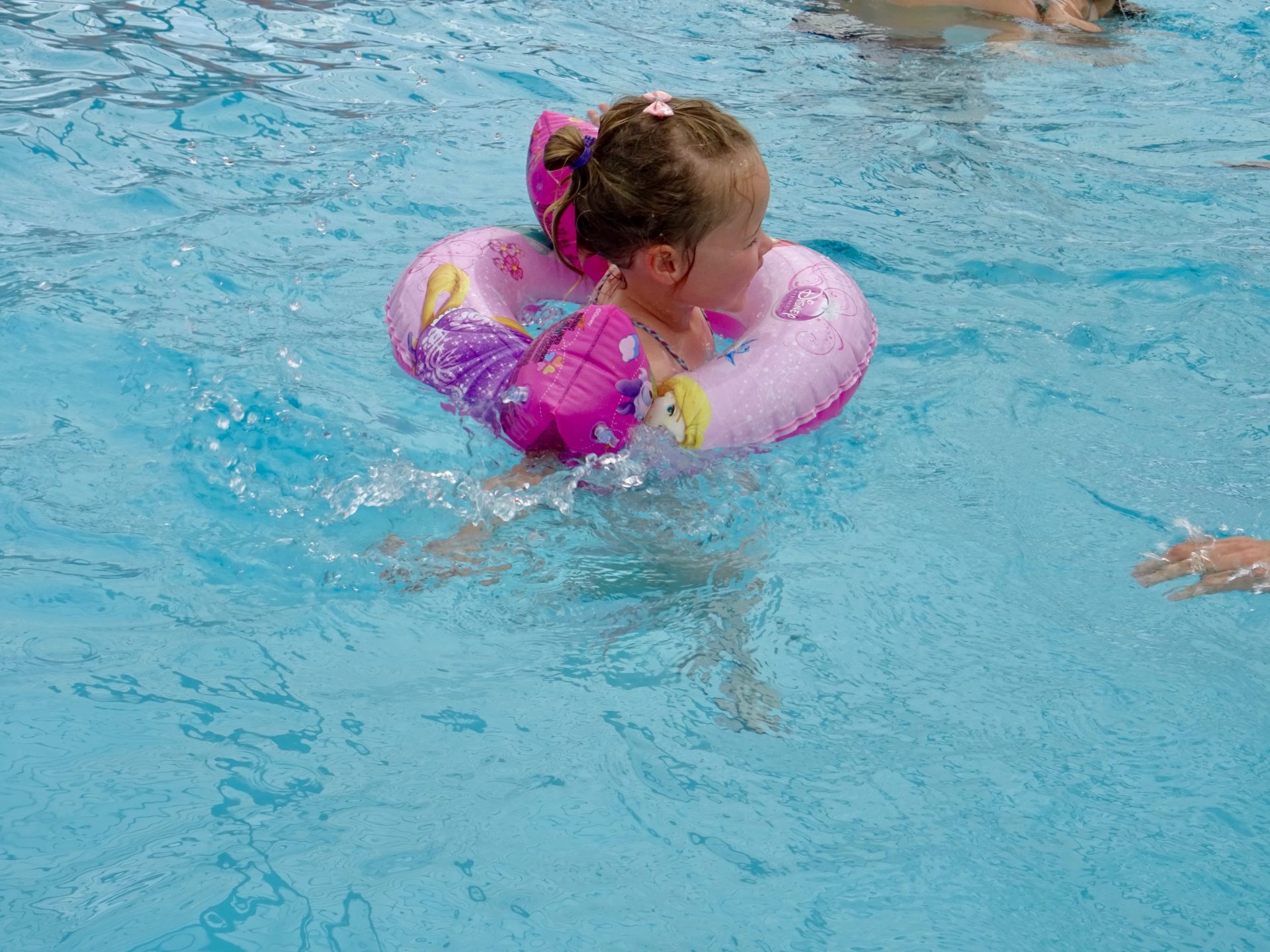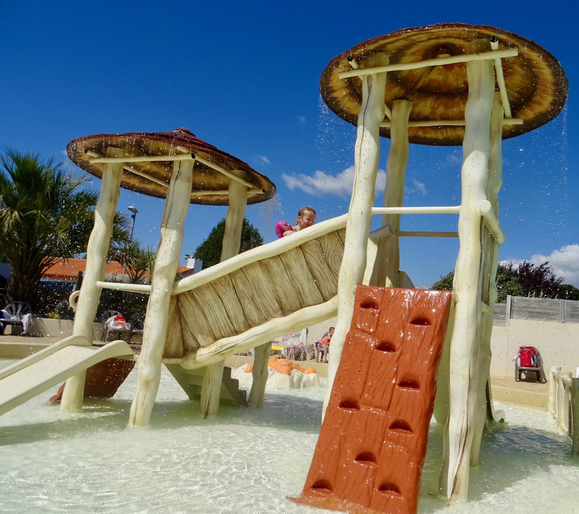 Arrivés et installés pour 16h, chipie à voulue tester de suite la piscine, en plus il faisait beau alors ni une ni deux nous voici dans l’eau.