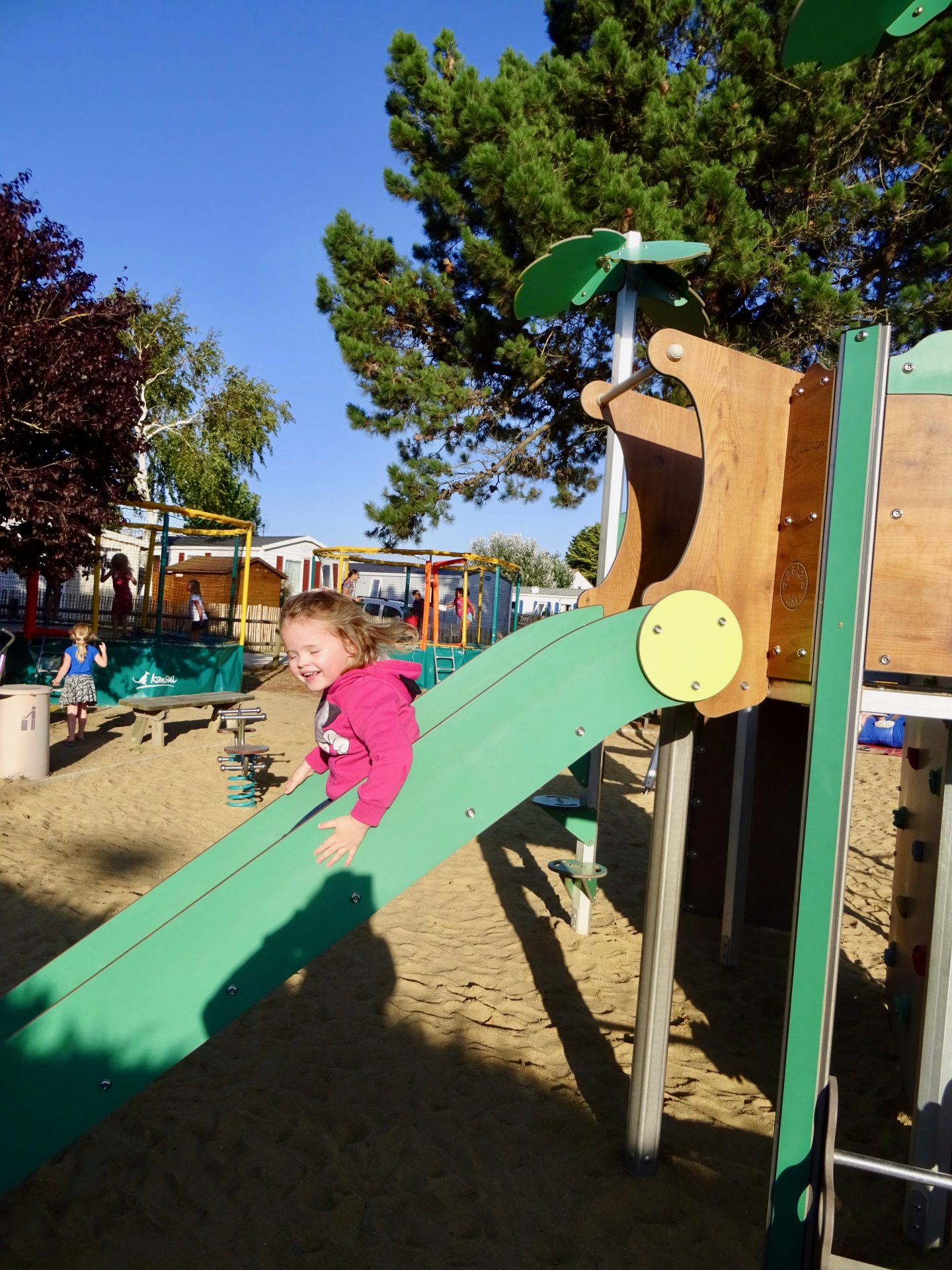 Le camping est assez bien aménagé car on a pas l’impression d’avoir des km à faire pour descendre à la piscine et pourtant nous étions en haut du camping donc parfait pour nous, car avec chipie, nous ne voulions pas être à côté de la piscine et des animations pour avoir un peu de calme et de repos.
