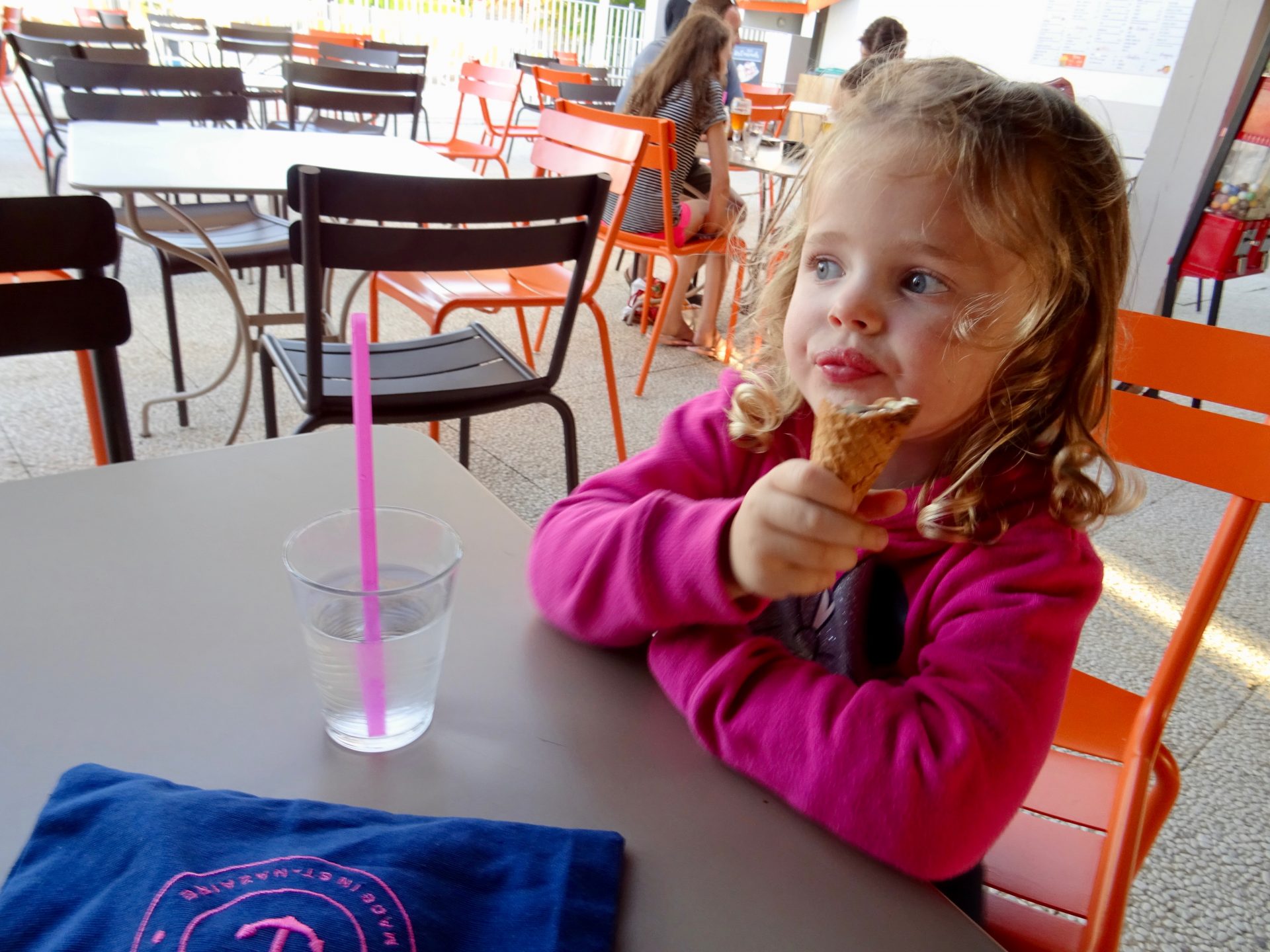 Puis le mercredi nous avions inscrit chipie à la soirée des enfants : 6 euros pour manger avec un groupe d’enfants des nuggets / frites, un cornet de glace et de la grenadine à volonté avec les deux animateurs qui ont pris en charge environ 8 enfants.