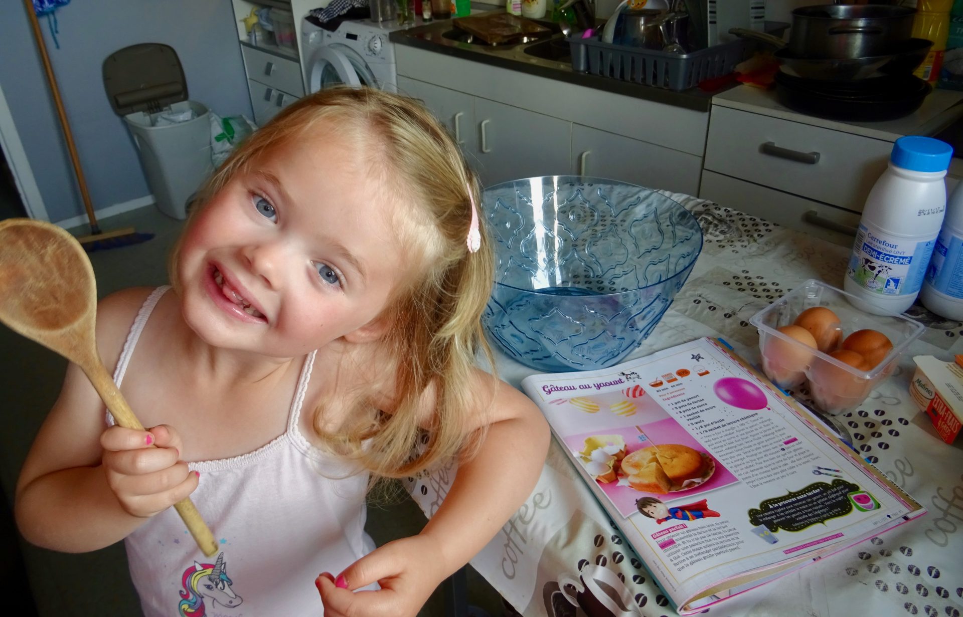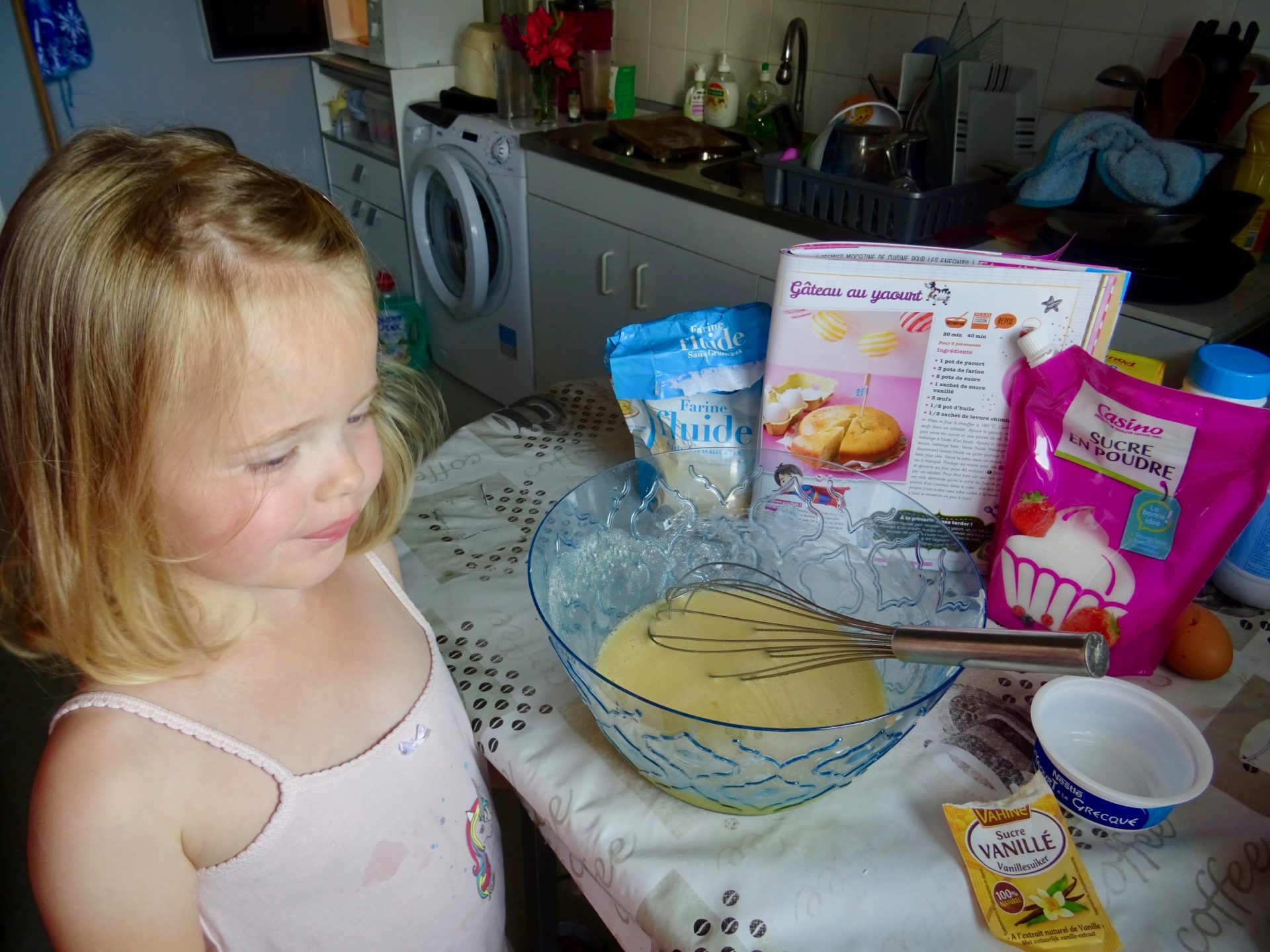 Bats le mélange à l’aide d’un fouet. Ajoute la farine et la levure, mélange bien.