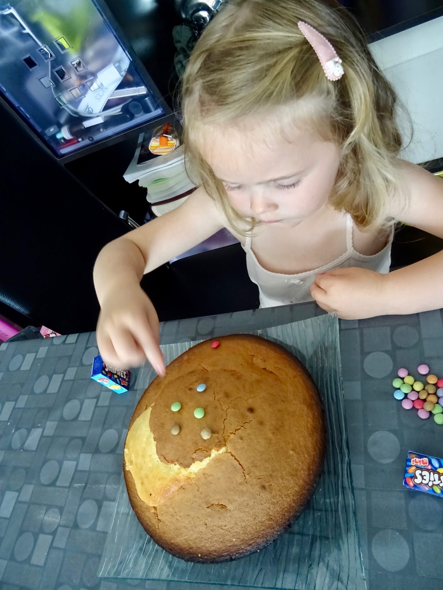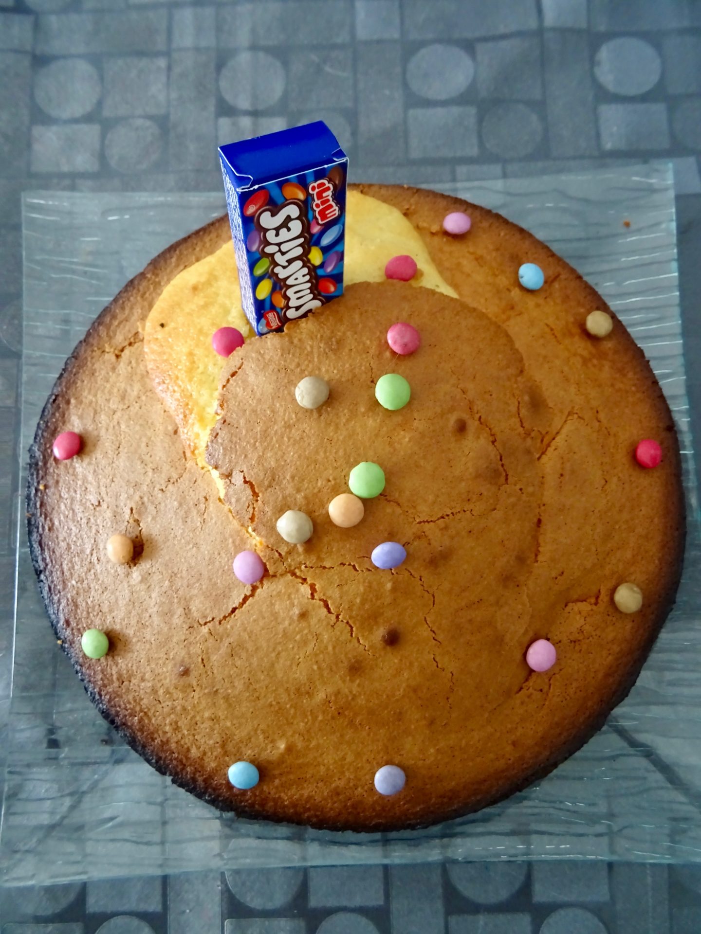 Pour être sûr que ton gâteau est cuit, pique la ponte d’un couteau dans le gâteau : la lame du couteau doit ressortir propre (pas de pâte collée au couteau), sinon le cuire encore un peu.