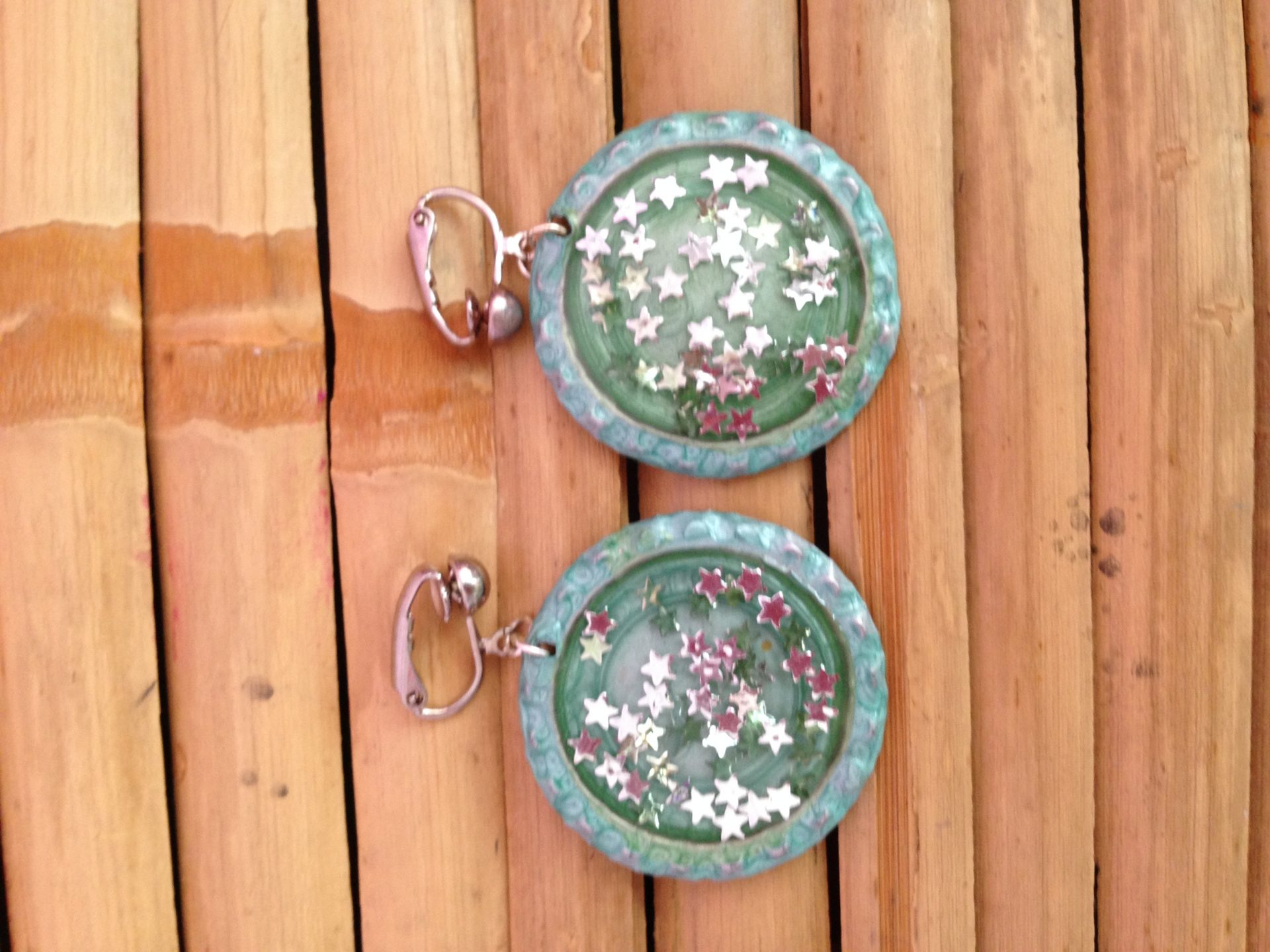 Les boucles d’oreilles sont très jolies et brillent au soleil, avec ses étoiles collées.