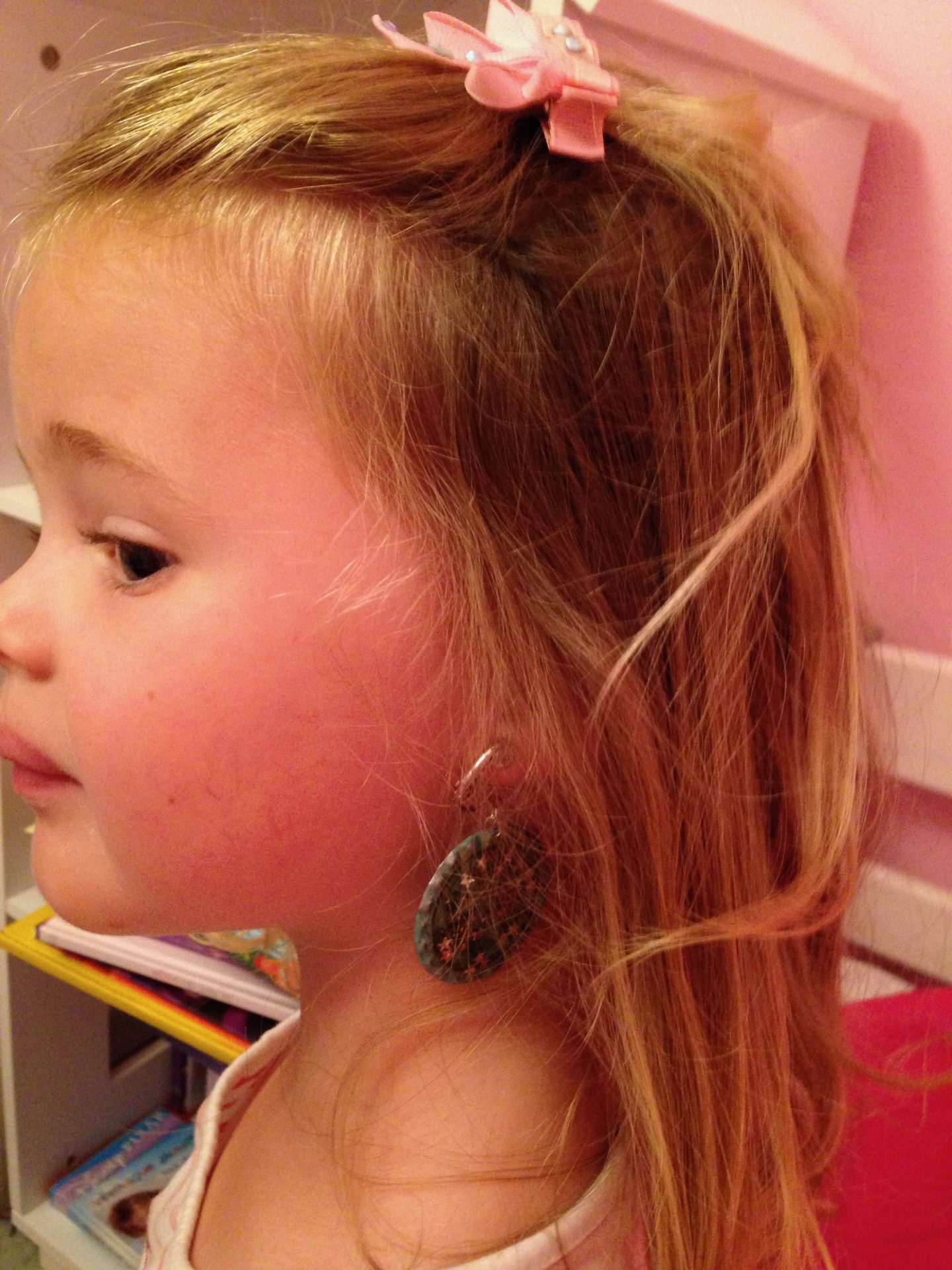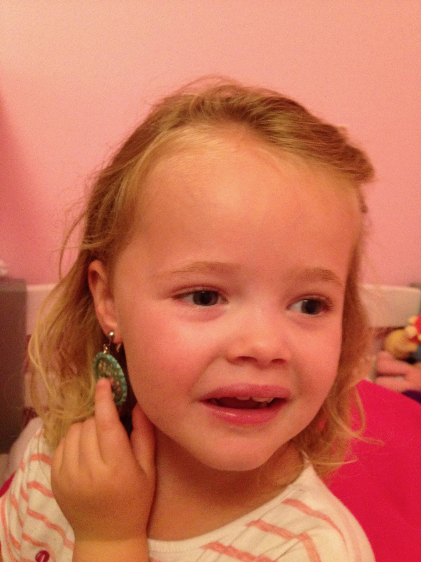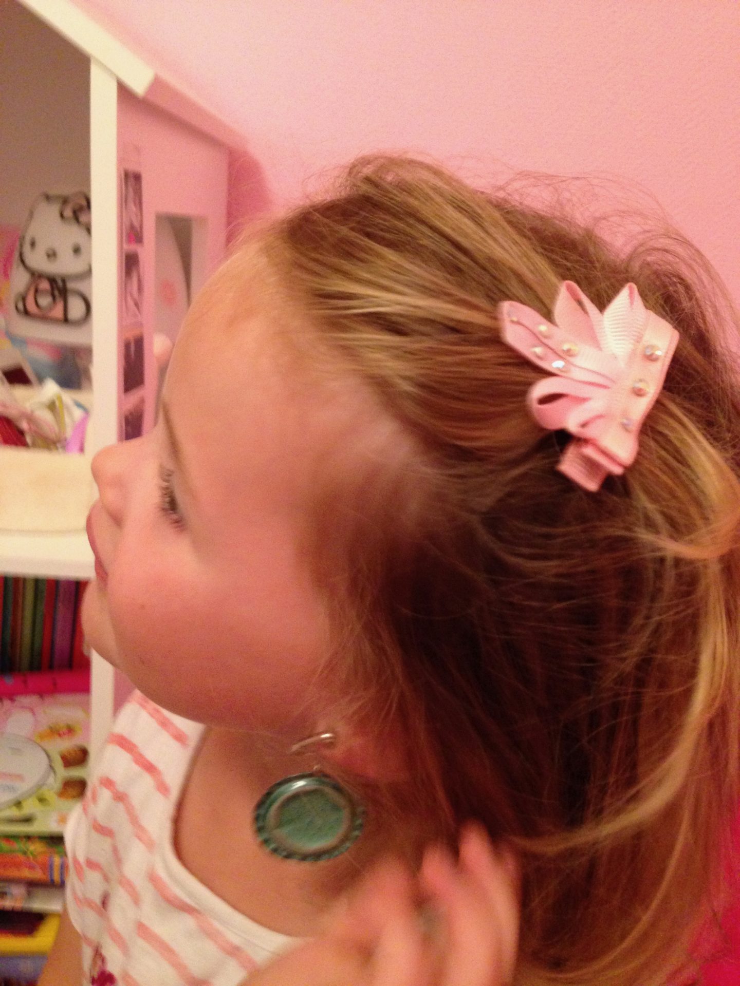 L’avantage de ces boucles d’oreilles, c’est qu’elles sont à clips et chipie me les a donc piquée, car elle n’a pas encore les oreilles percées 😉
