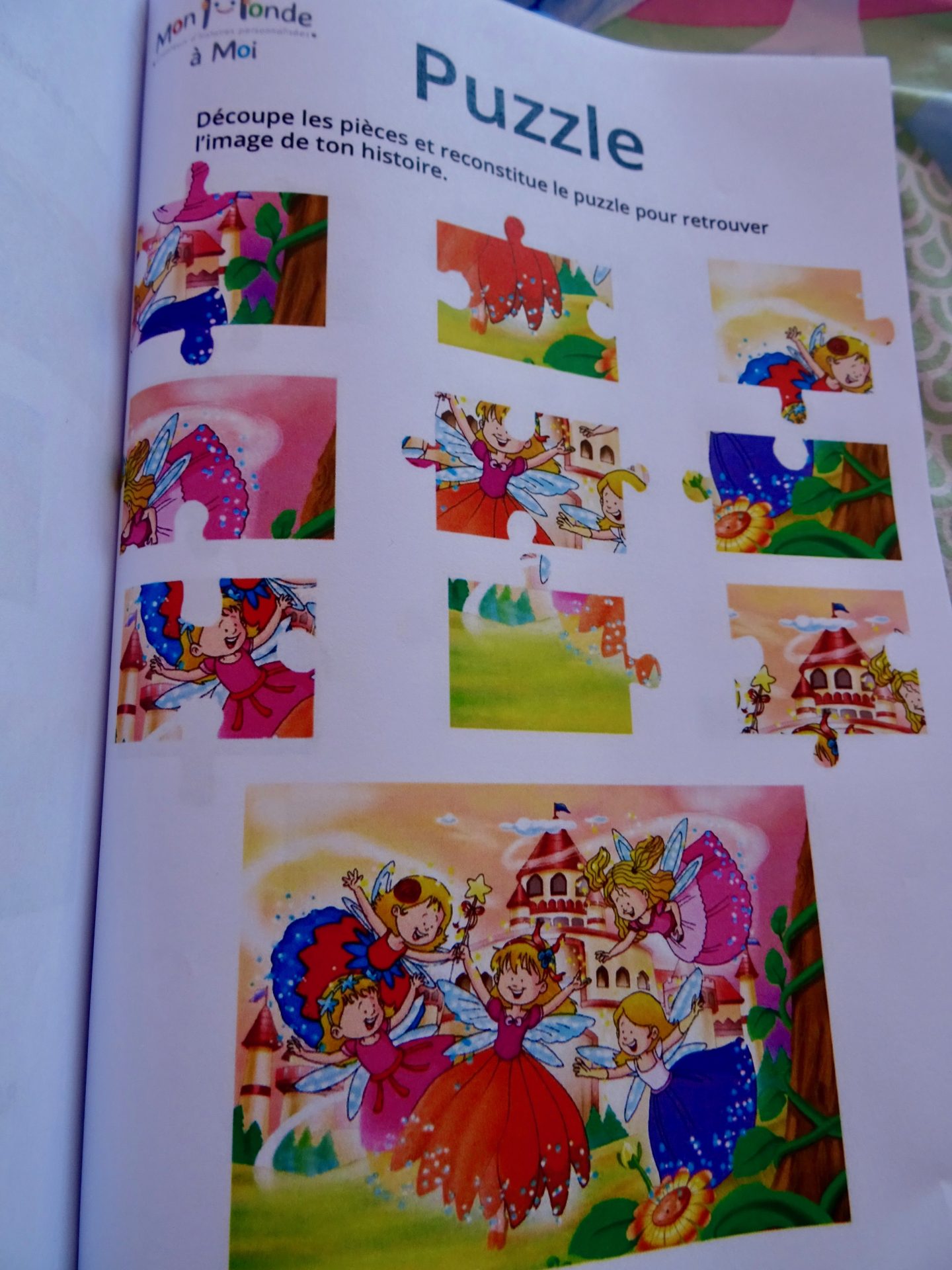 Ce cahier d’activité comprenait des coloriages, des jeux de compréhension et assez ludique j’ai trouvé puis surtout adaptés à son âge – 4 ans ( relier les points pour obtenir un dessin, coloriage de chipie et ses copines en mode fée comme dans l’histoire puzzle à découper, un labyrinthe qui relie la fée à son château ou ses copines..), bref j’ai trouvé très original ce supplément créatif.