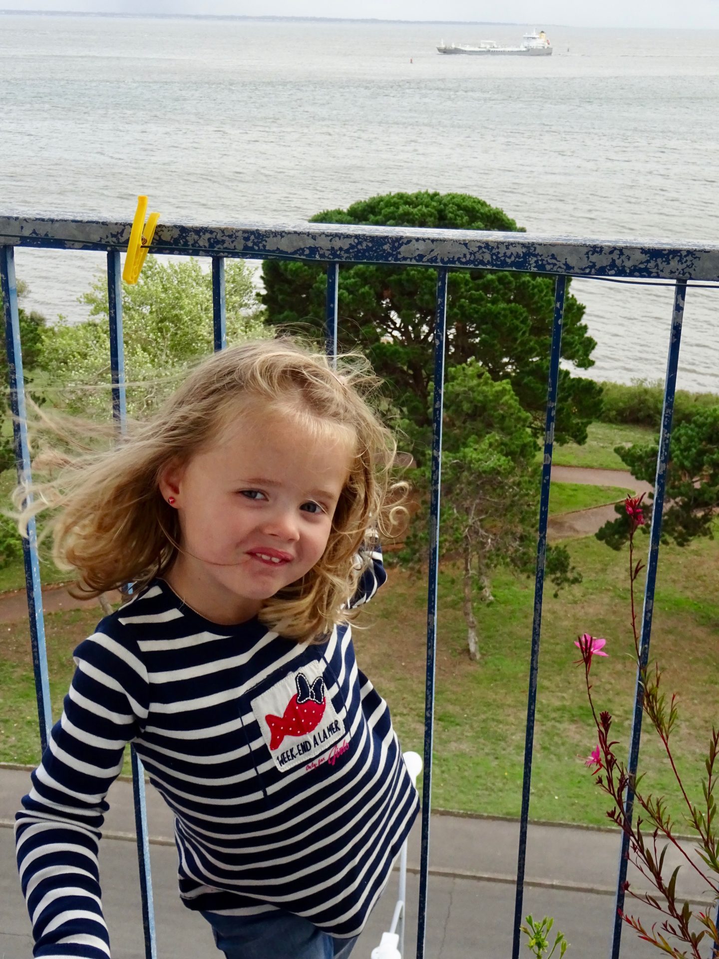 Voici chipie qui s’est prêté au jeu du mannequinat pour enfant pour vous dévoiler ce sublime Tee-shirt marine rayé écru à manches longues, pour fille.