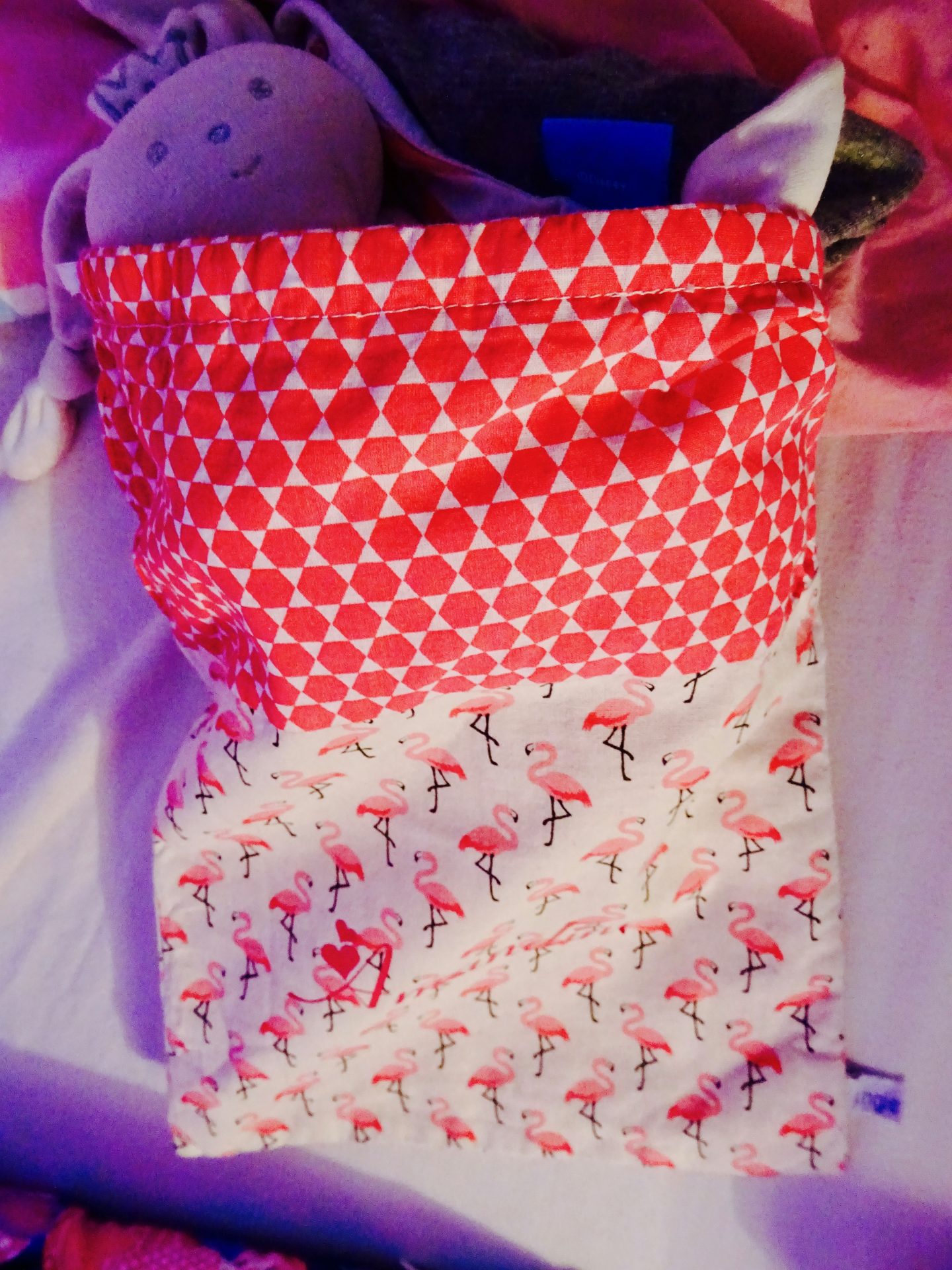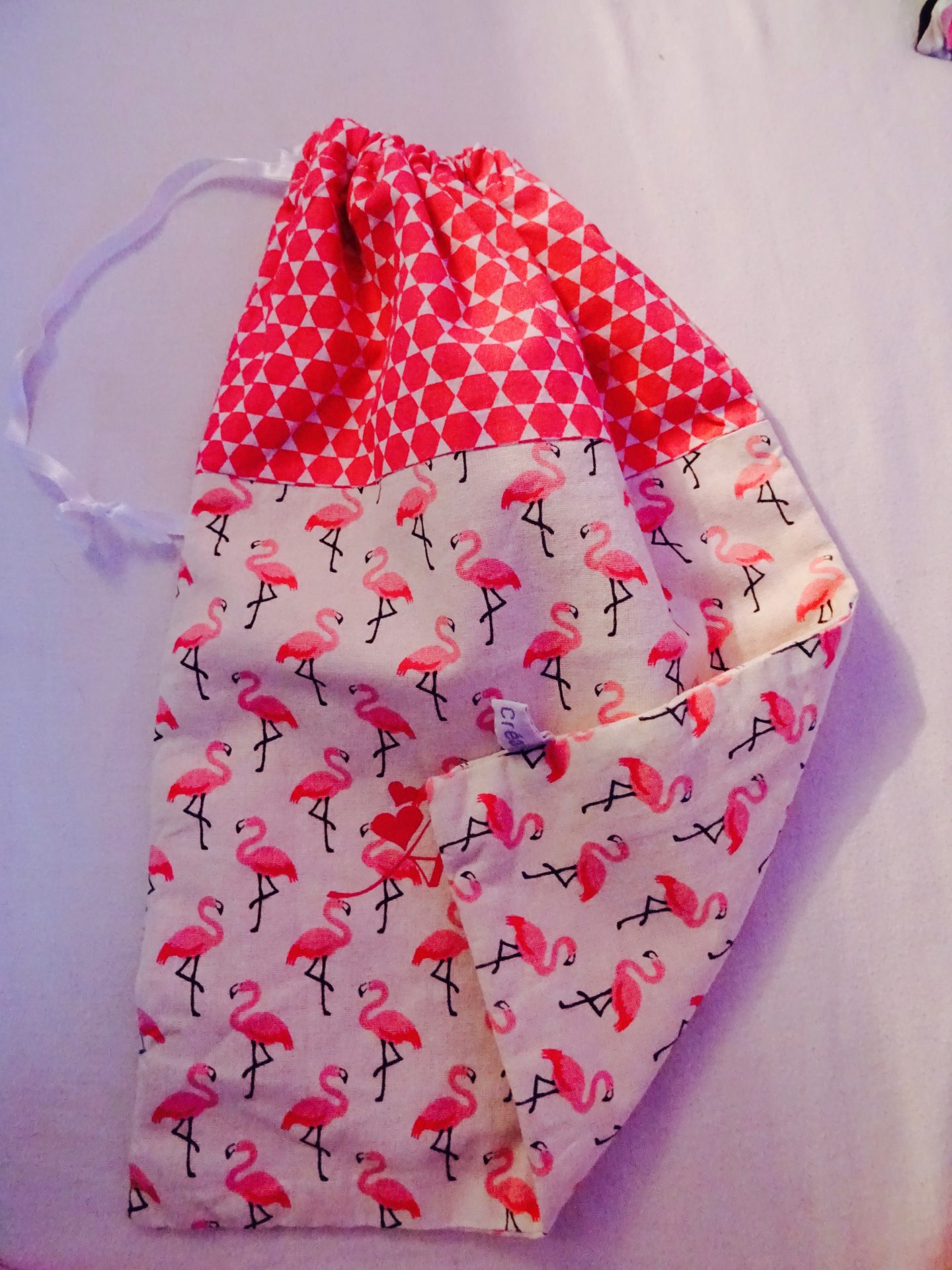 Bref vous l’aurez compris cette pochette en tissu trop joli de flamand rose très tendance aura une utilité certaine en toute occasion !
