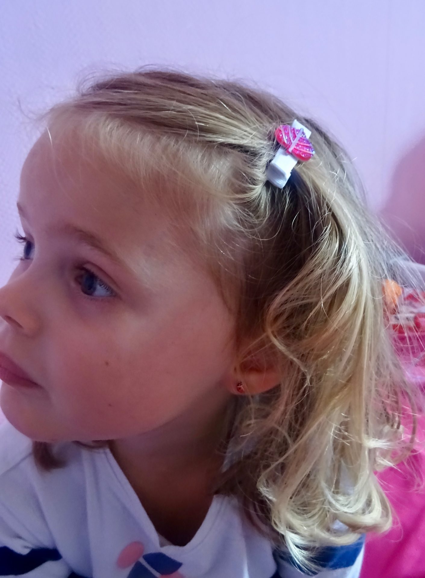 Les barrettes sont « fait maison » et je trouve qu’elle a des doigts de fée pour créer de si belles choses.