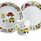 L’assiette plate pour le quotidien et le verre (mug) idéal pour tenir avec sa poignée, idéale pour les jeunes enfants.