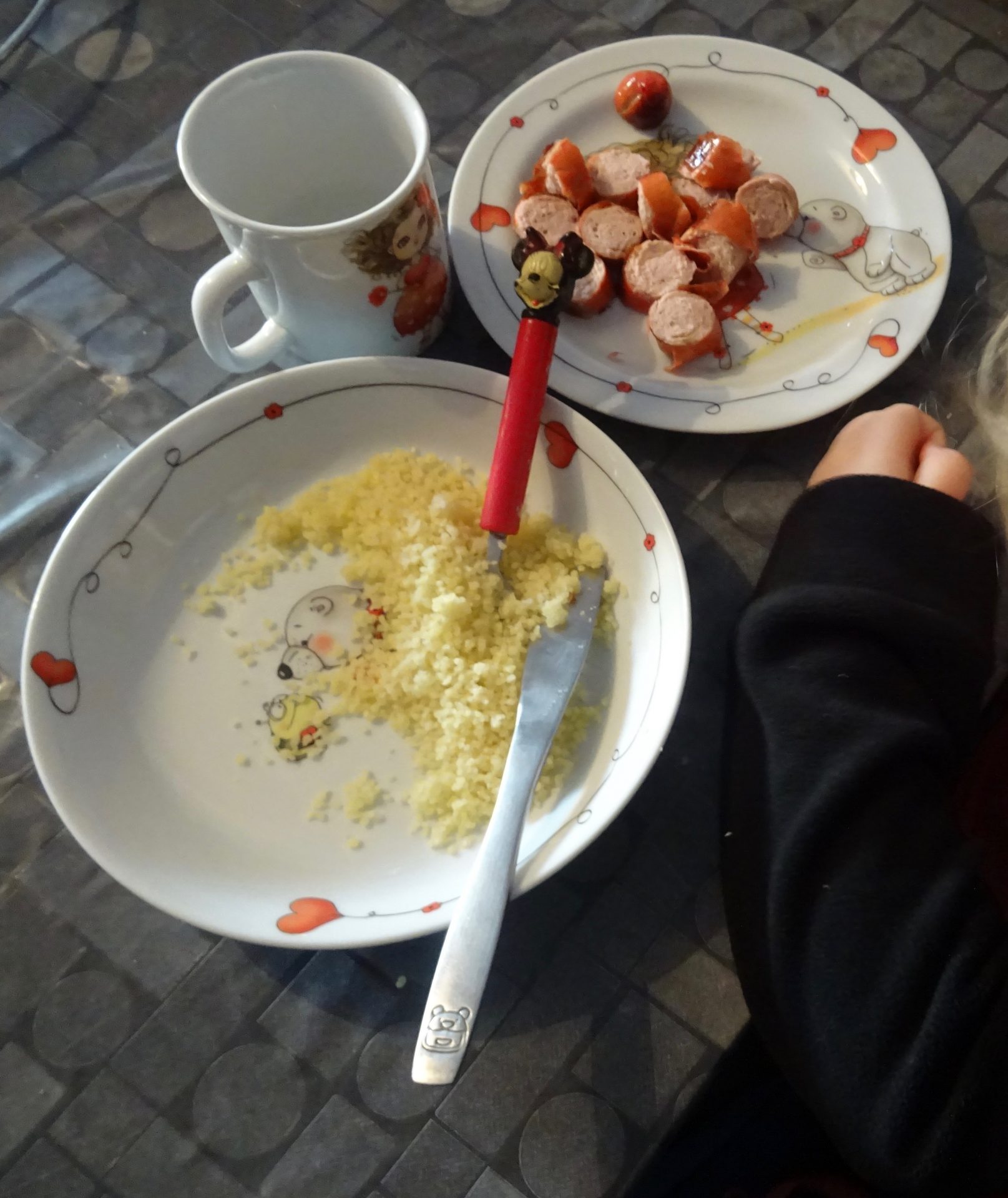 Une assiette creuse pour la semoule, très pratique pour manger seule, comme cela elle n’en a pas mis partout j’ai réellement apprécié.