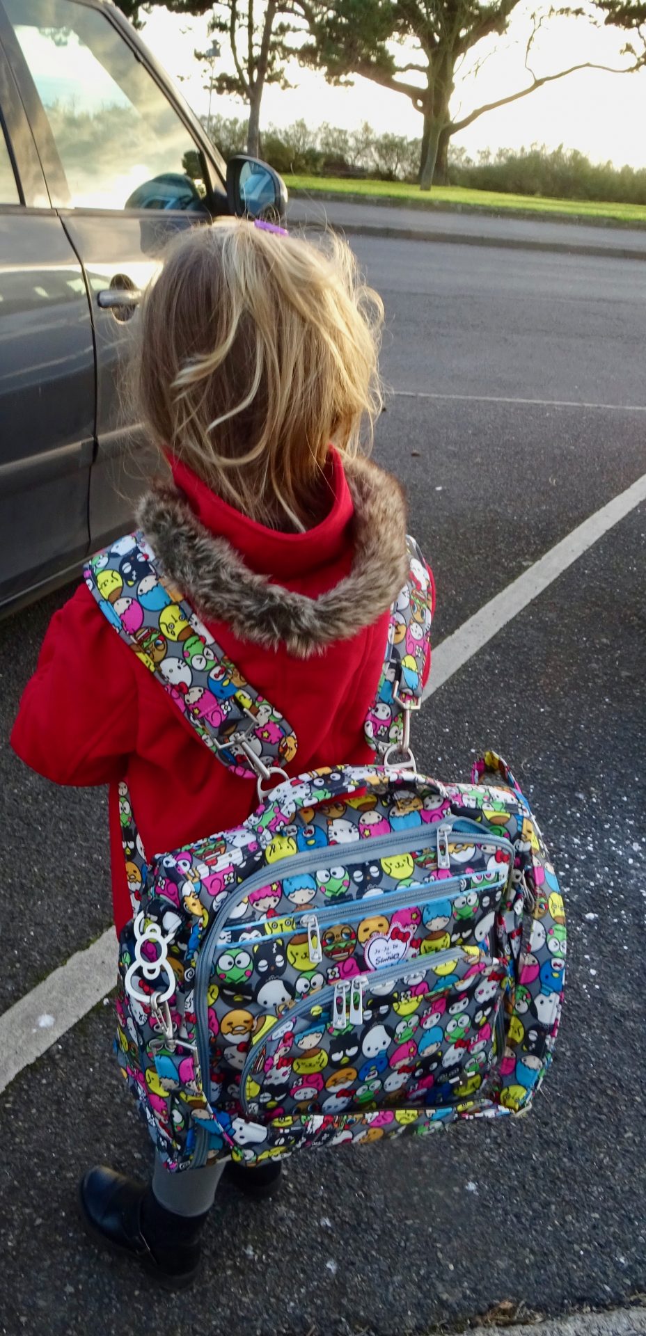 Ma chipie ayant 4 ans 1/2 elle n’ a plus besoin de lange, mais un change et un goûter puis un kit de survie pour les parents telles qu’une activité ou une trousse de soin sont bien utiles pour les promenades.