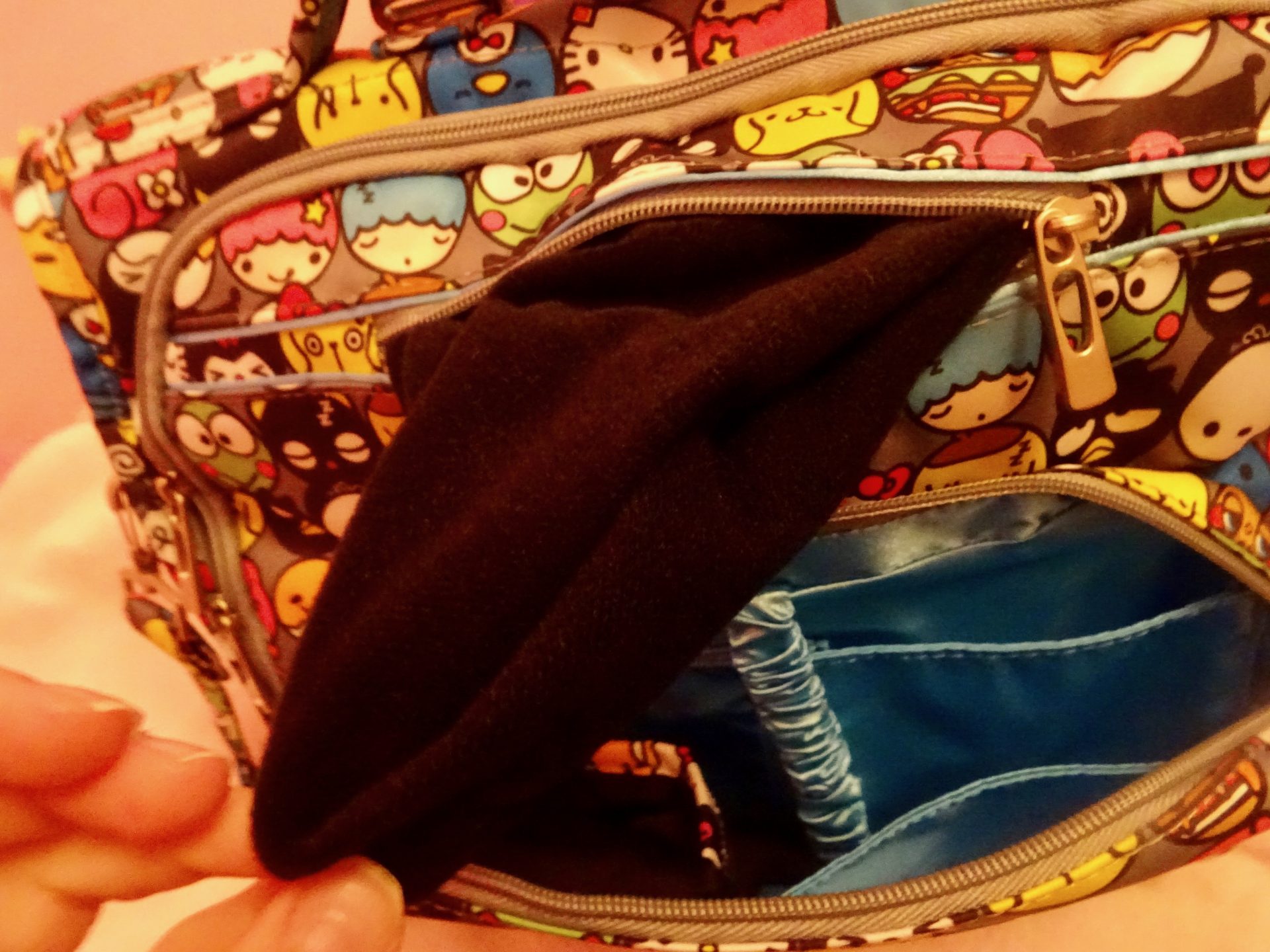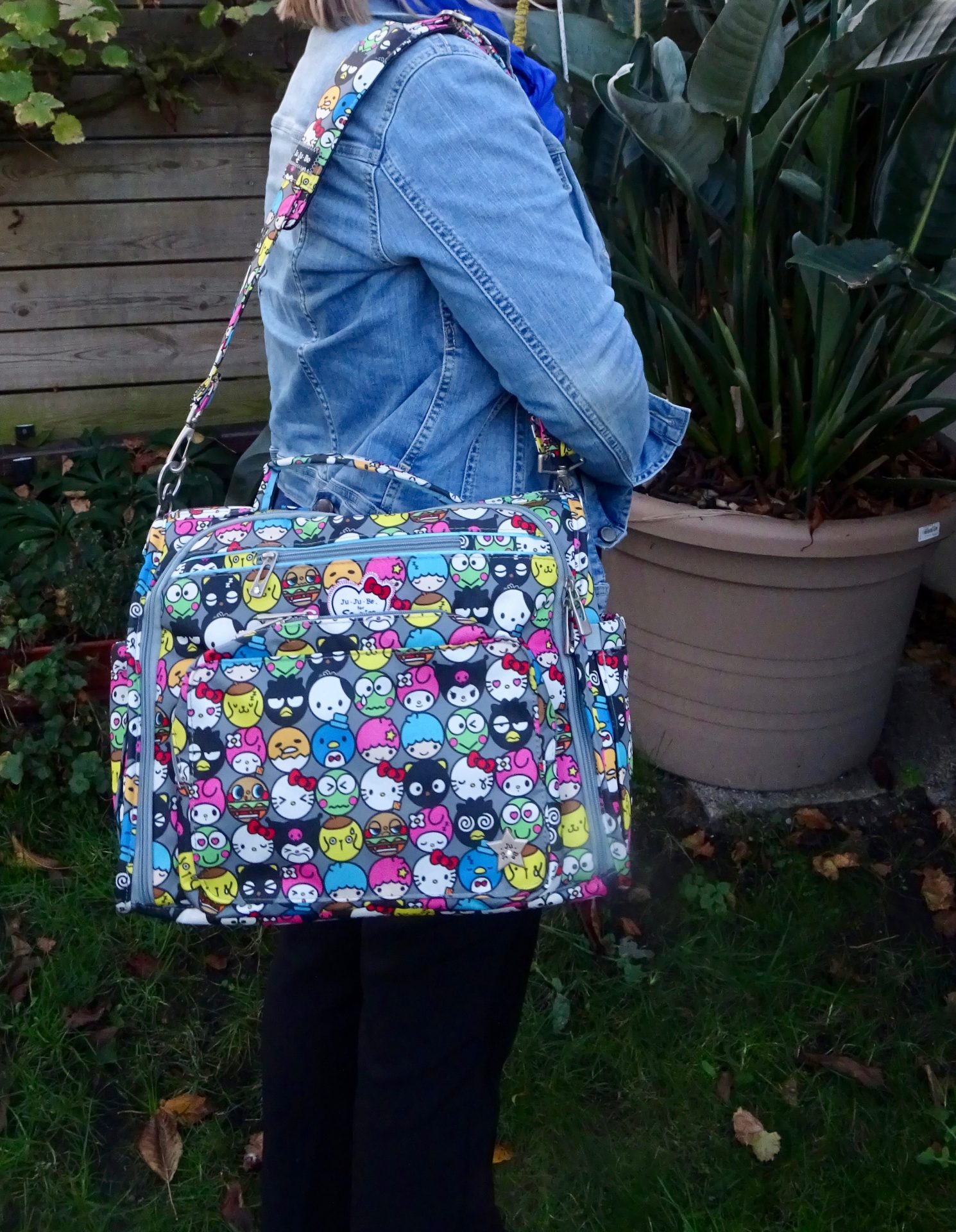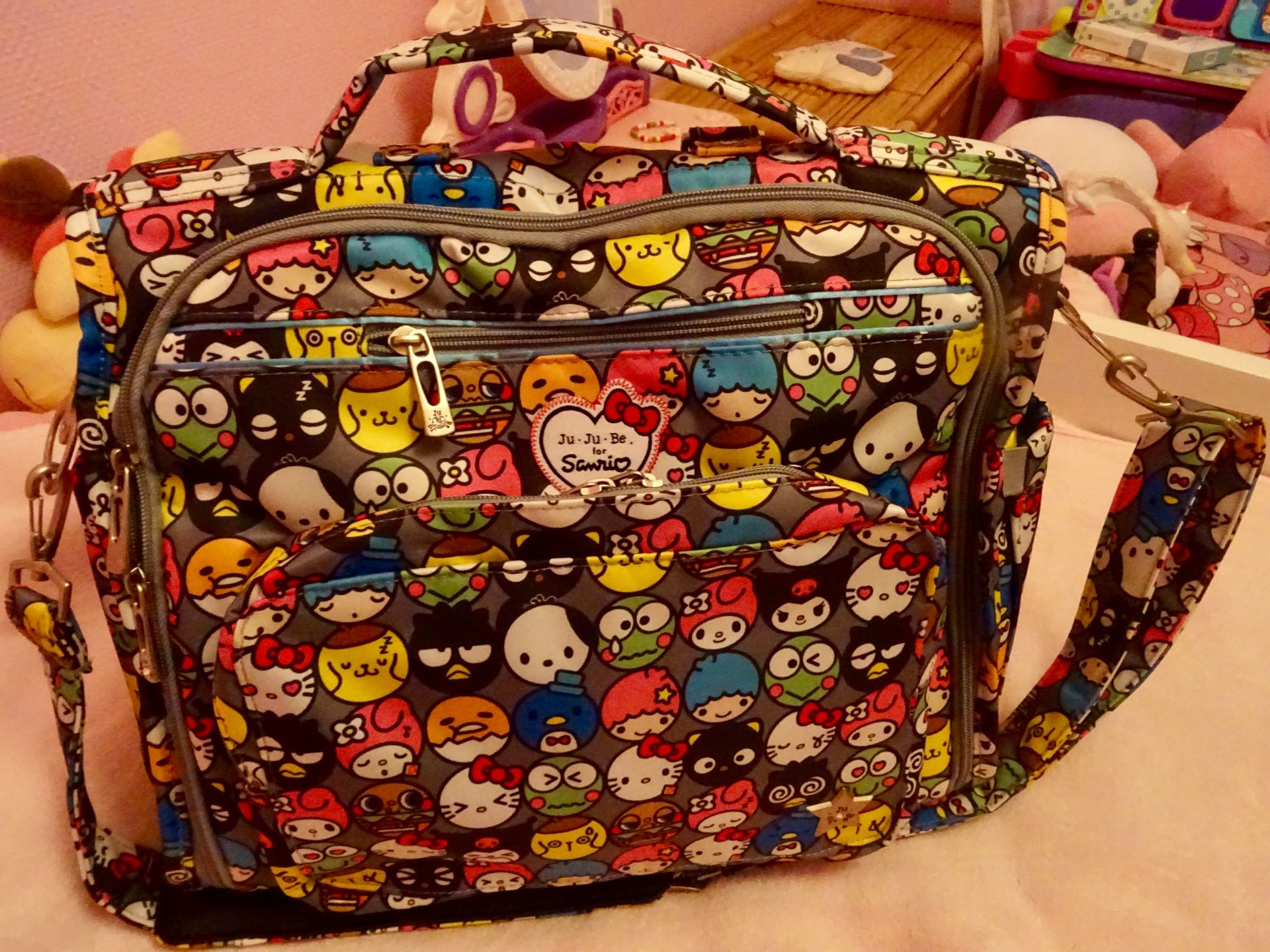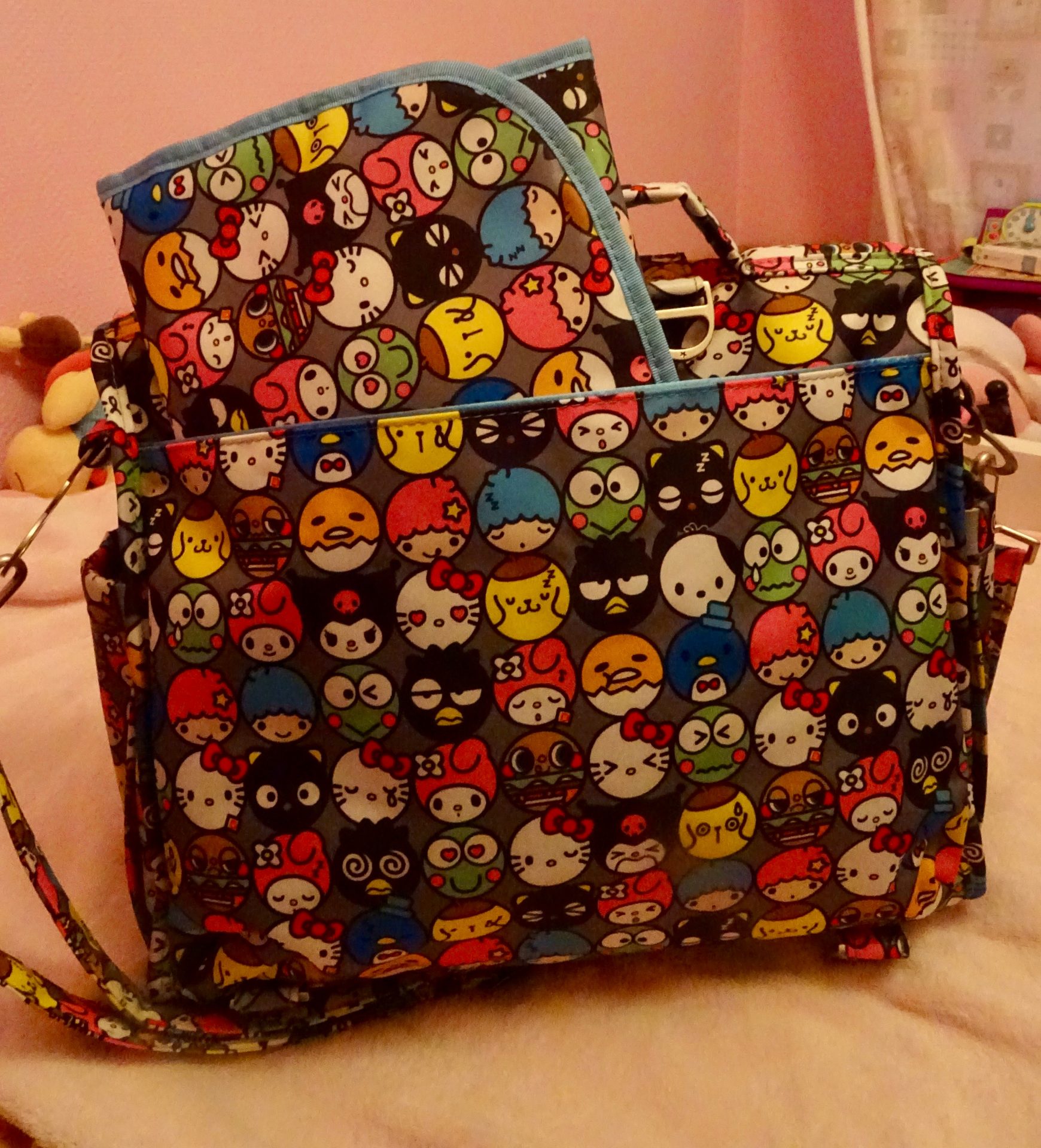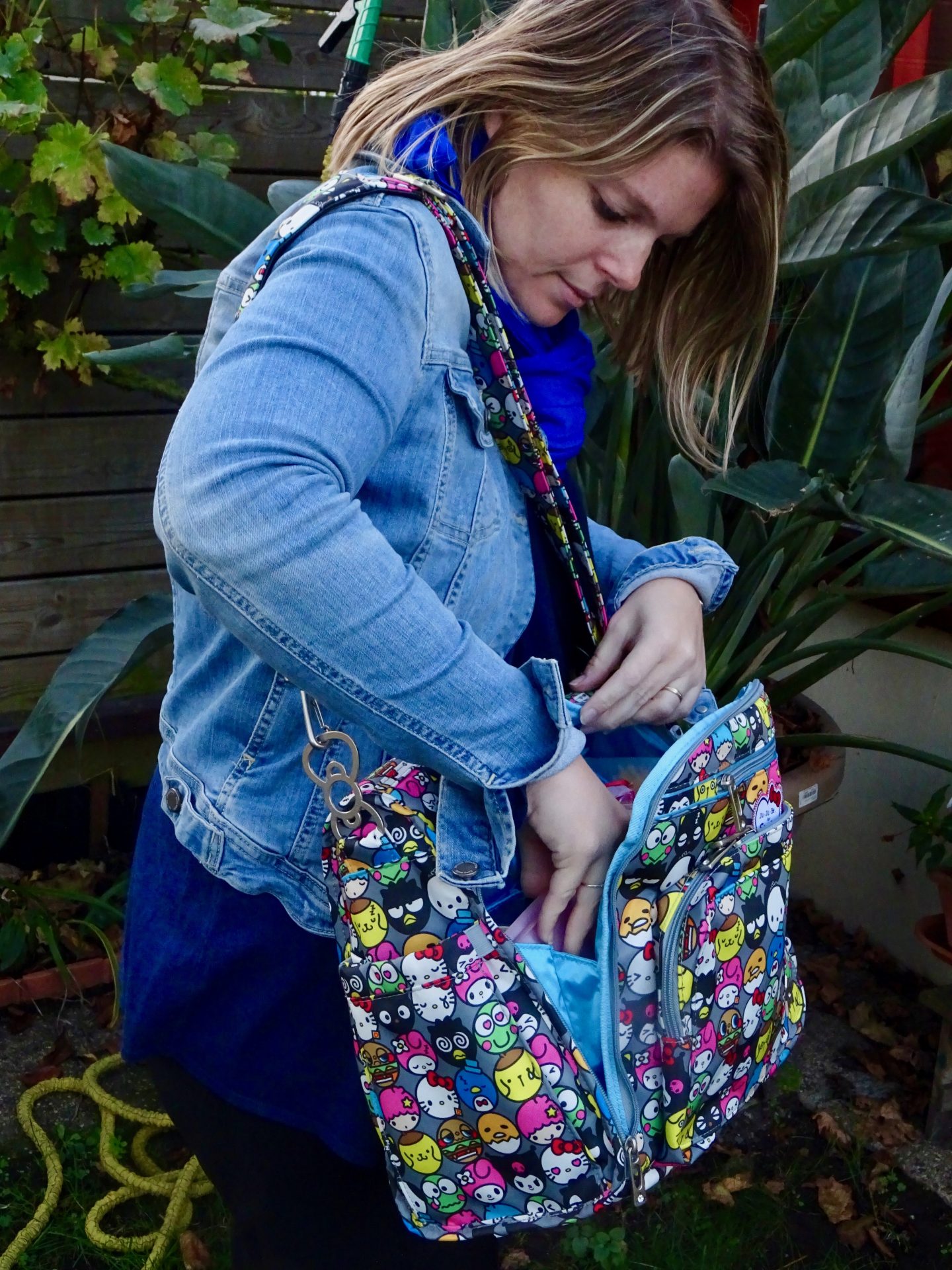 Bien sûr elle a reconnue de suite Hello Kitty, puis à repéré le bonhomme hamburger, la grenouille rigolote et celle qui pleure… Bref ce sac trop fun et fashion va ravir les petits comme les grands !