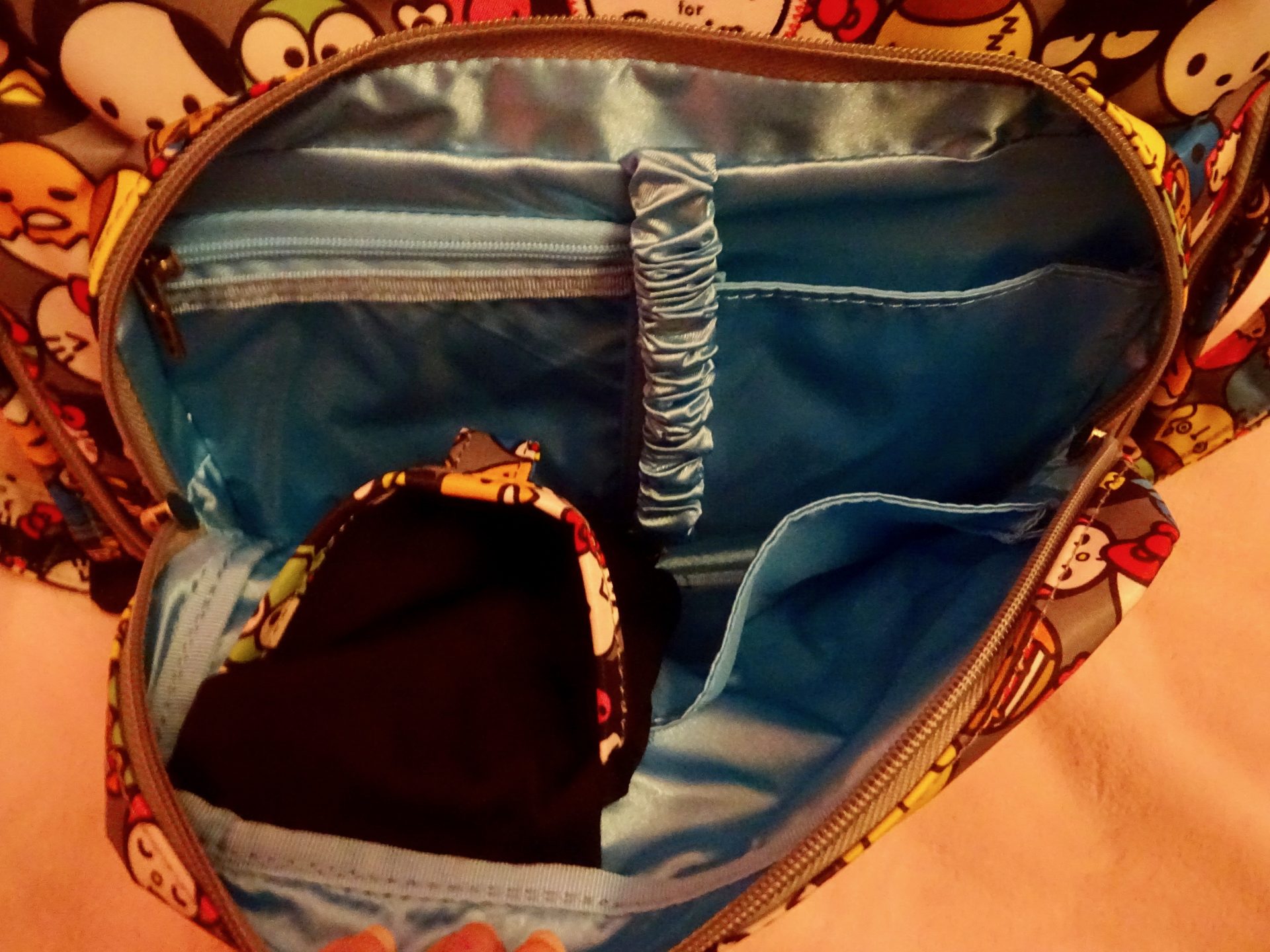 - L’intérieur comprend 4 compartiments de rangement, 3 compartiments avec fermeture éclair & beaucoup d’espace ouvert!