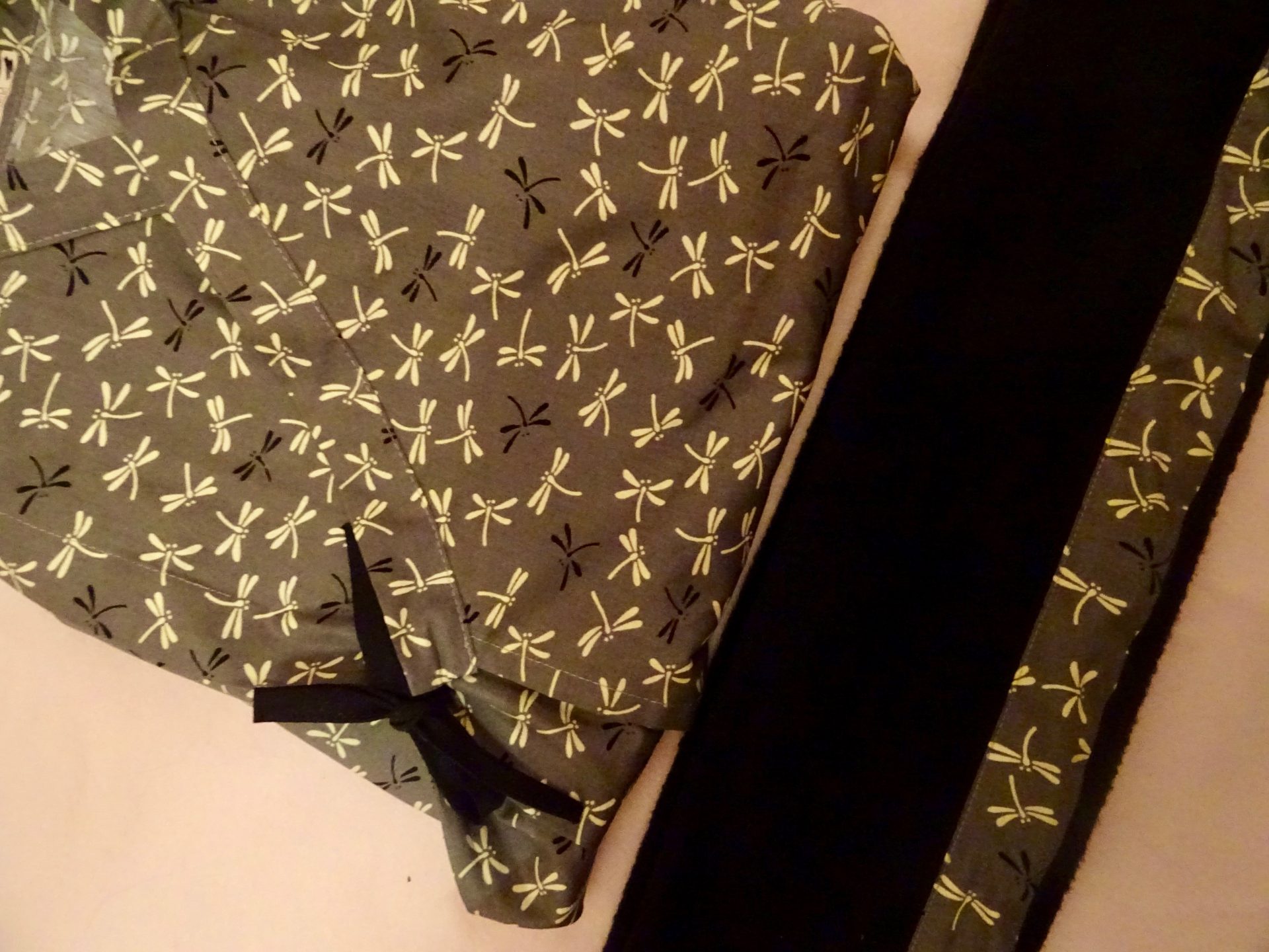 Une partie polaire noire et une autre en tissu du motif libellule du kimono. L’accord parfait et l’accessoire indispensable pour tout l’hiver.
