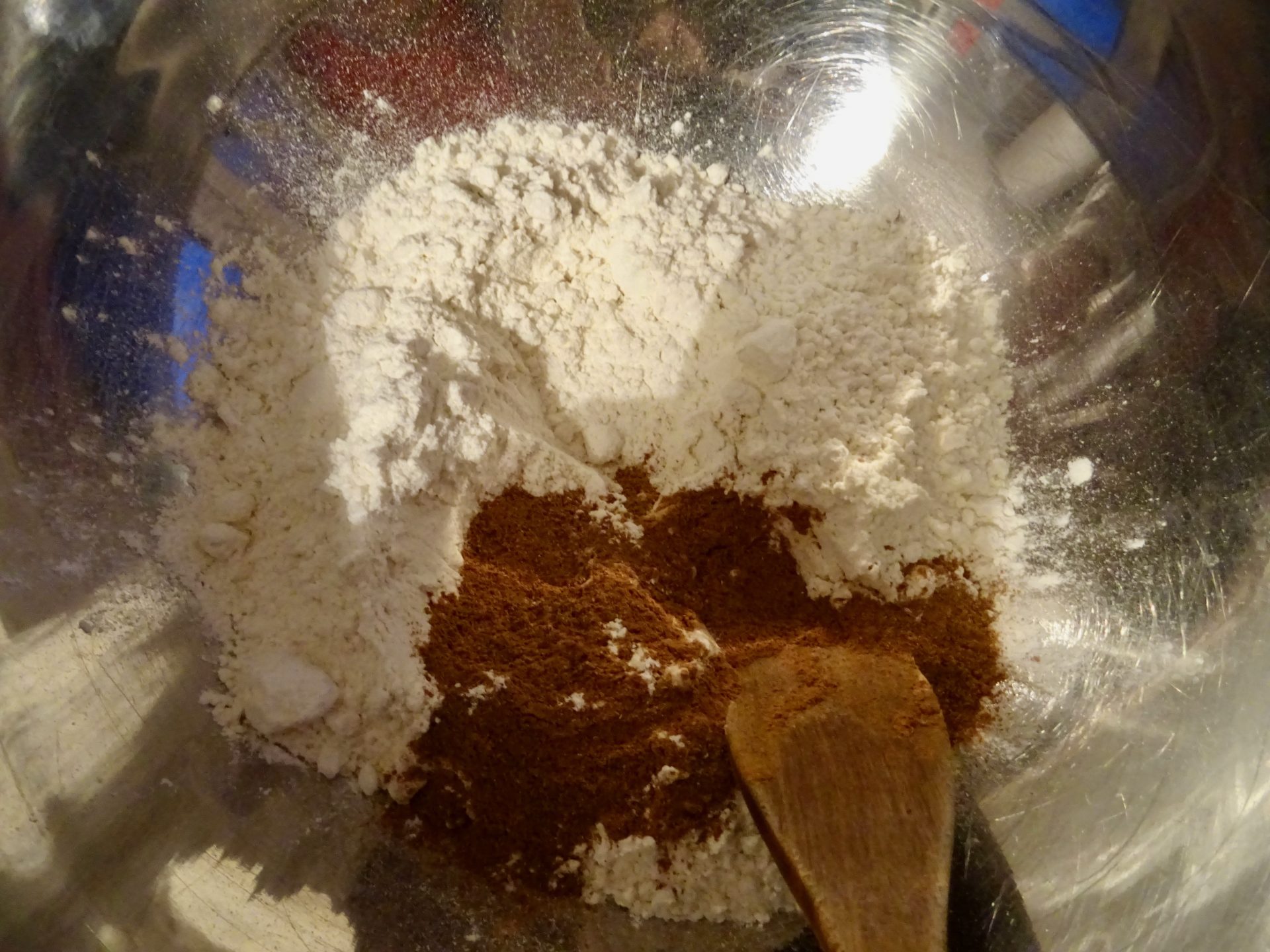 Tamisez la farine avec le bicarbonate et le mélange à pain d’épices dans un saladier.