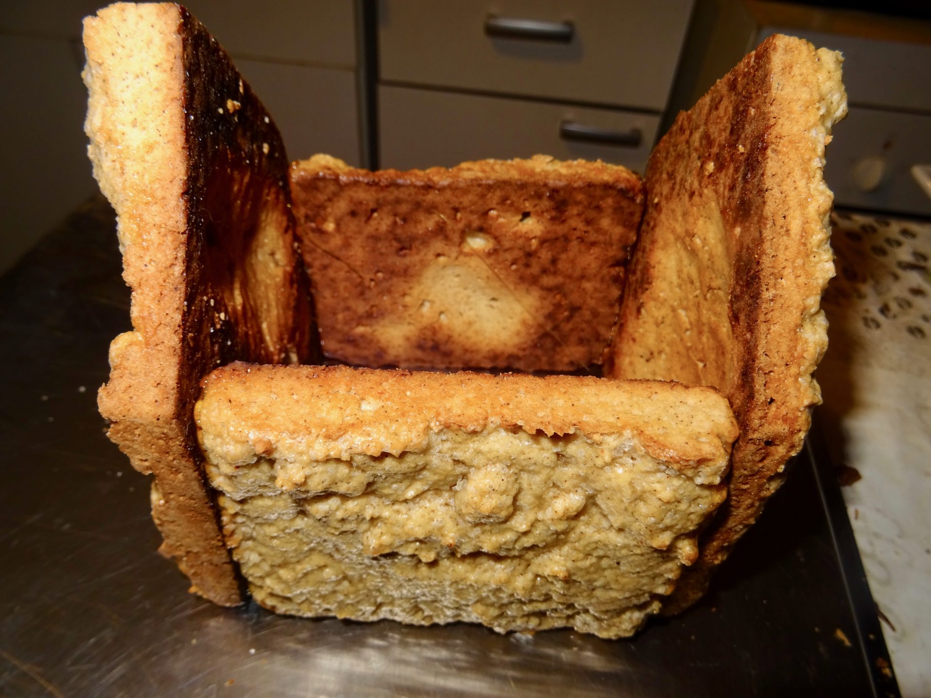 On voit que c’est notre toute première et qu’elle est faîte maison, les murs de la maison font plus penser à du crépi qu’à du béton ! Mais elle nous donne déjà envie de la dévorer..