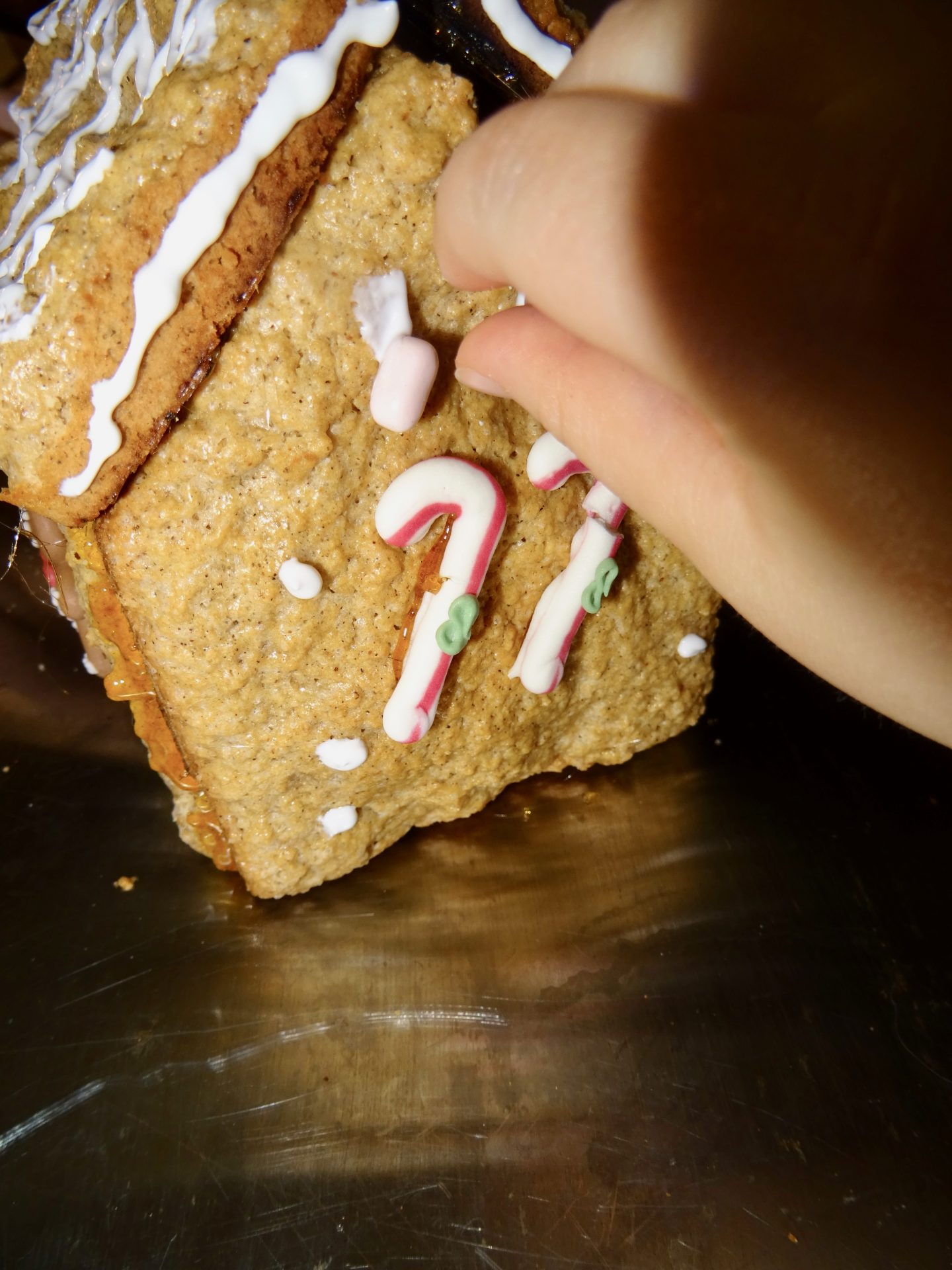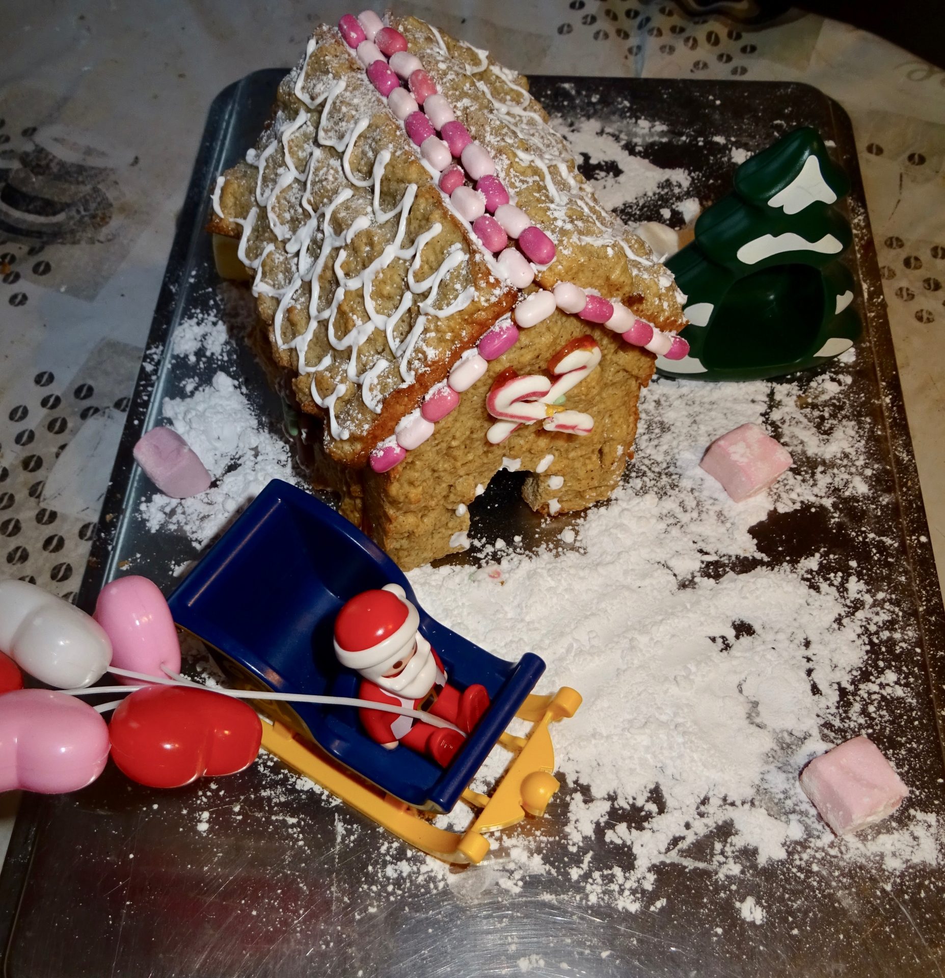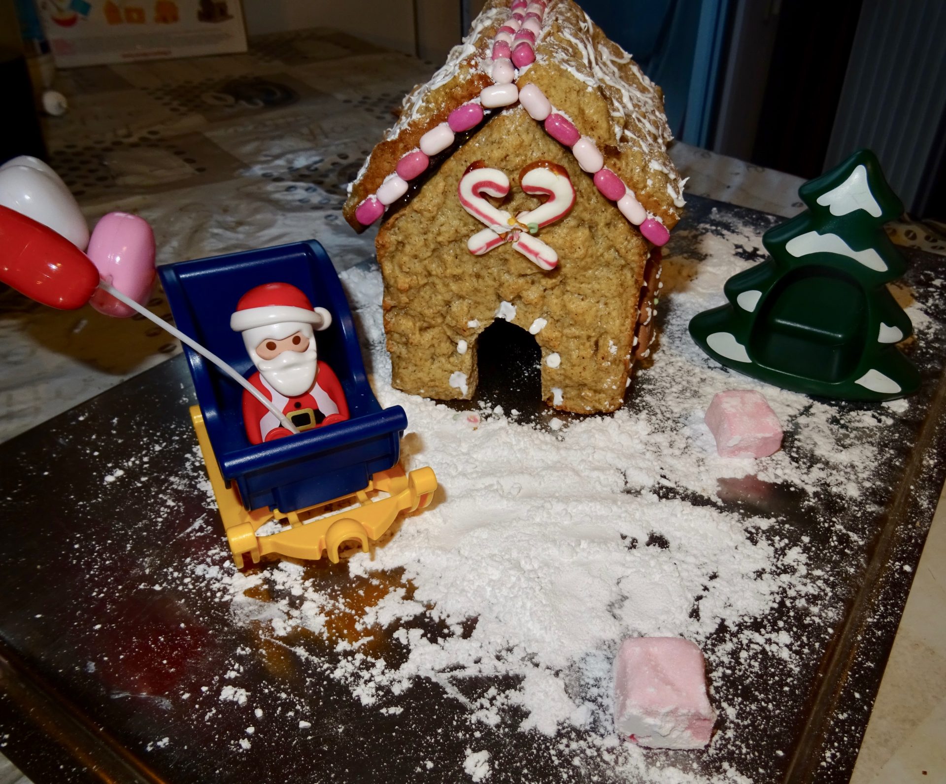 Ici une année ma mère avait acheté un kit pour en faire une mais les murs étaient déjà fait en biscuit, il fallait juste les « coller » oui ben les murs et toits n’étais pas super droit alors bon … ce fut une galère et c’est moi qui m’y suis collée aussi ! (merci maman !)