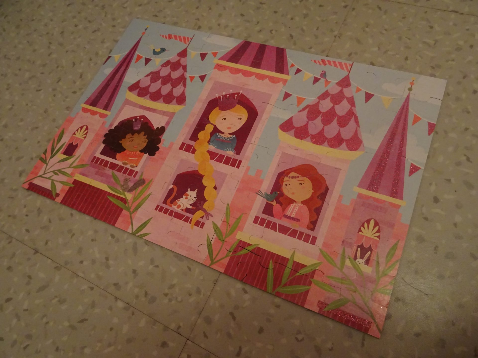 Ce puzzle comme je vous le disait est ultra Girly avec ces pièces avec des paillettes et son dessin de château fort avec princesses.