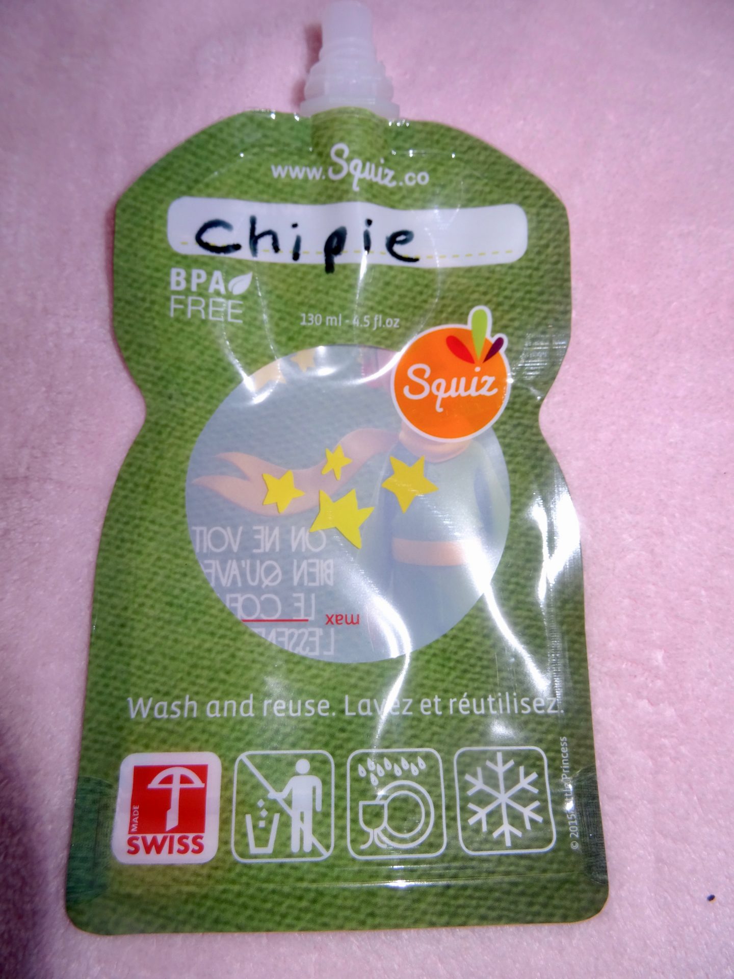 C’est pourquoi j’ai décidé de ne plus gaspiller et de tester la gourde Squiz de 130 ml de la collection Le Petit Prince Imagination.