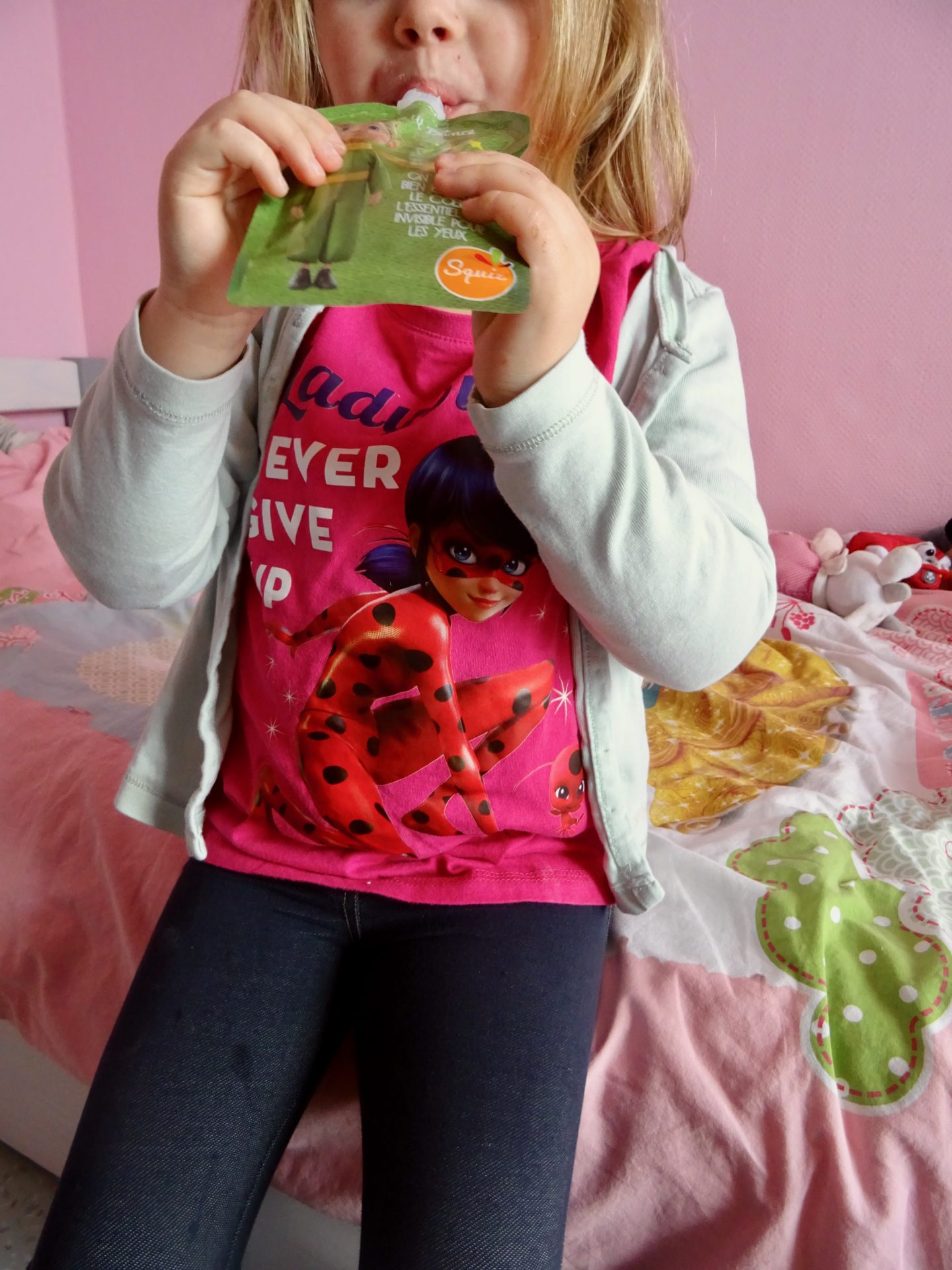 J’ai toujours moi-même dans mon sac à main, une gourde de compote en cas de coup de faim !