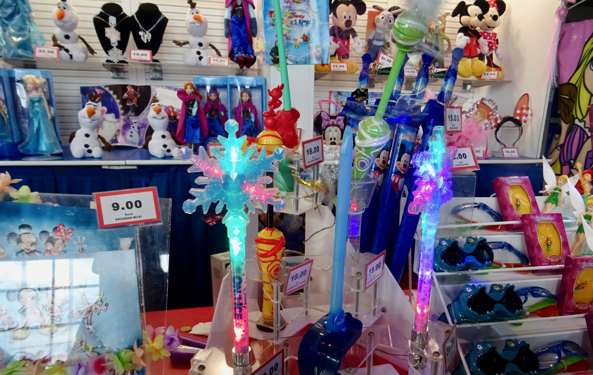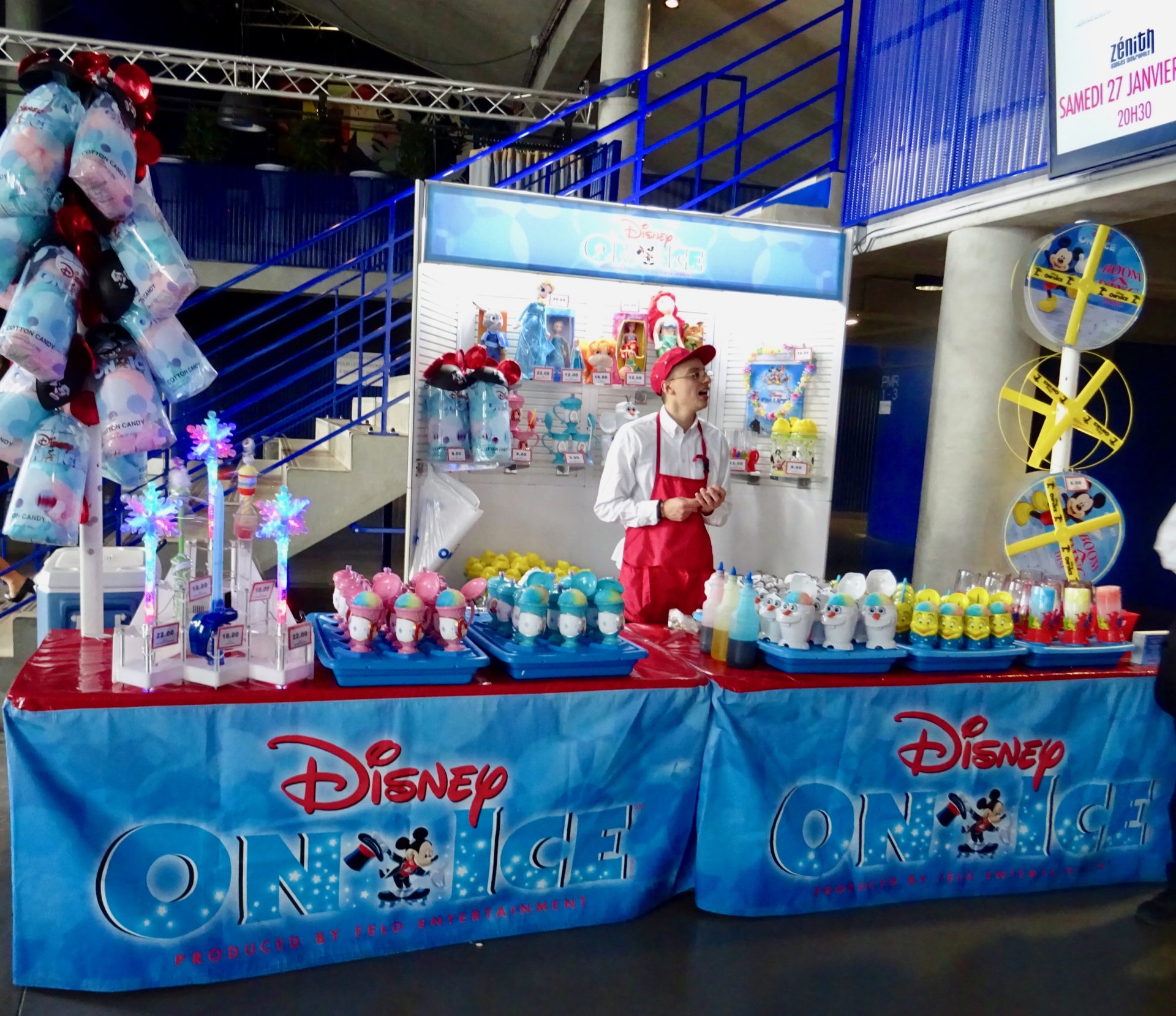 Des hôtes et hôtesses à nos petits soins et des vendeurs de divers accessoires, gourmandises et souvenirs à effigie du spectacle et de ses héros.