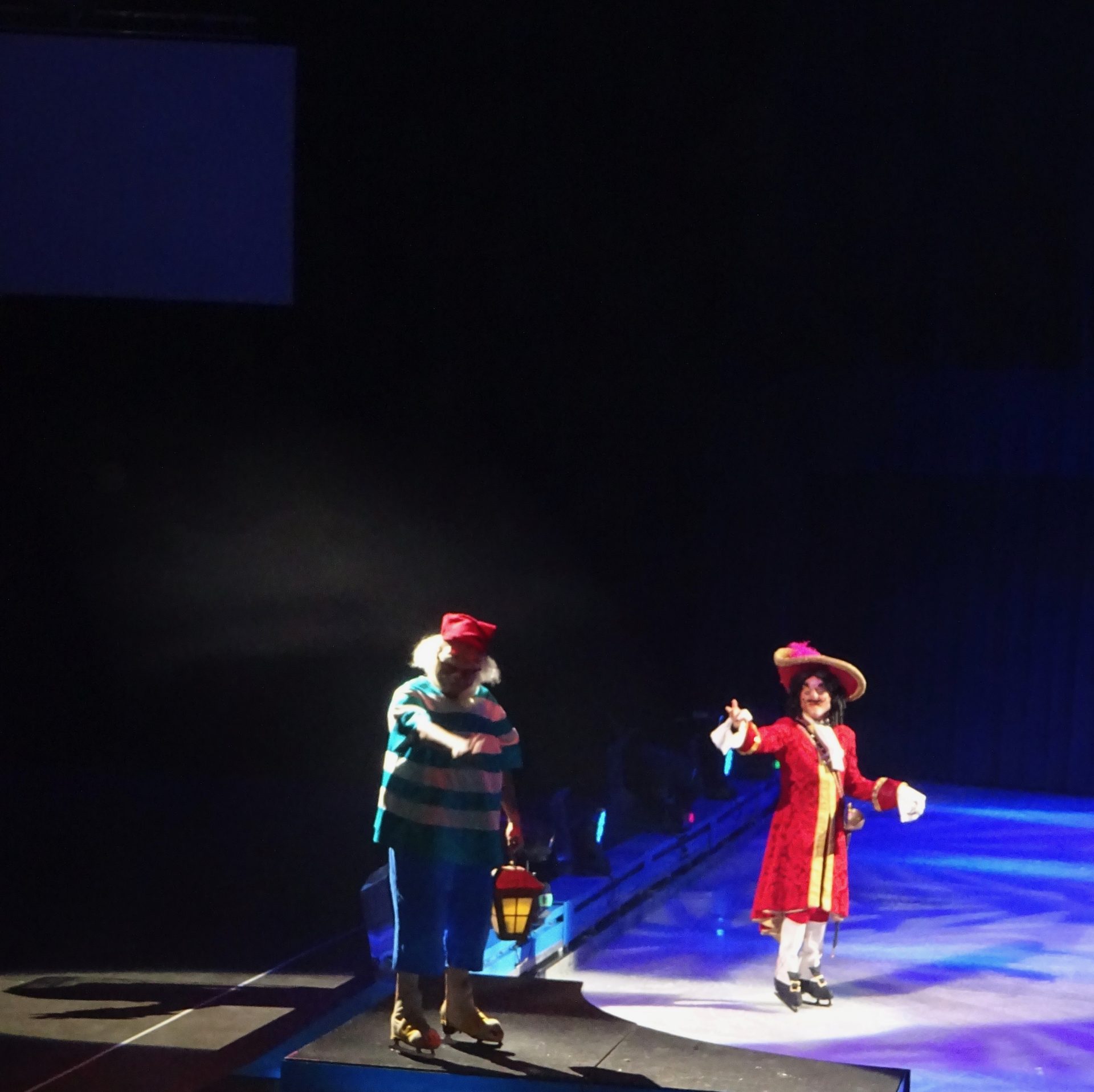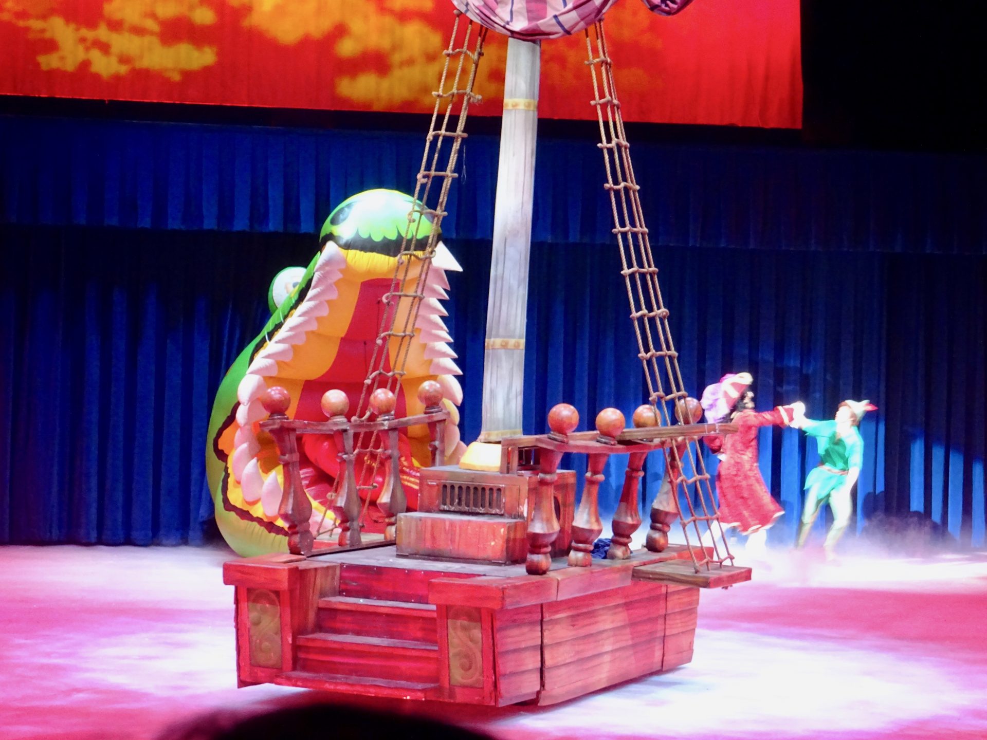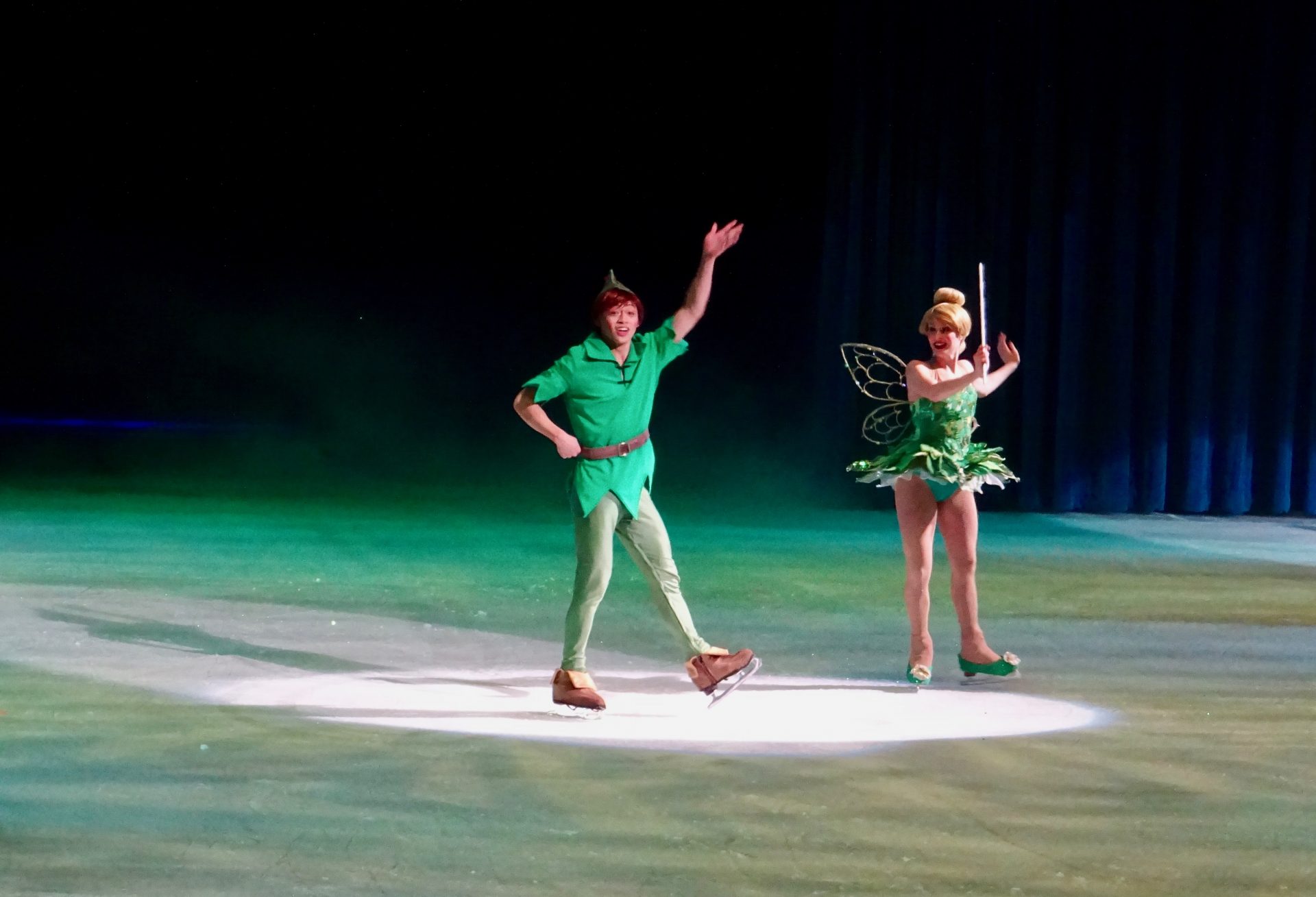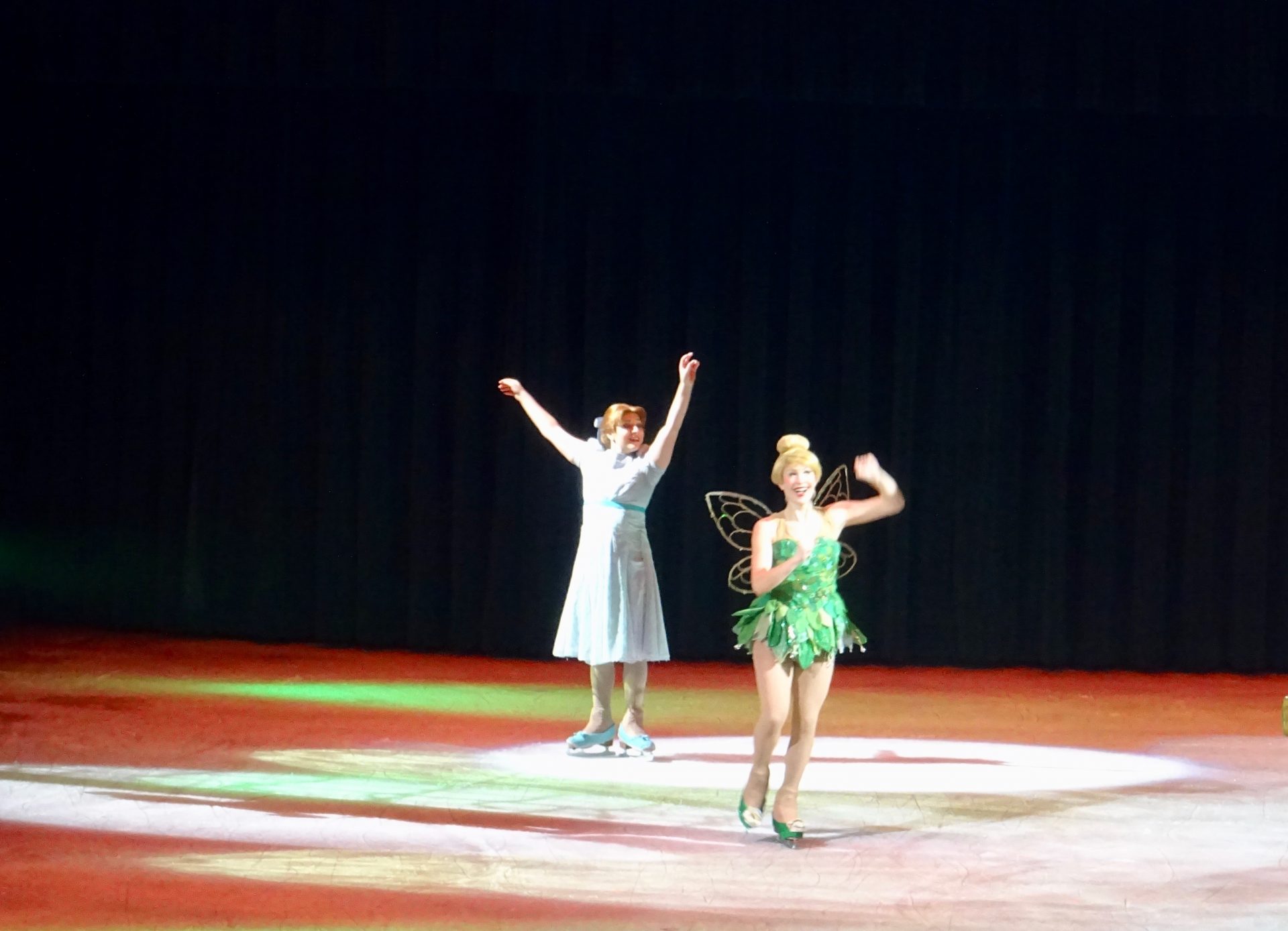 La première partie du spectacle dédié à Londres, Peter Pan, fée clochette et sa poudre magique, capitaine crochet, le conte des enfants perdus, le roi Lion et les personnages de Zootopie que ma chipie adore !