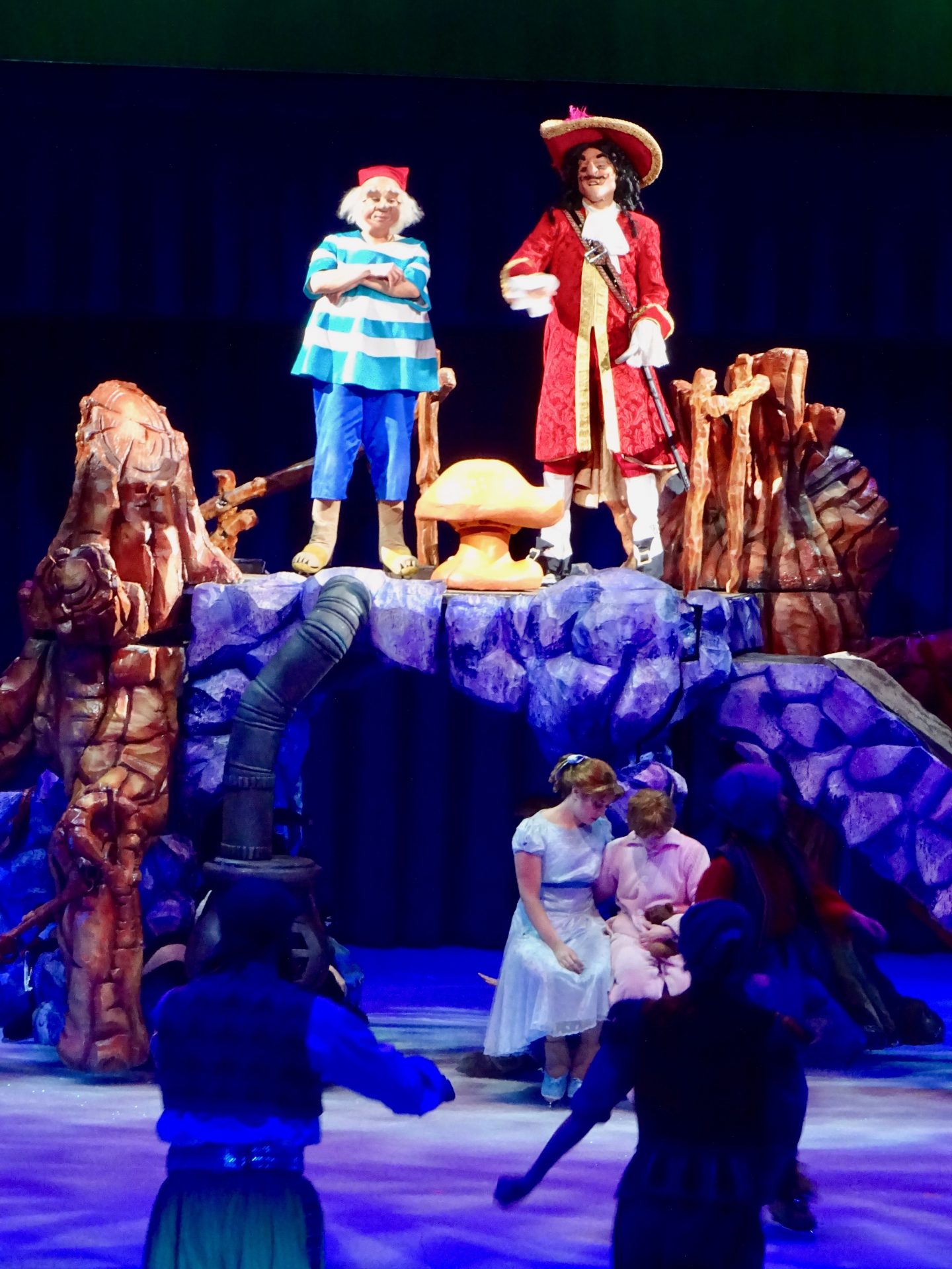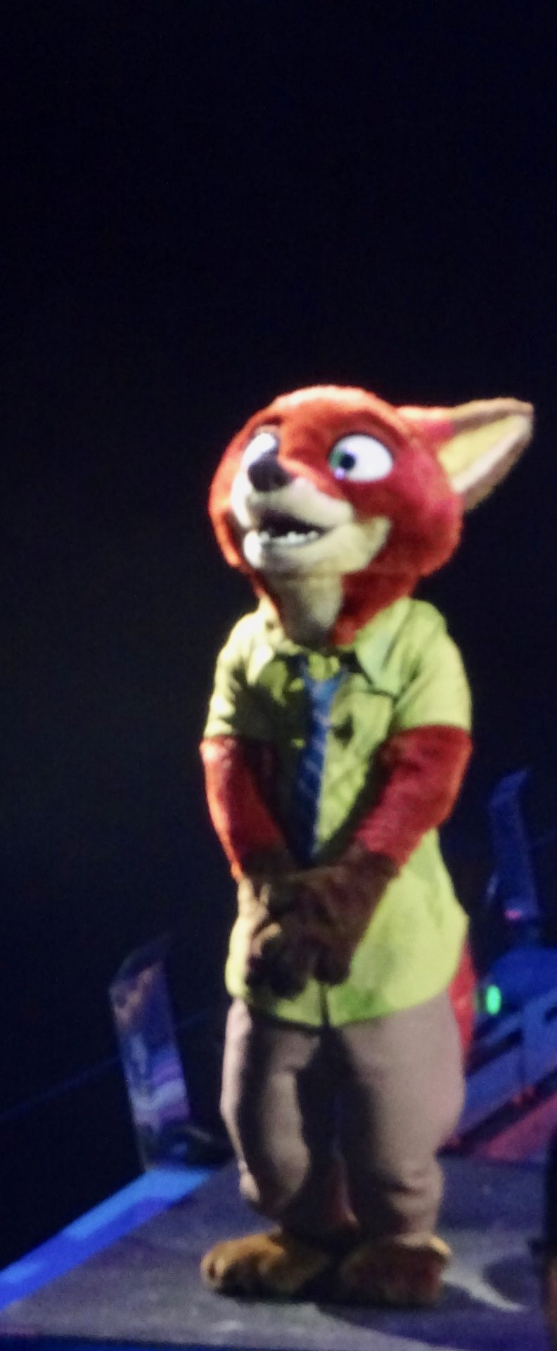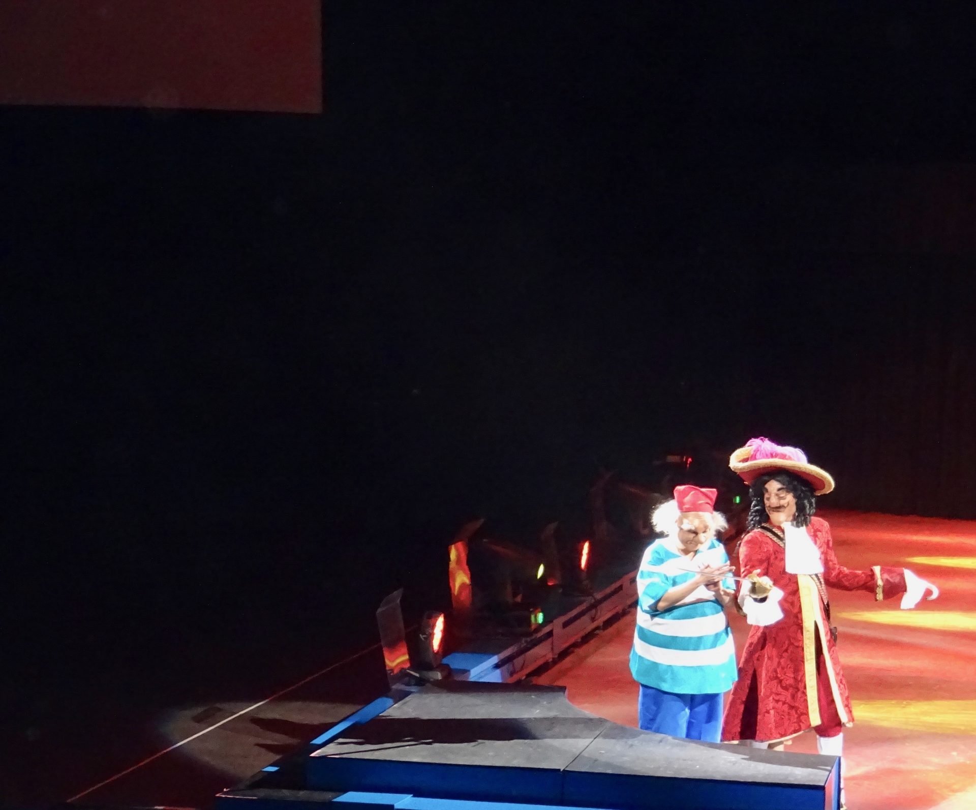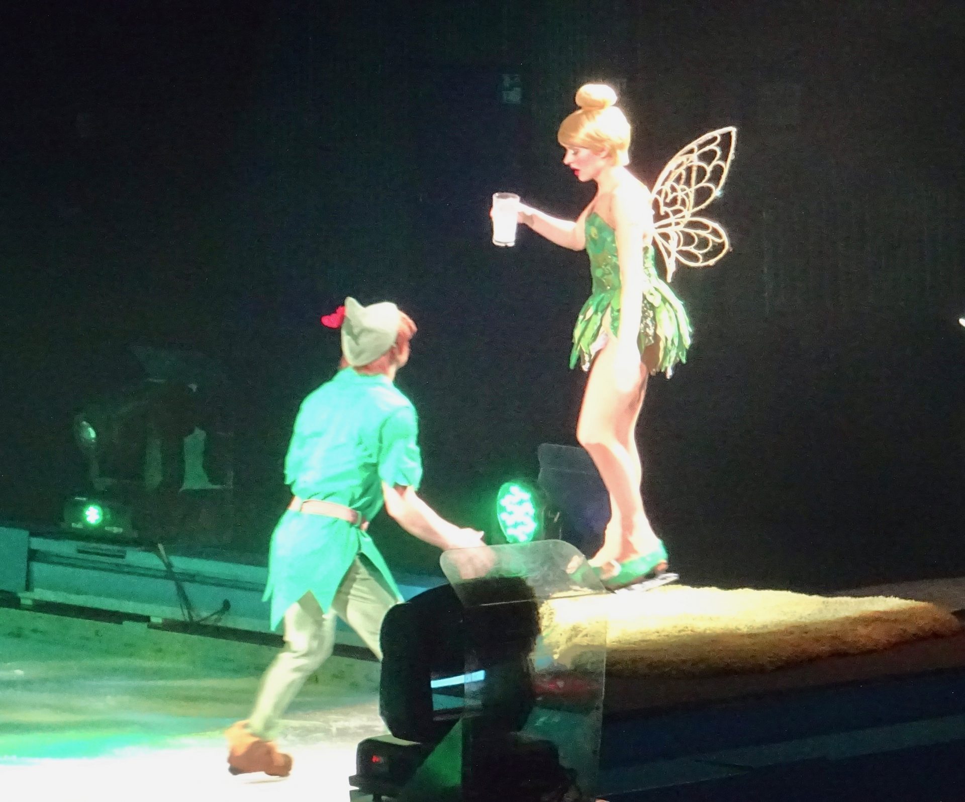 La première partie du spectacle dédié à Londres, Peter Pan, fée clochette et sa poudre magique, capitaine crochet, le conte des enfants perdus, le roi Lion et les personnages de Zootopie que ma chipie adore !