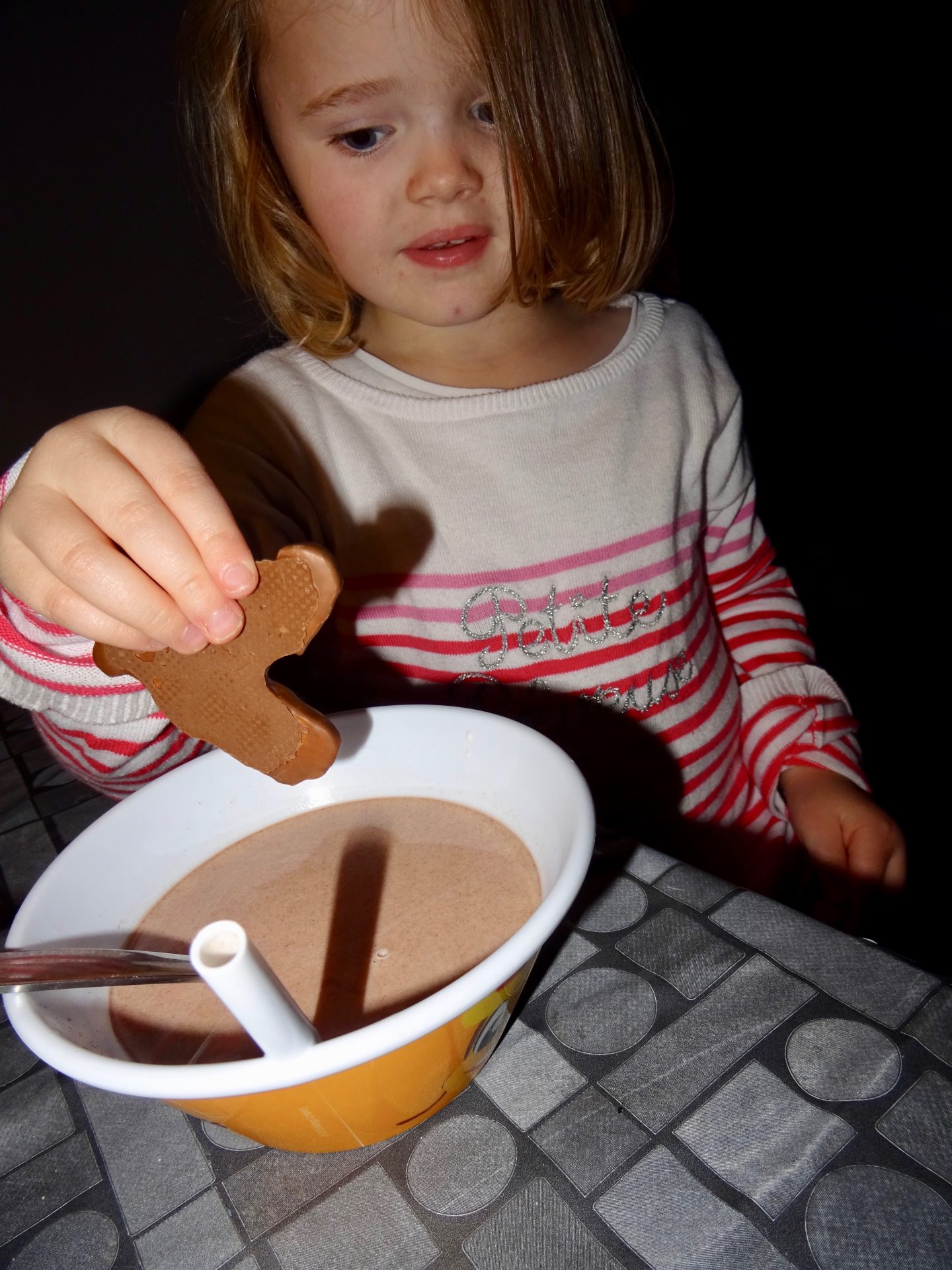 Accompagné d’un chocolat chaud pour chipie et d’un bon thé pomme/ cannelle pour moi, notre dégustation fut un régal pour nos papilles.