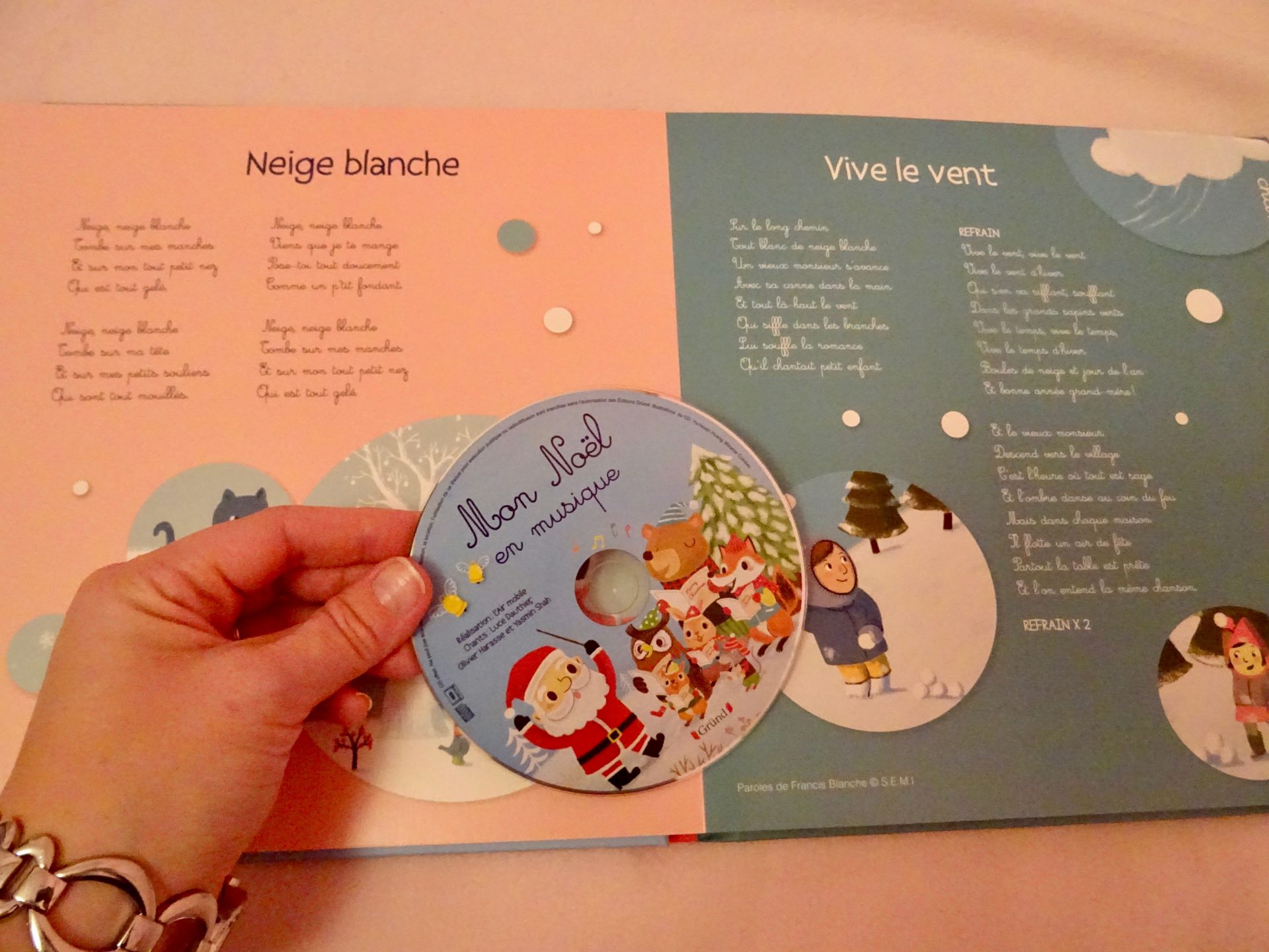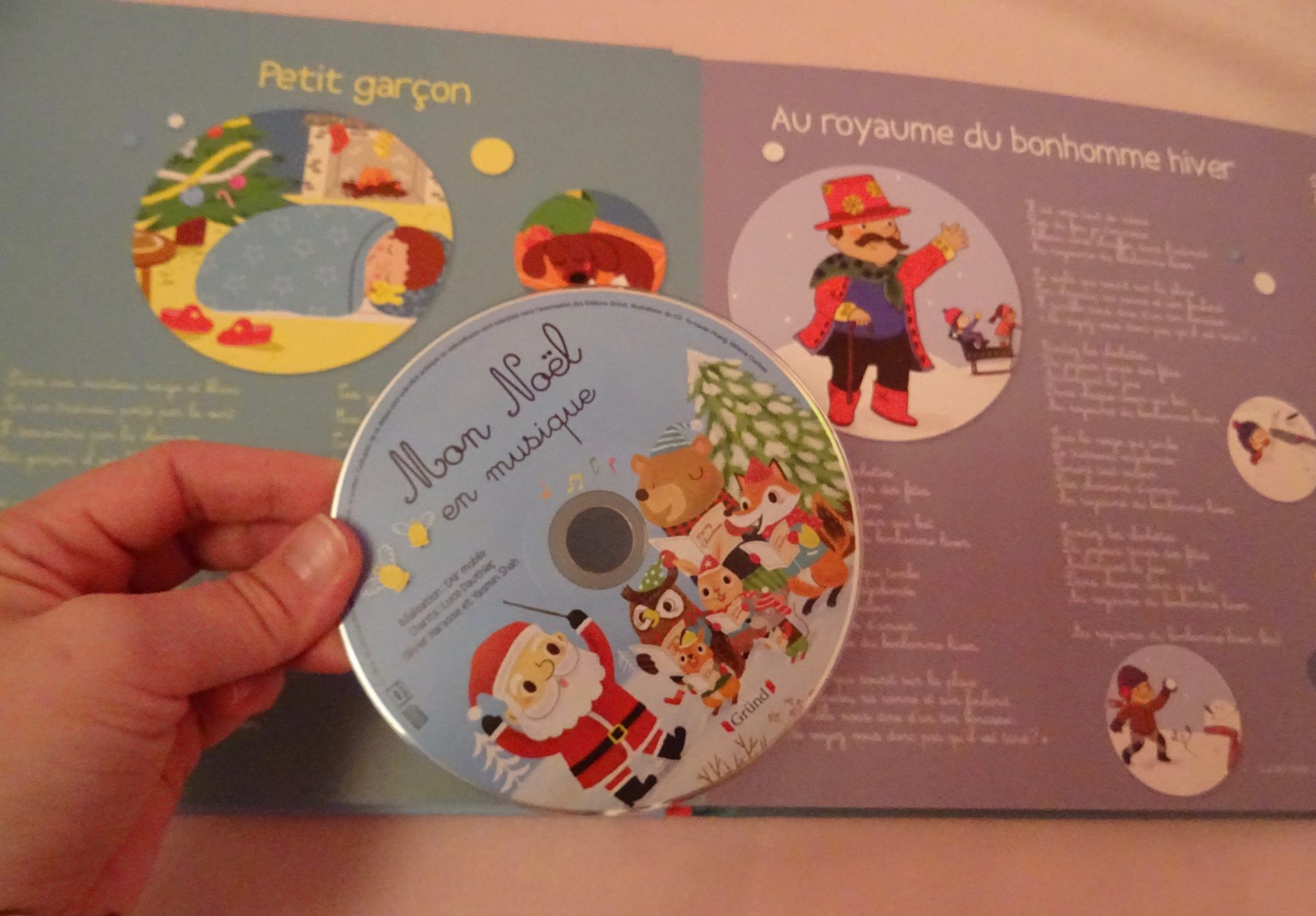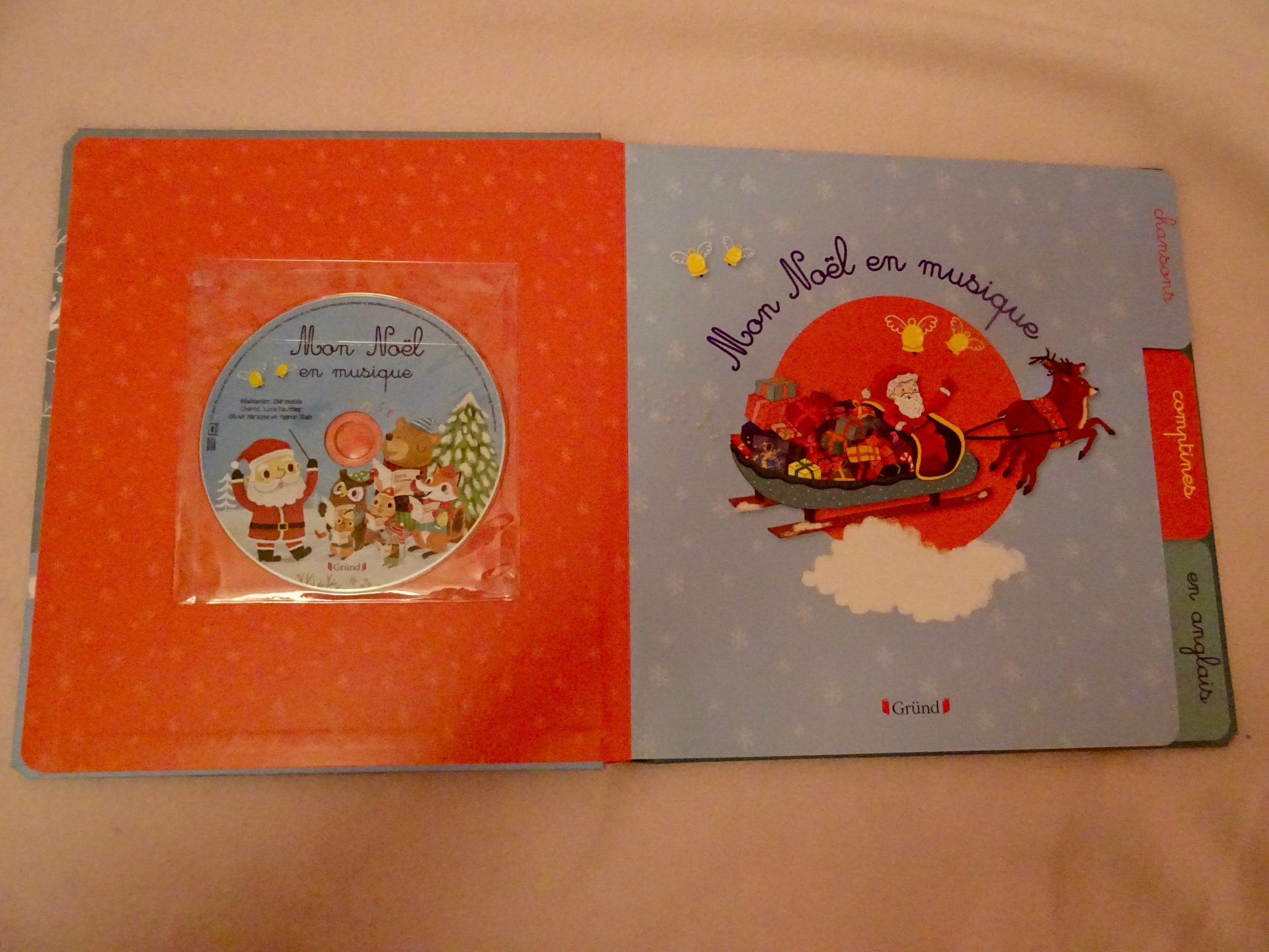 Un CD qui s’écoute en se laissant porter page par page au fil des chants de Noël, puis des comptines et à la fin des chansons de Noël en anglais.