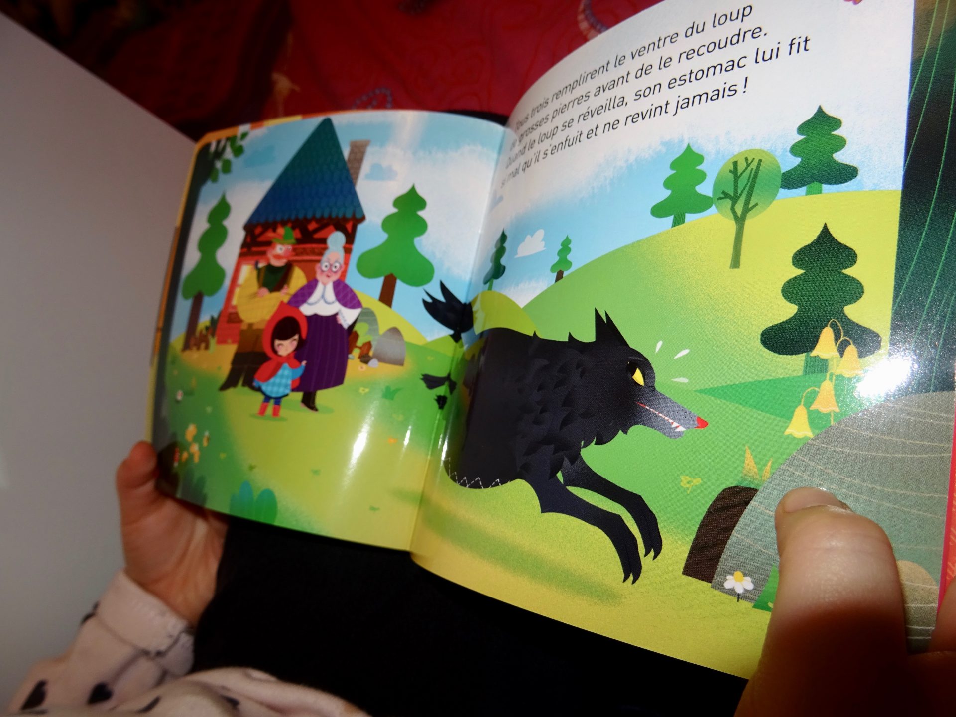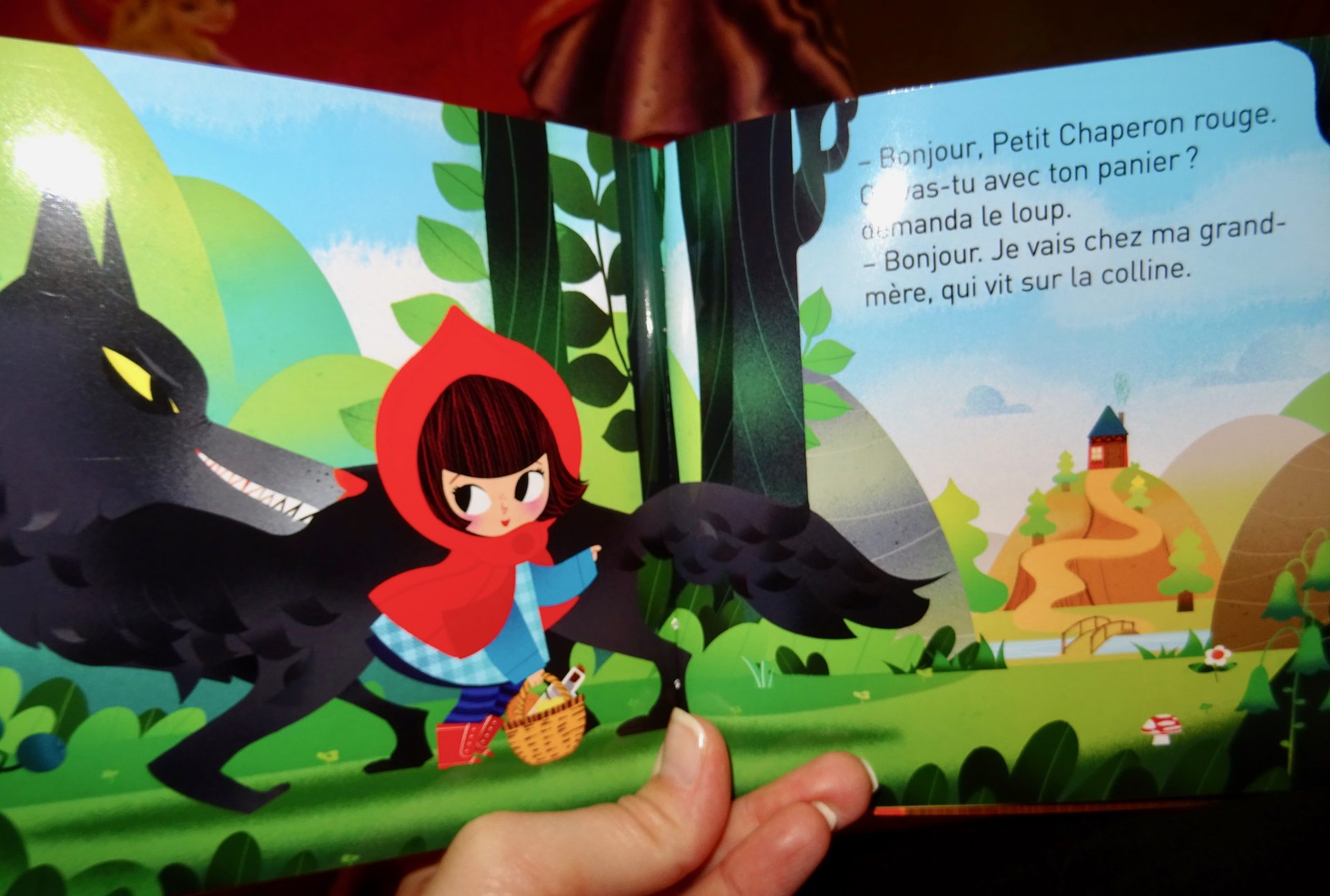 Bon cette histoire du Petit Chaperon Rouge, ma chipie la connait par cœur, alors elle a prit le livre et c’est elle qui m’a conté l’histoire.