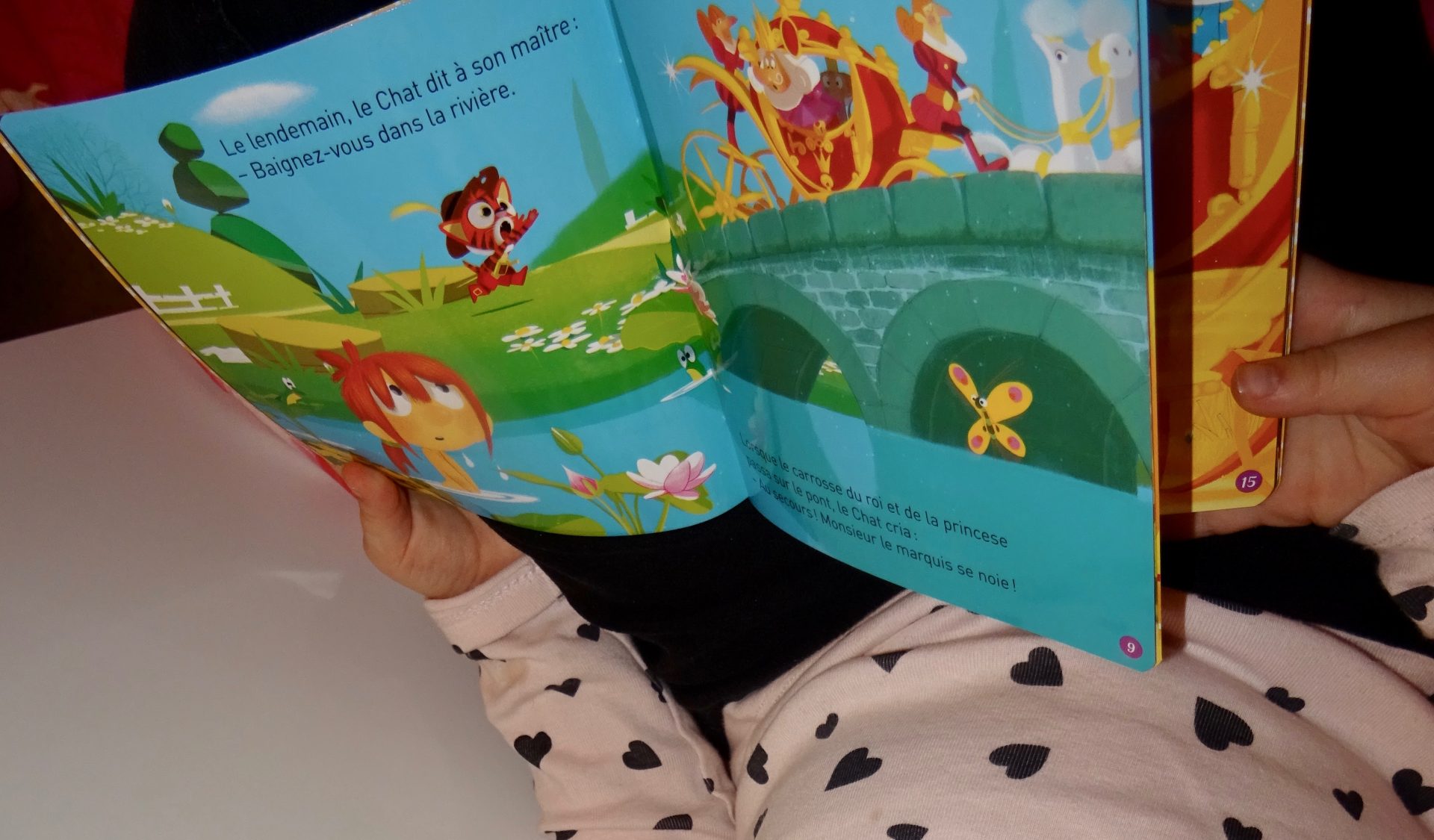 De jolies pages colorées qui donnent envie de partir à l’aventure avec le chat botté.