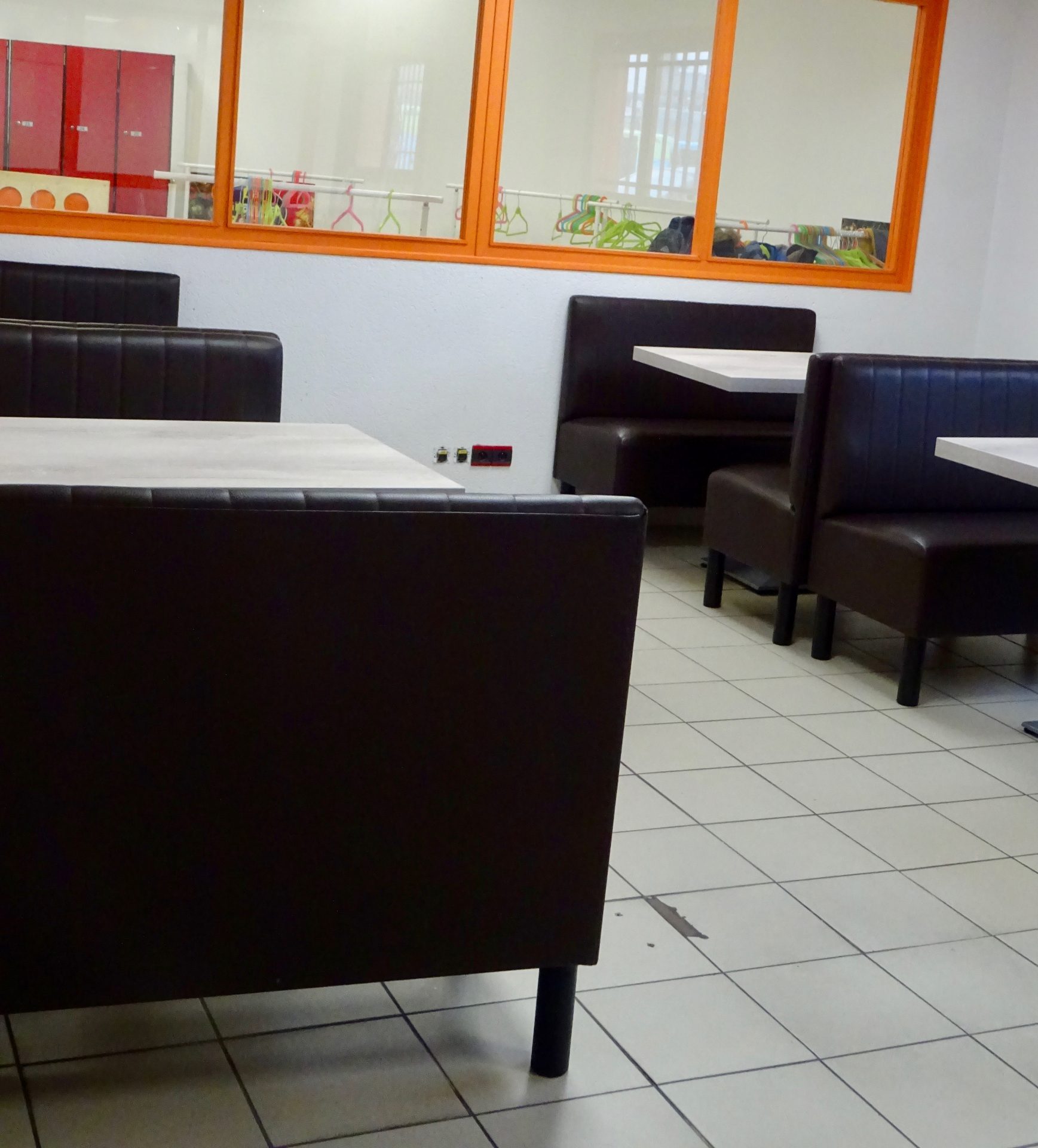 Instant détente dans la salle plus au calme pour un café en amoureux avec papa pendant que chipie s’éclate.