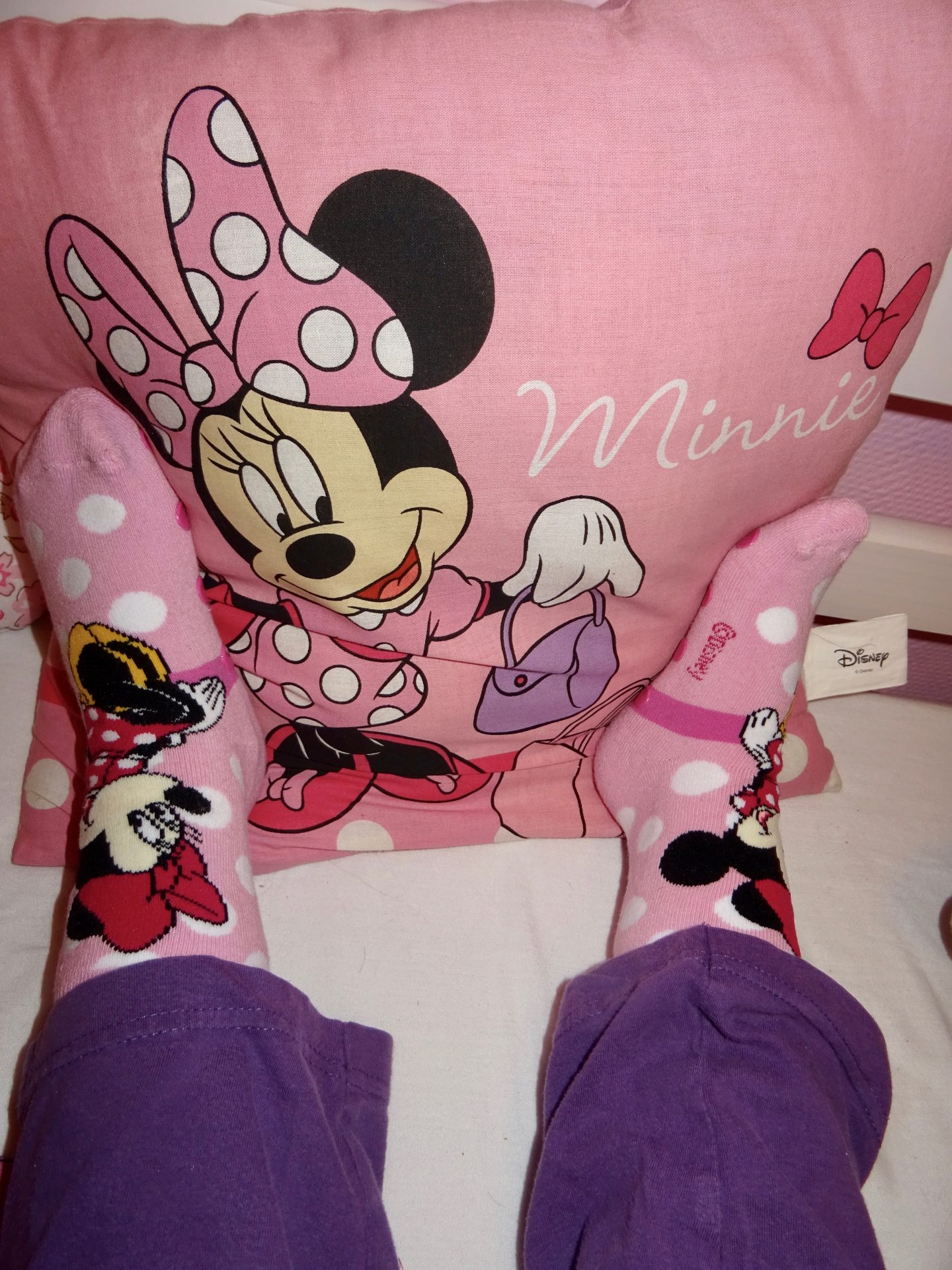 Alors quand elle a vue que ces nouvelles chaussettes était à l’effigie de Minnie et antidérapante, hop ni une ni deux la voici parées pour être bien au chaud et ne plus risqué de tomber