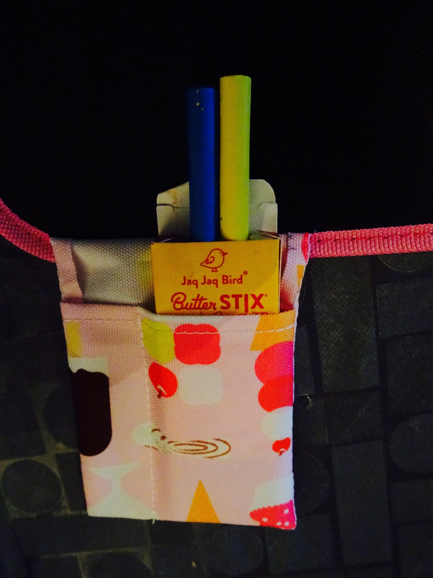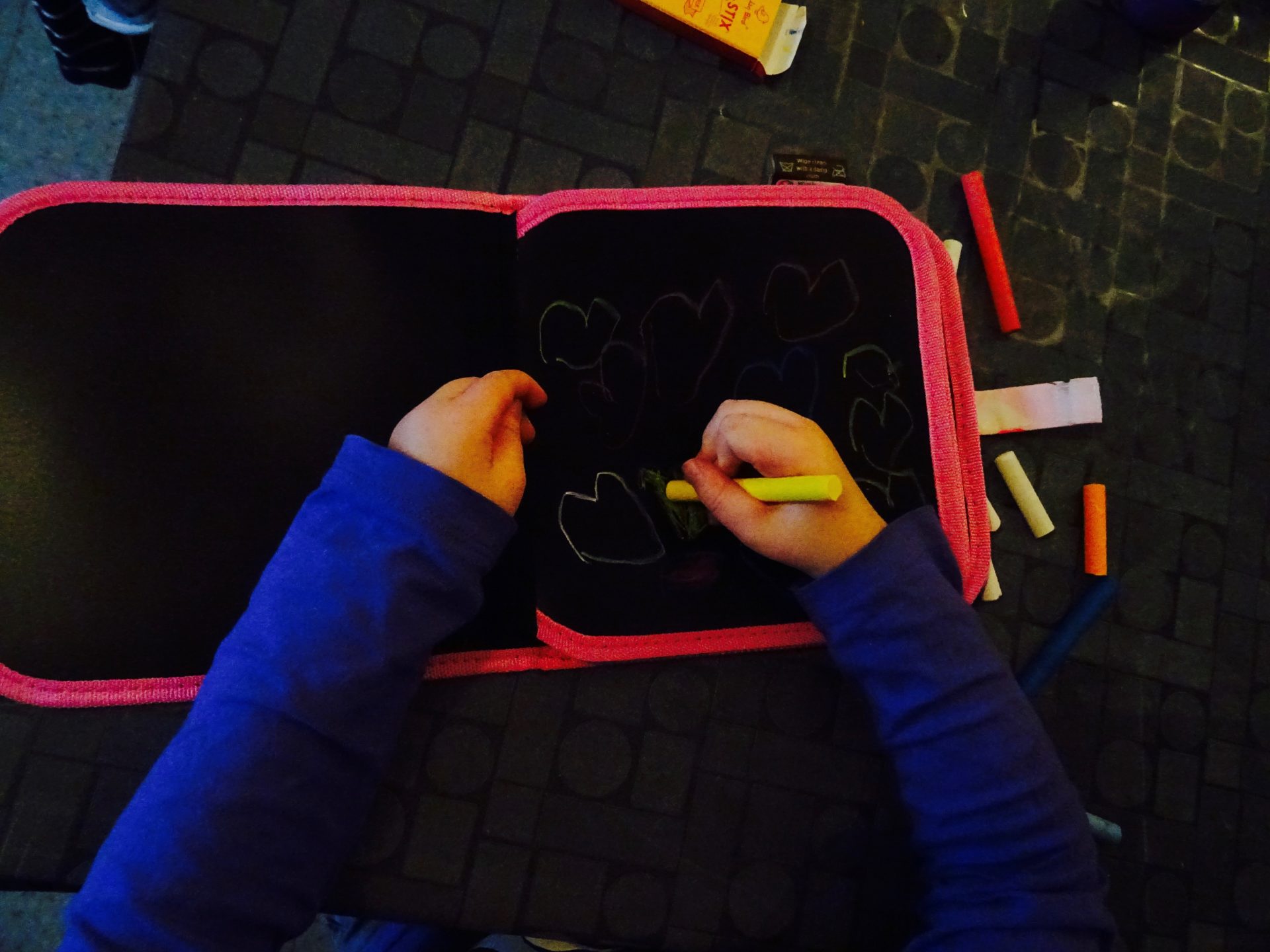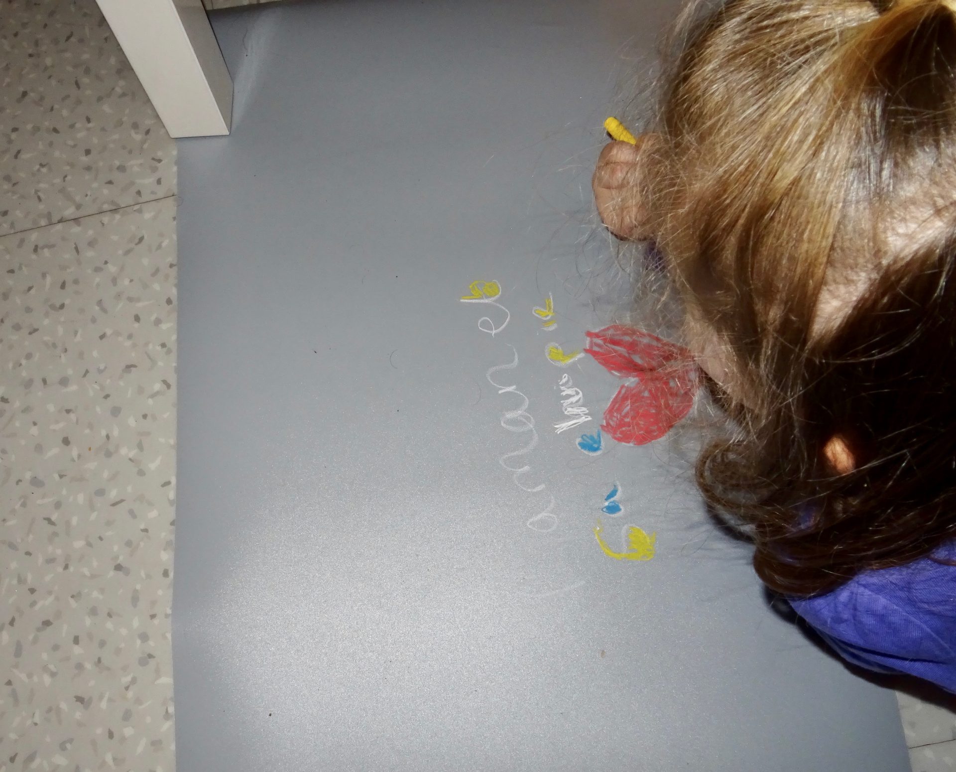 Des craies de couleurs pour le plus grand bonheur de chipie qui a adore le sortir souvent pour dessiner dessus.