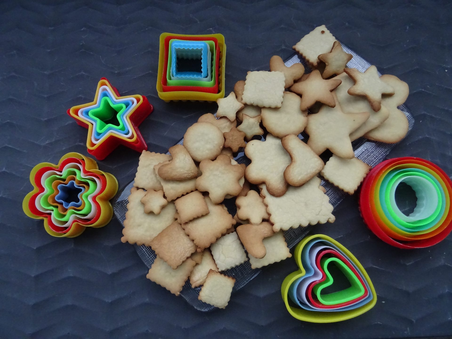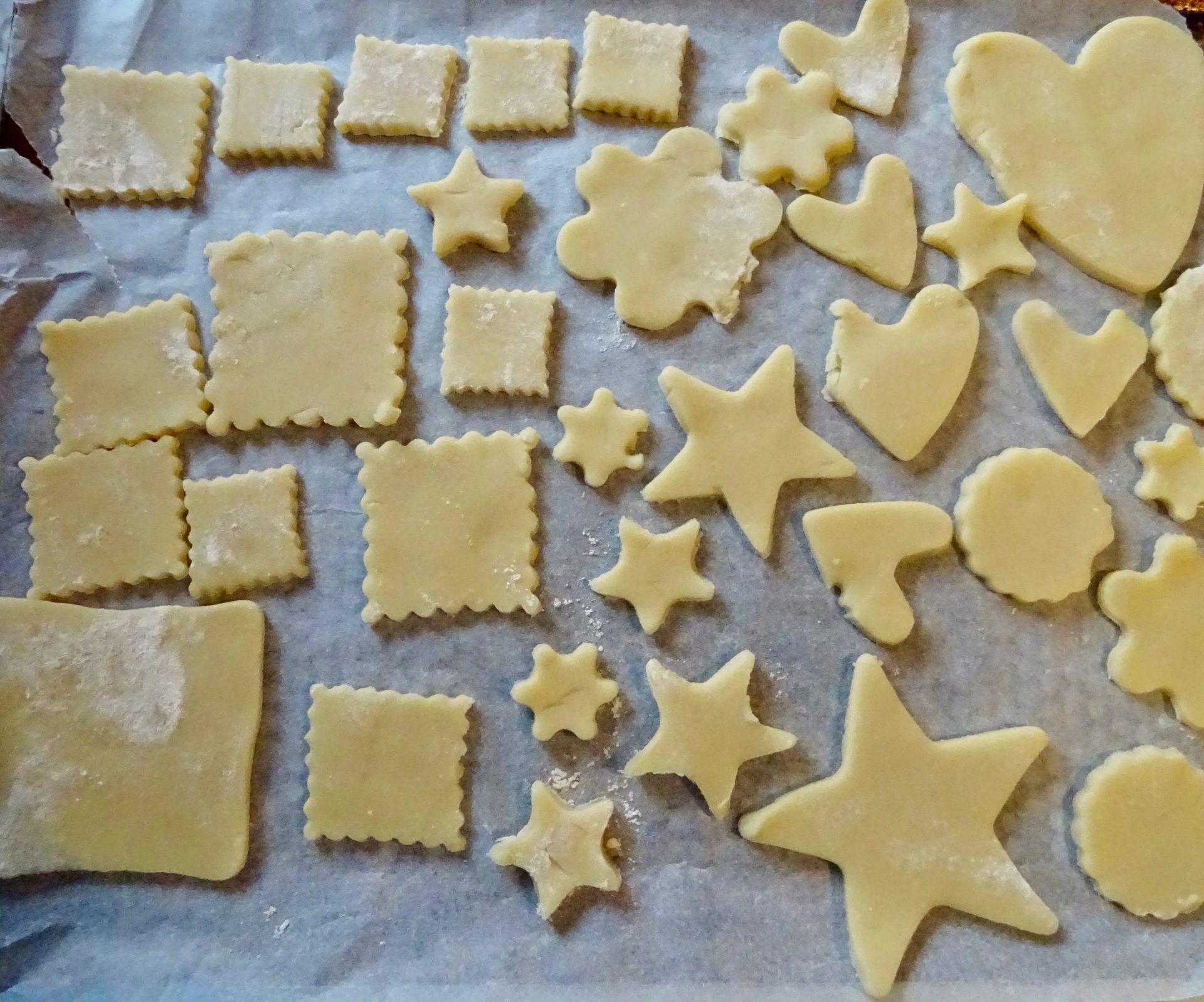 Pourquoi se contenter des formes carré? Alors une fois la pâte étalée on a prit tous les emportes pièces pour réviser le petit beurre en différentes formes…