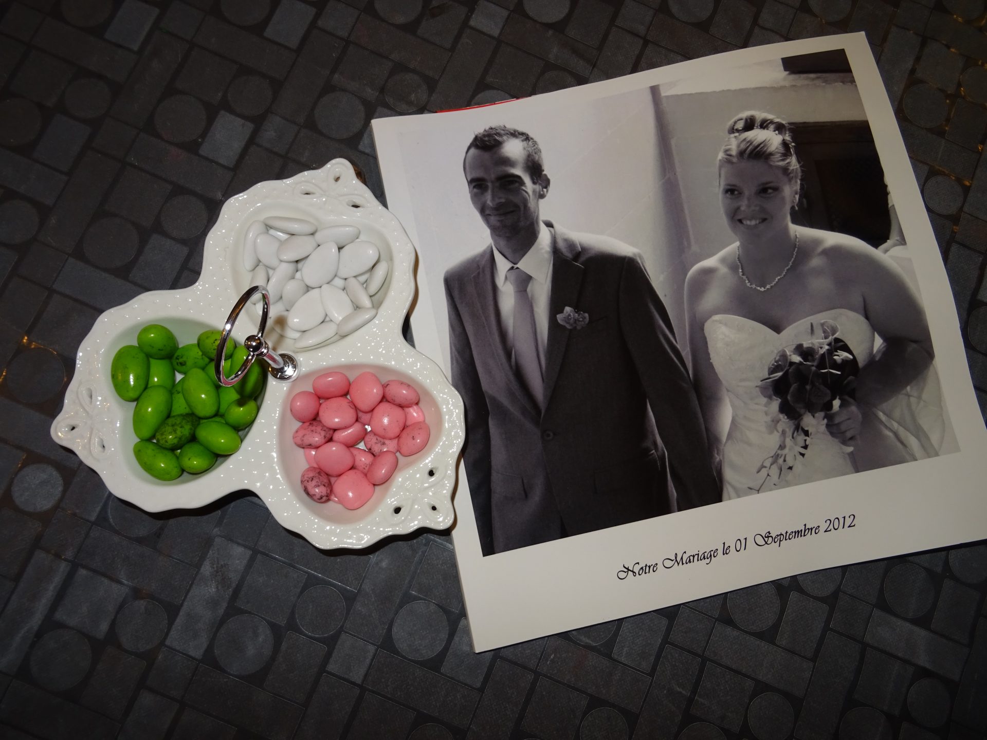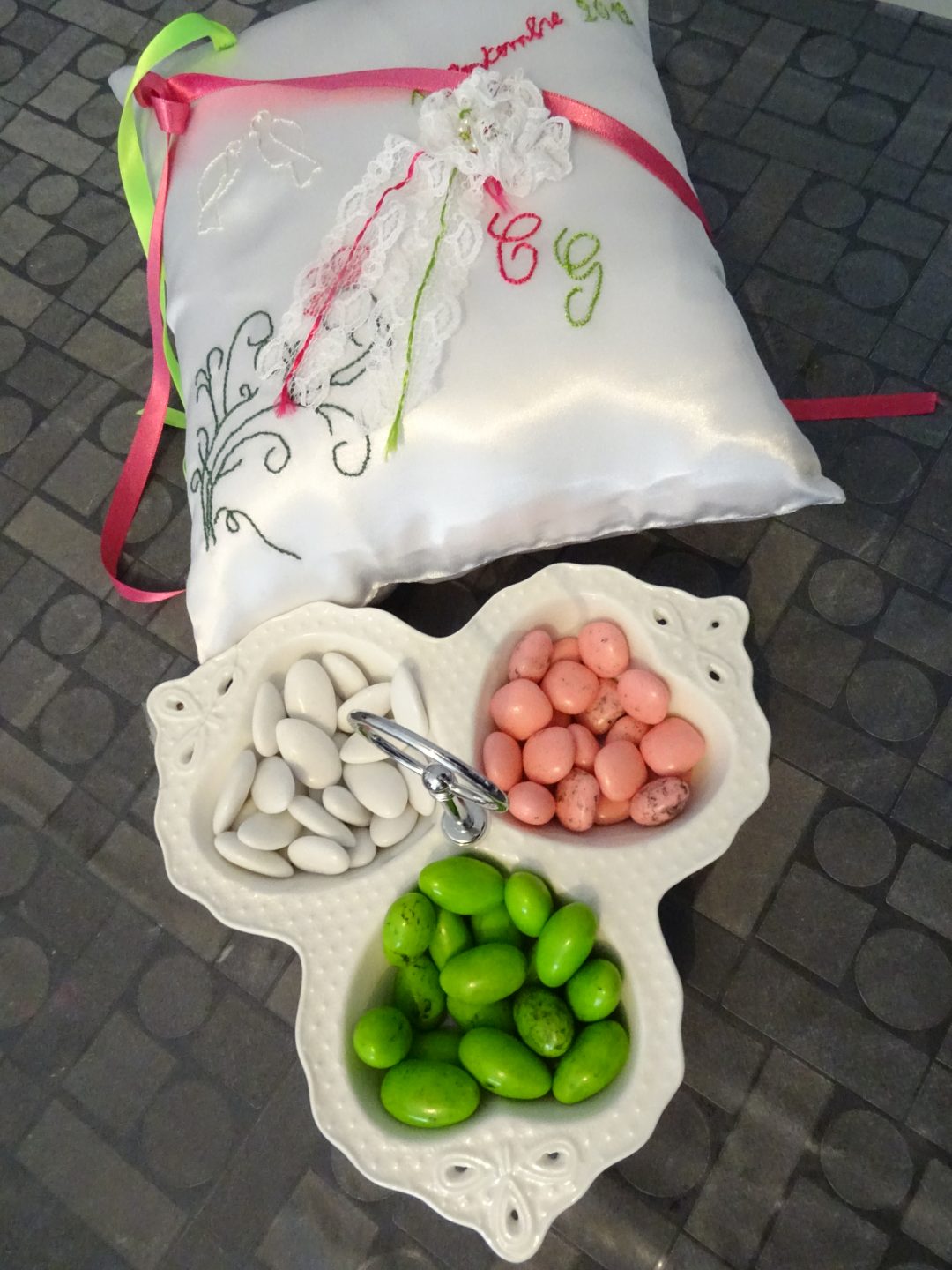 Le plateau et les couleurs des Dragées en font une parfaire décoration pour une cérémonie.